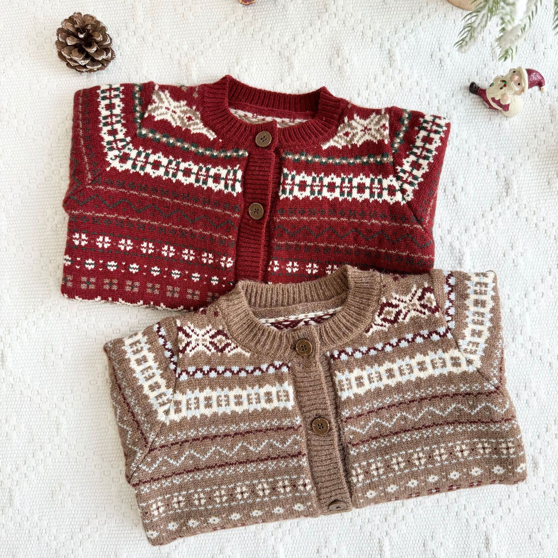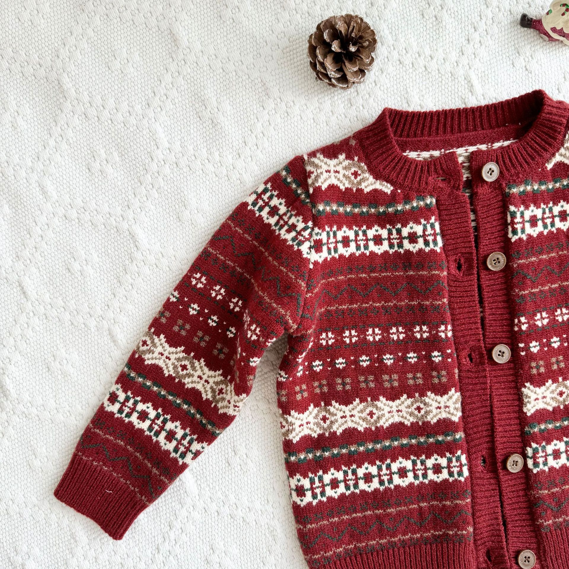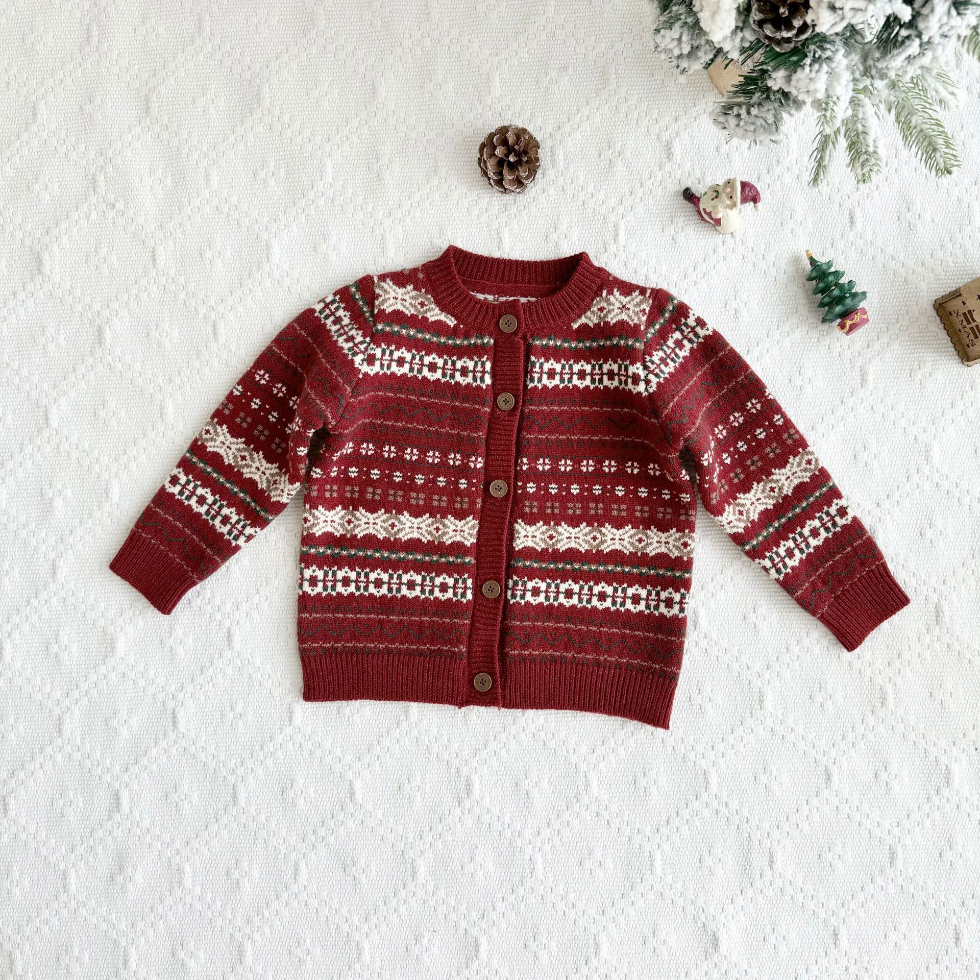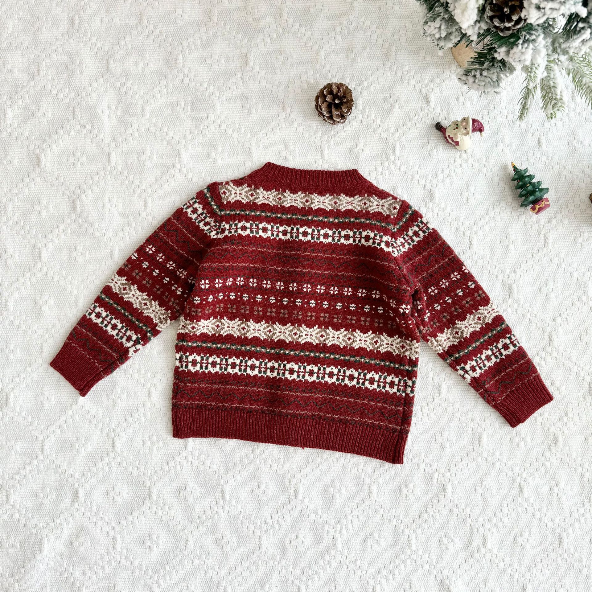 Cross Border Kids 크리스마스 스웨터 Ins Girl's Fairland 스웨터 Ankola Red Jacquard 스웨터 코트