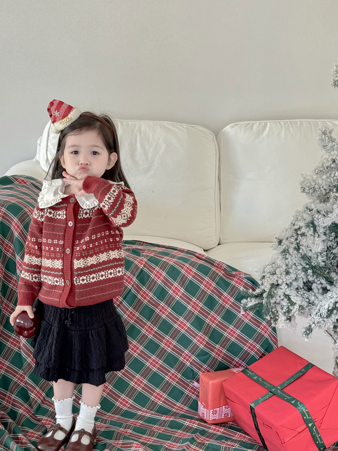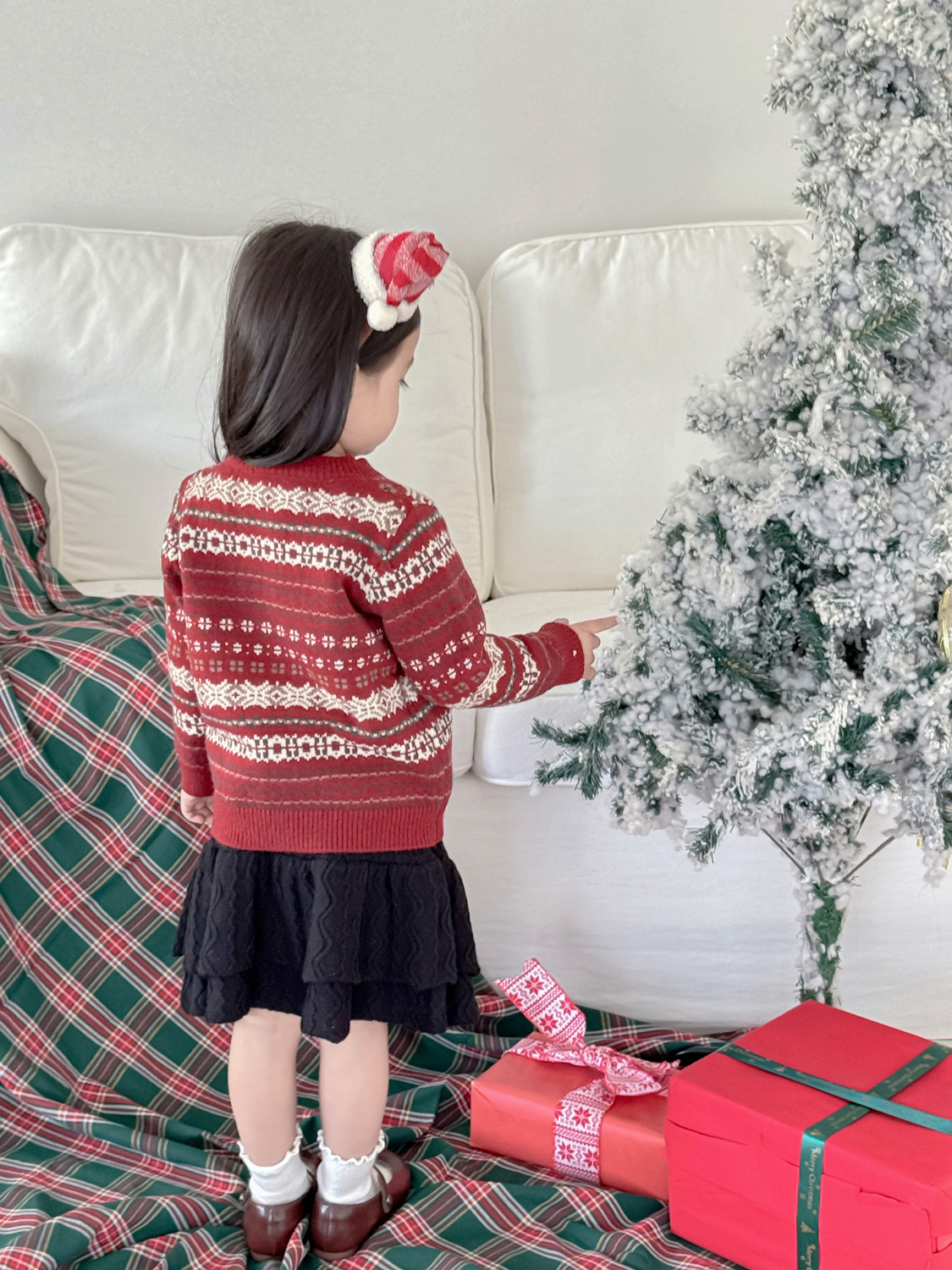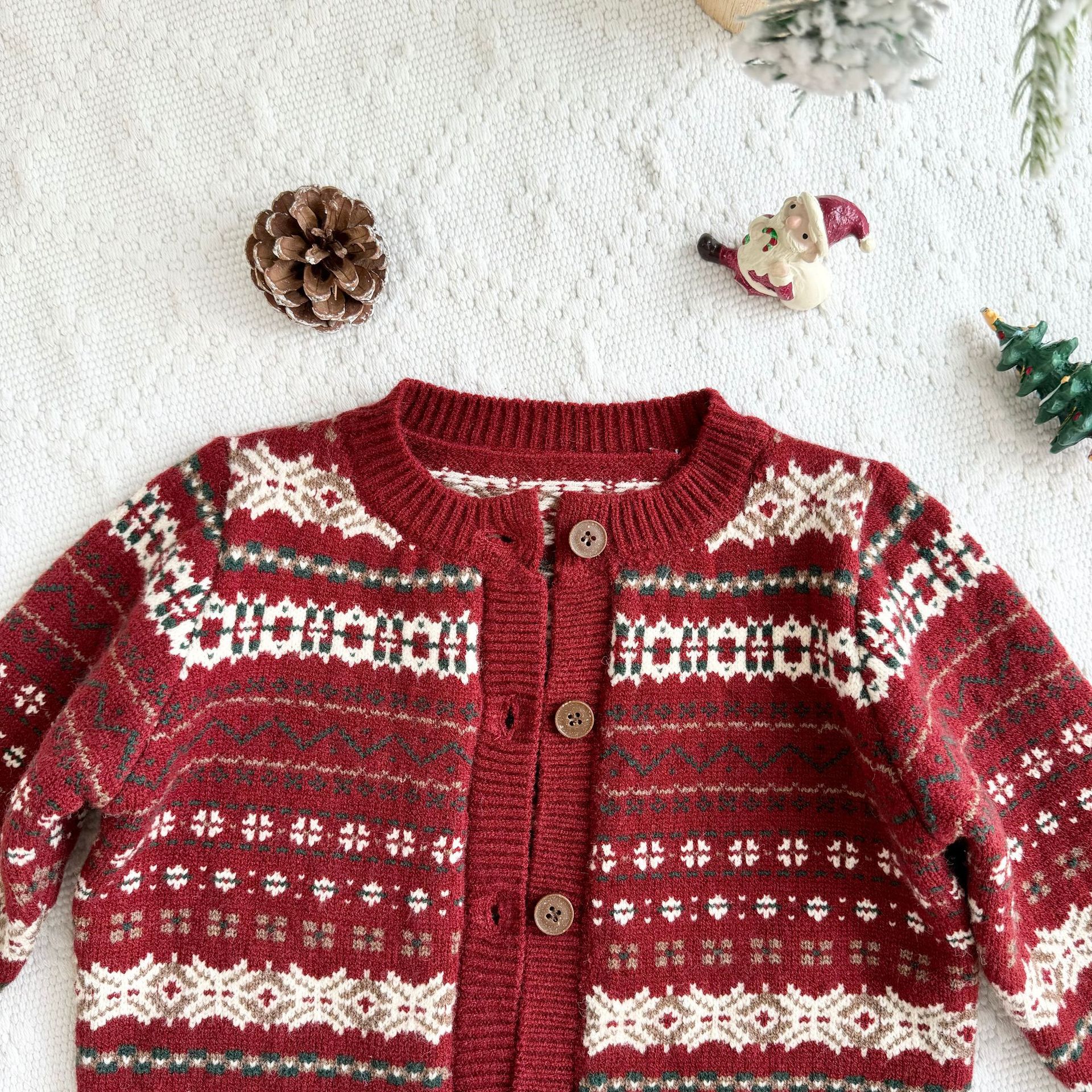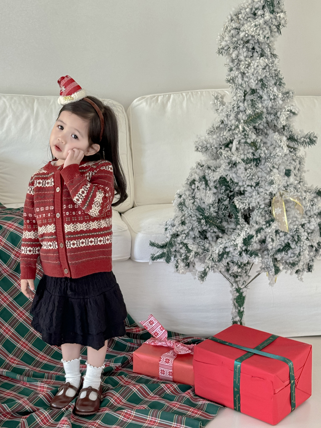 Cross Border Kids 크리스마스 스웨터 Ins Girl's Fairland 스웨터 Ankola Red Jacquard 스웨터 코트
