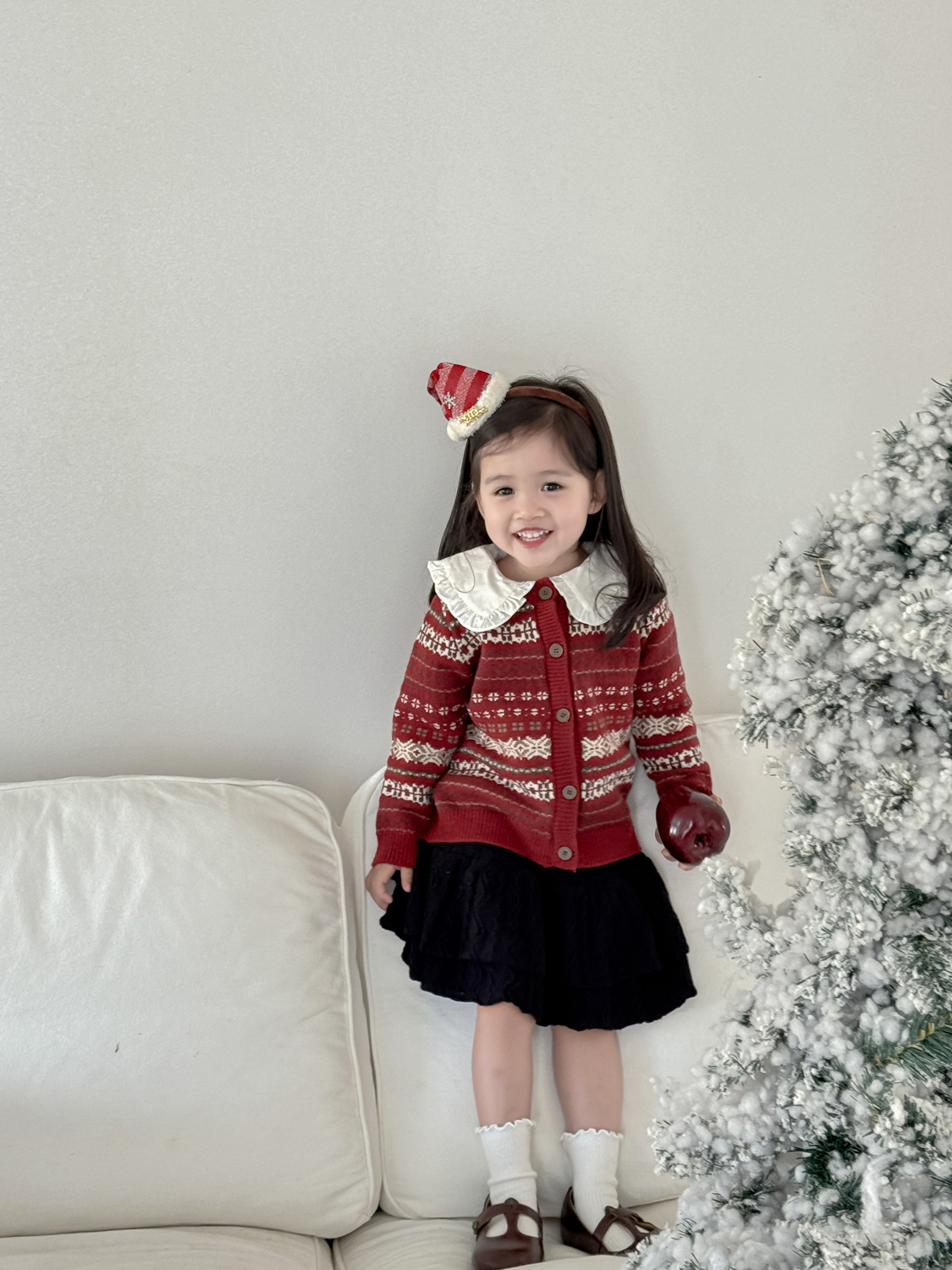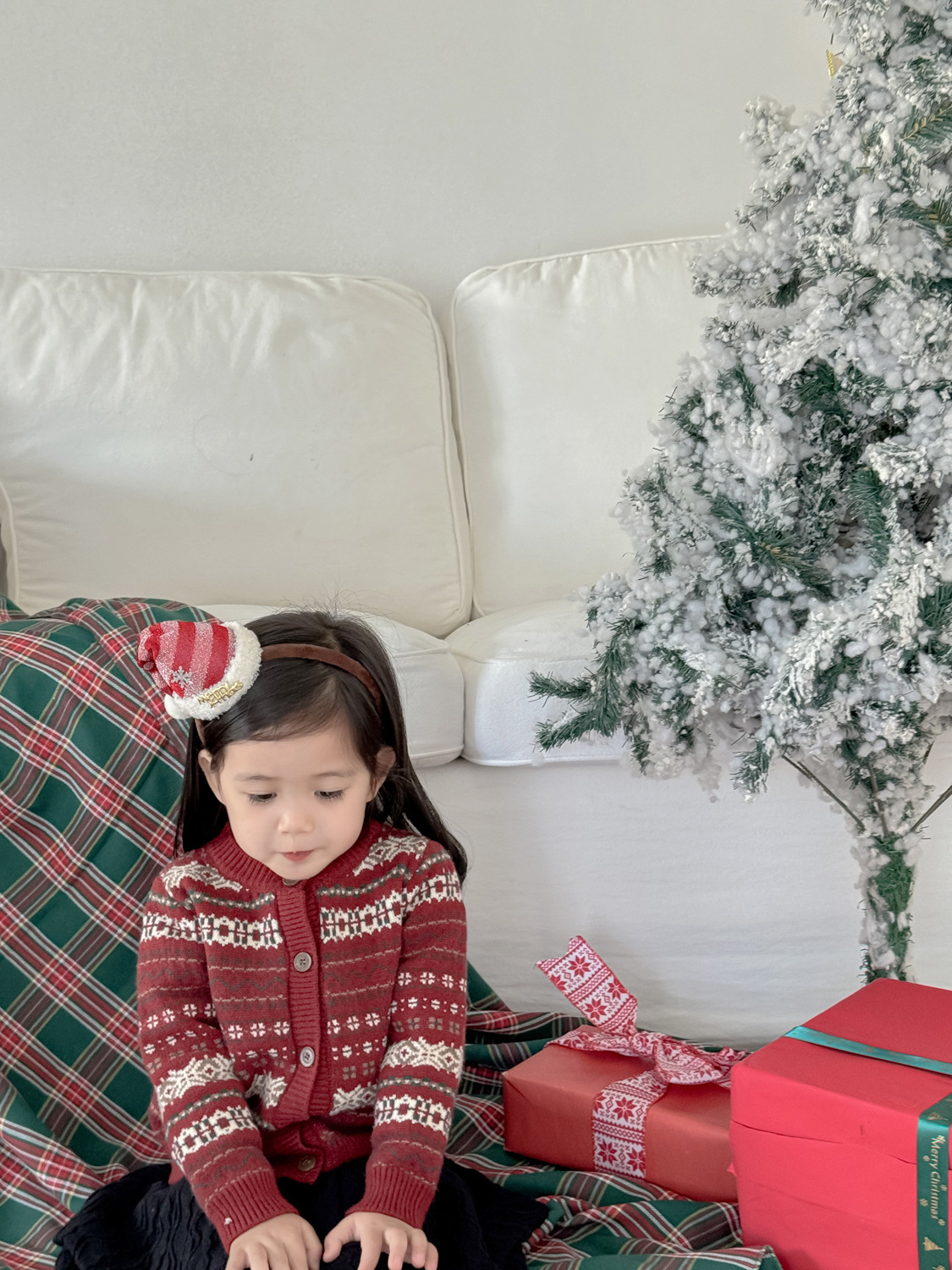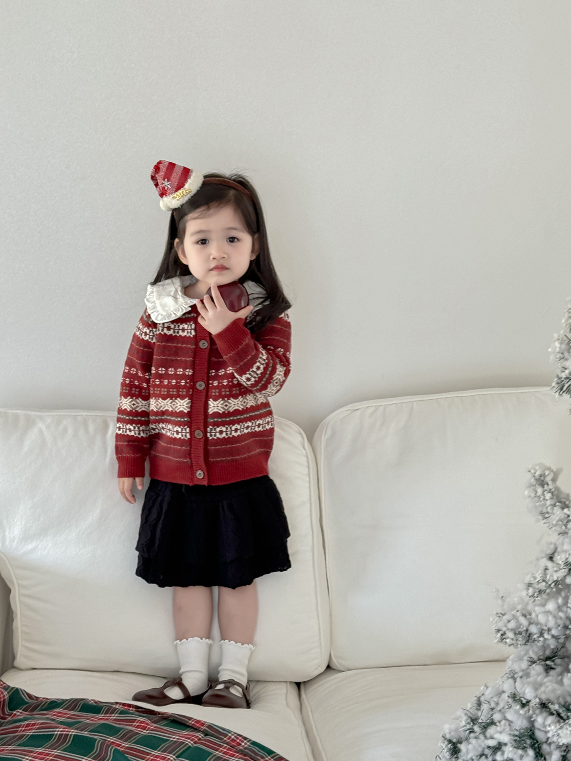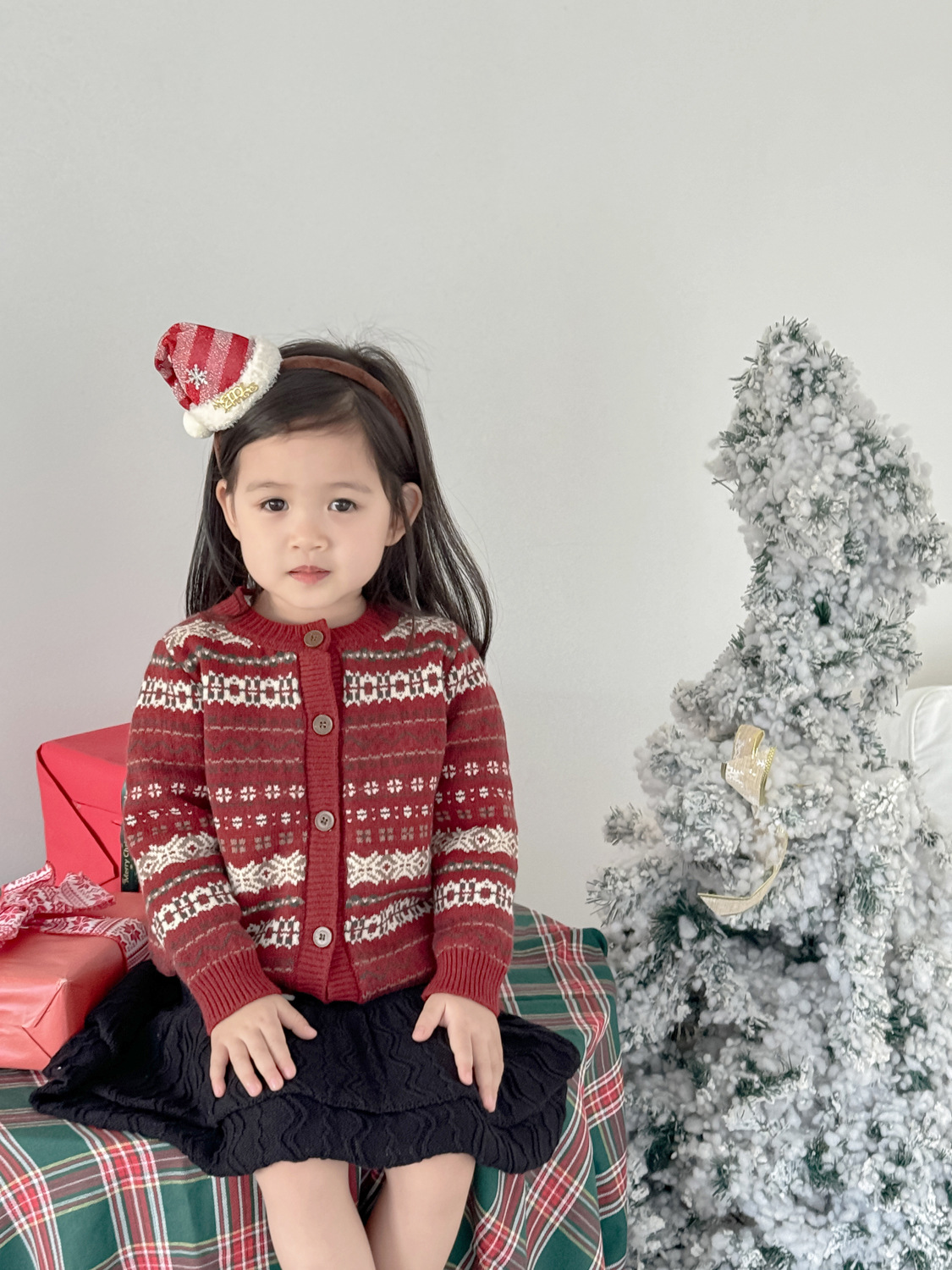 Cross Border Kids 크리스마스 스웨터 Ins Girl's Fairland 스웨터 Ankola Red Jacquard 스웨터 코트