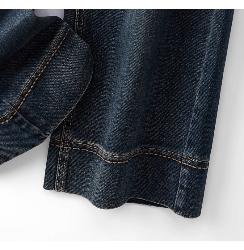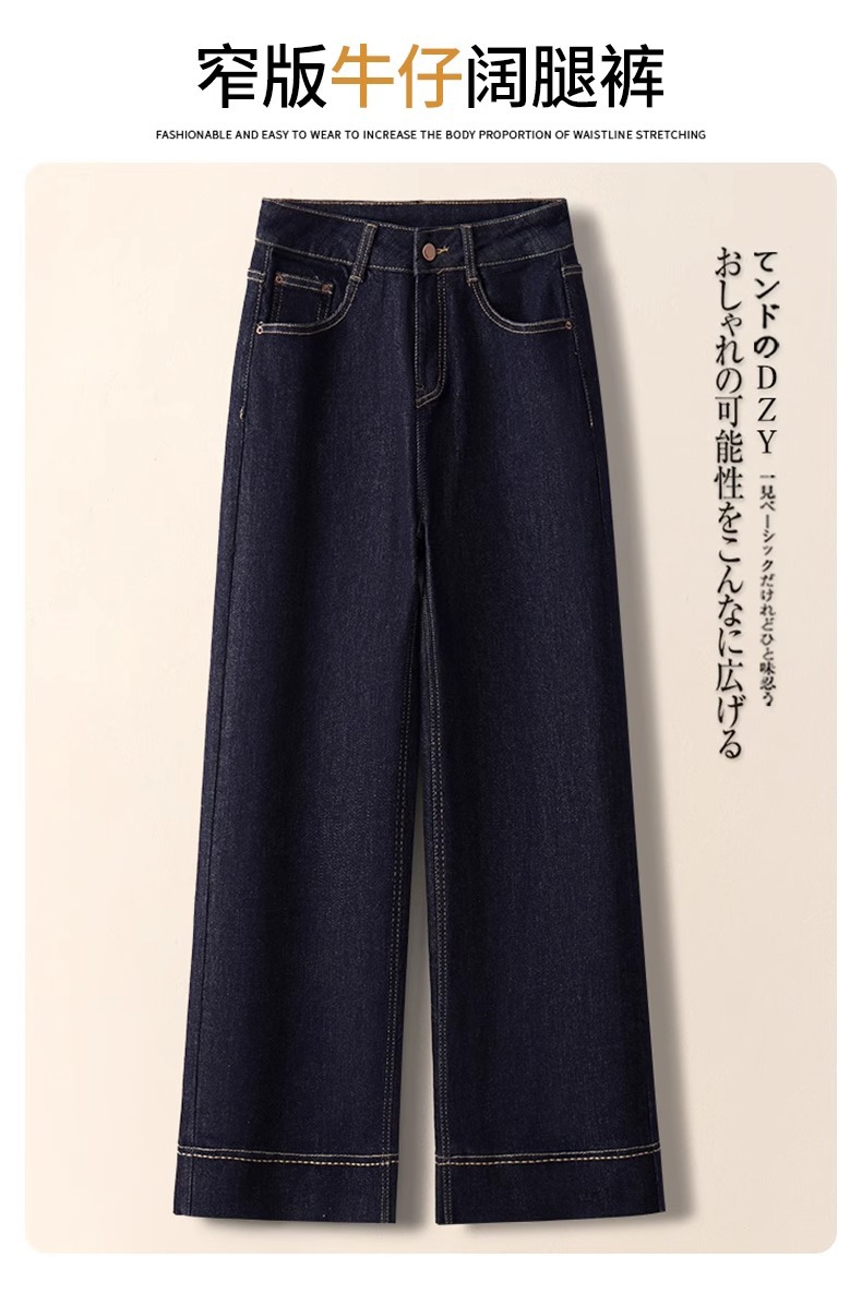 2025 하이웨이스트 루즈핏 플리스 안감 9부 스트레이트 팬츠 레트로 다크블루 와이드 데님 팬츠 여성 가을 겨울 출퇴근룩스토어 가기