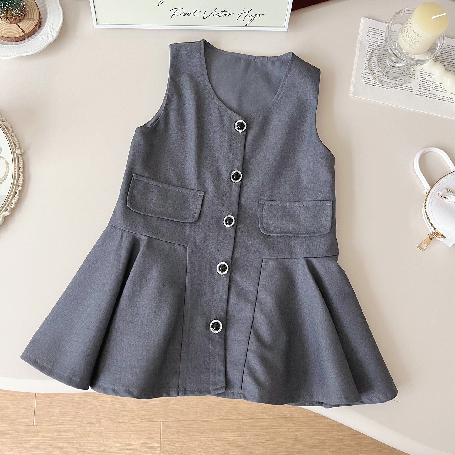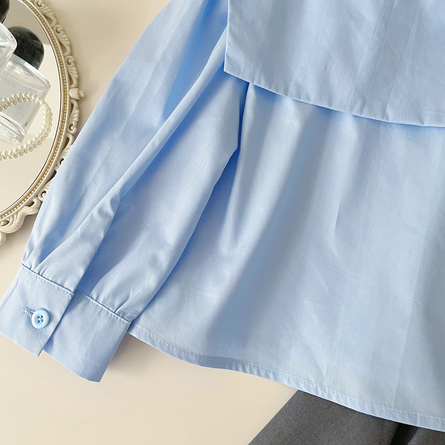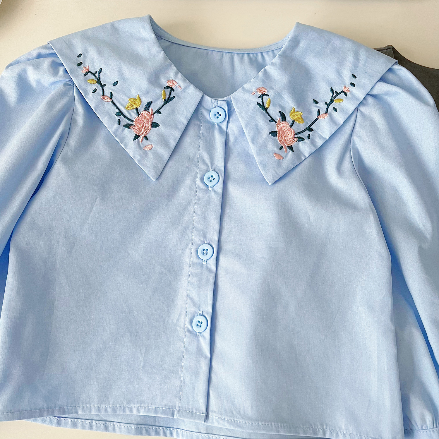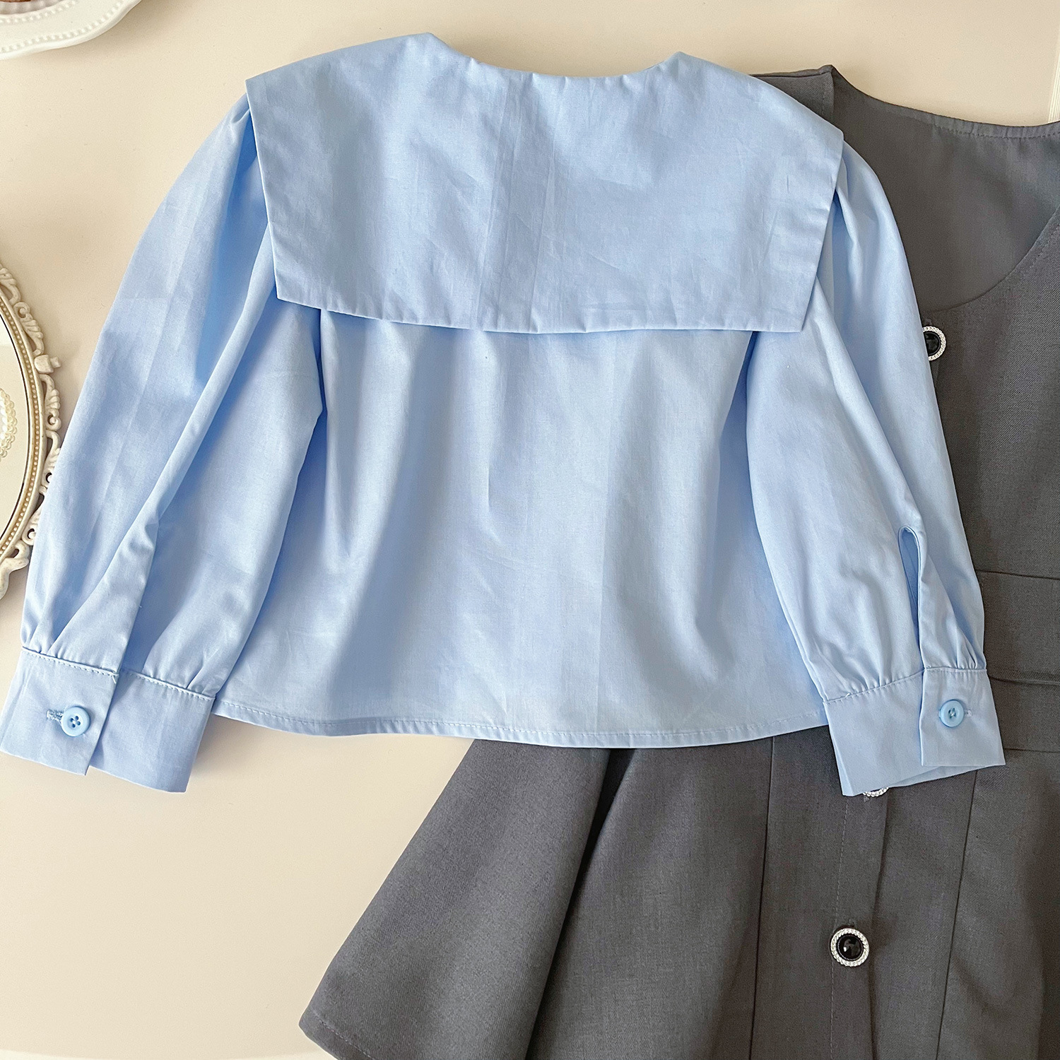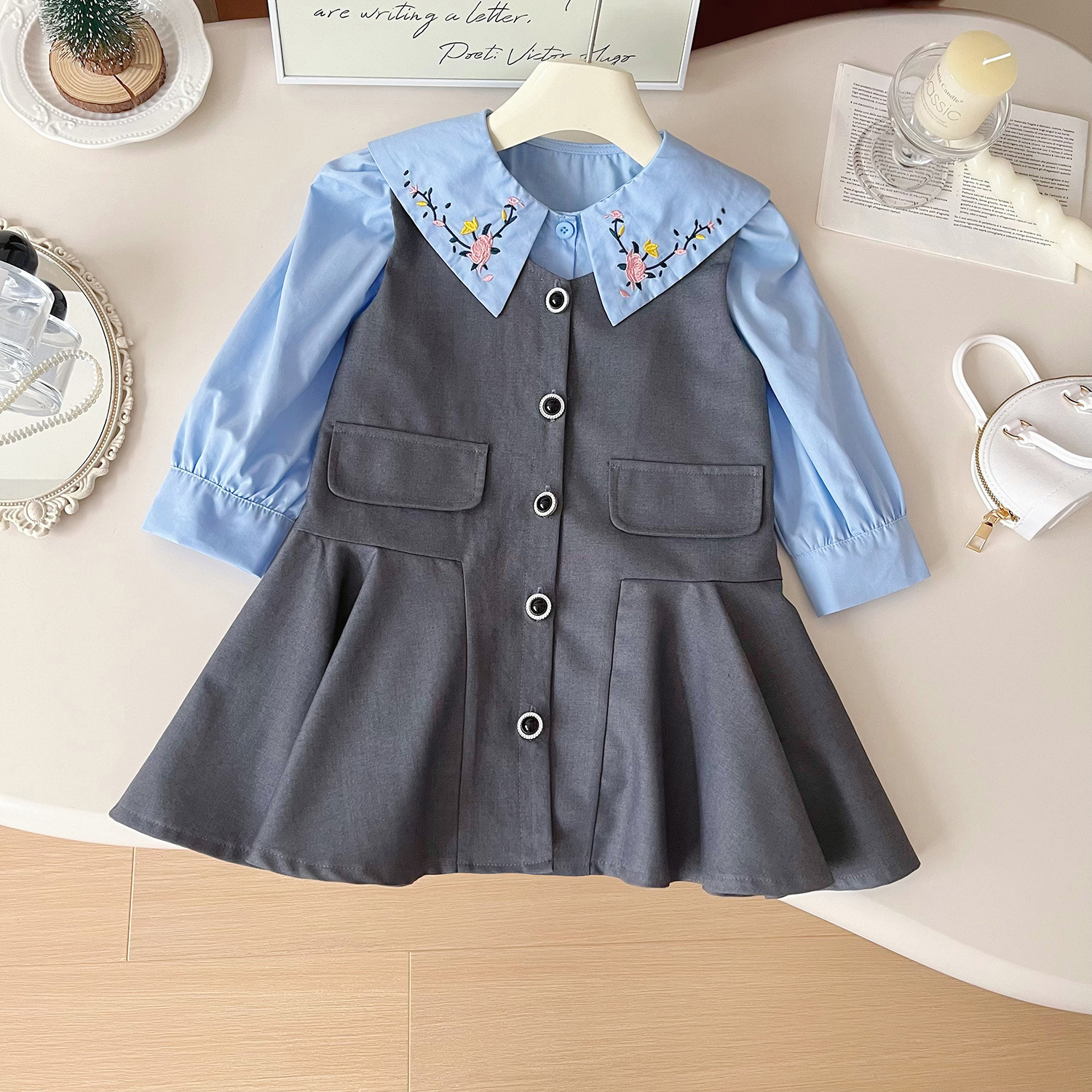 가을 2024 새로운 한국 여자 긴팔 옷깃 셔츠 조끼 스커트 투피스 아기 자수 칼라 도매스토어 가기