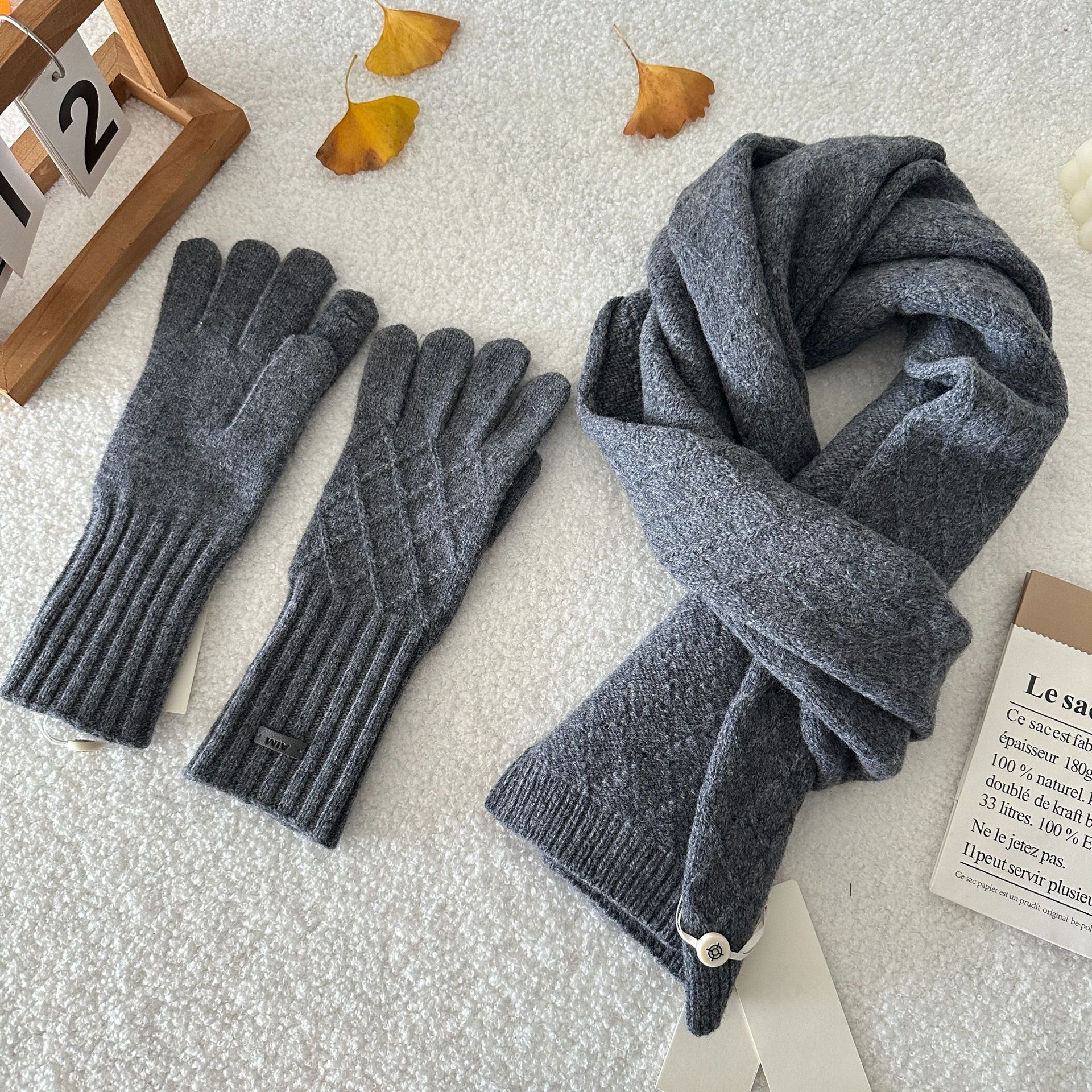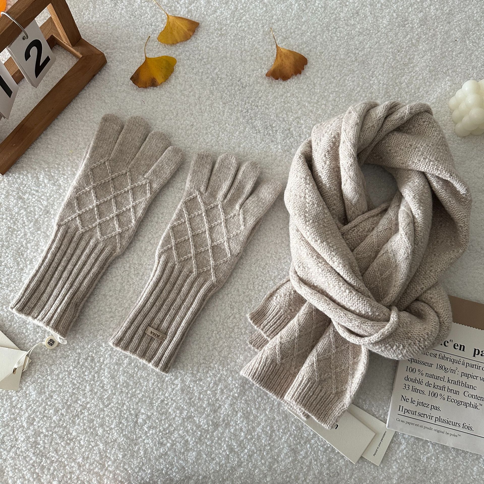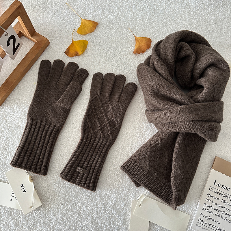 가을과 겨울 새로운 모든 울 스카프 세트 겨울 따뜻한 장갑 마름모꼴 니트 커플 스카프 손가락 장갑스토어 가기