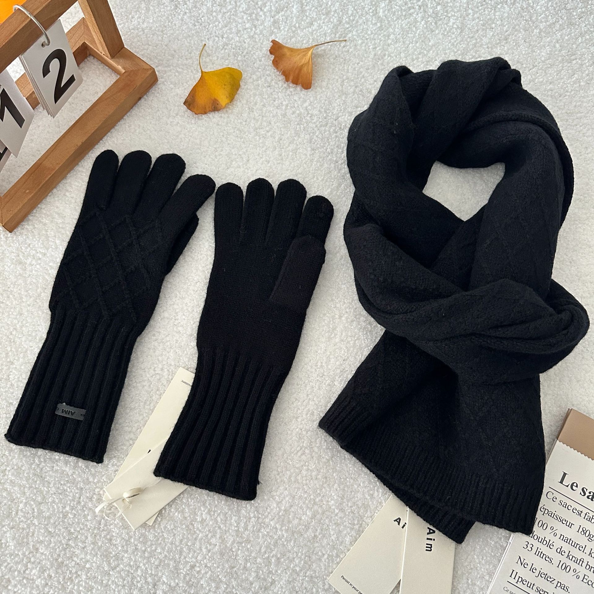 가을과 겨울 새로운 모든 울 스카프 세트 겨울 따뜻한 장갑 마름모꼴 니트 커플 스카프 손가락 장갑