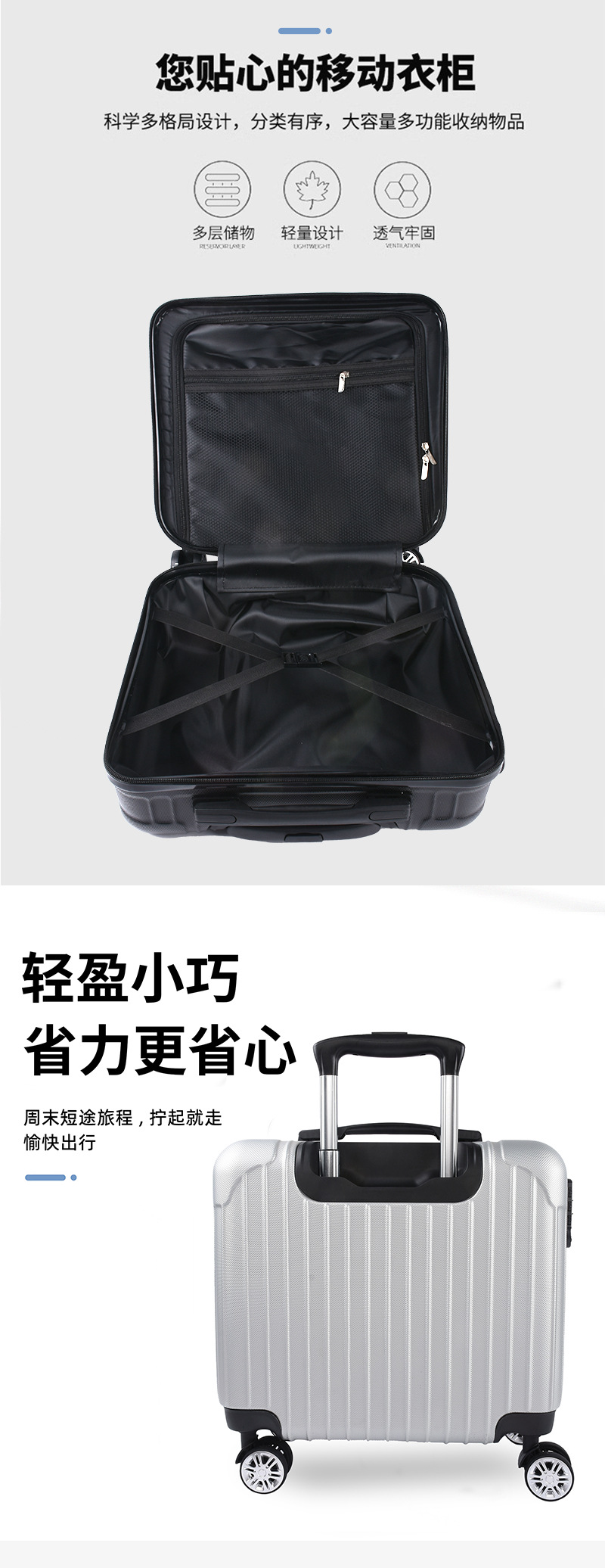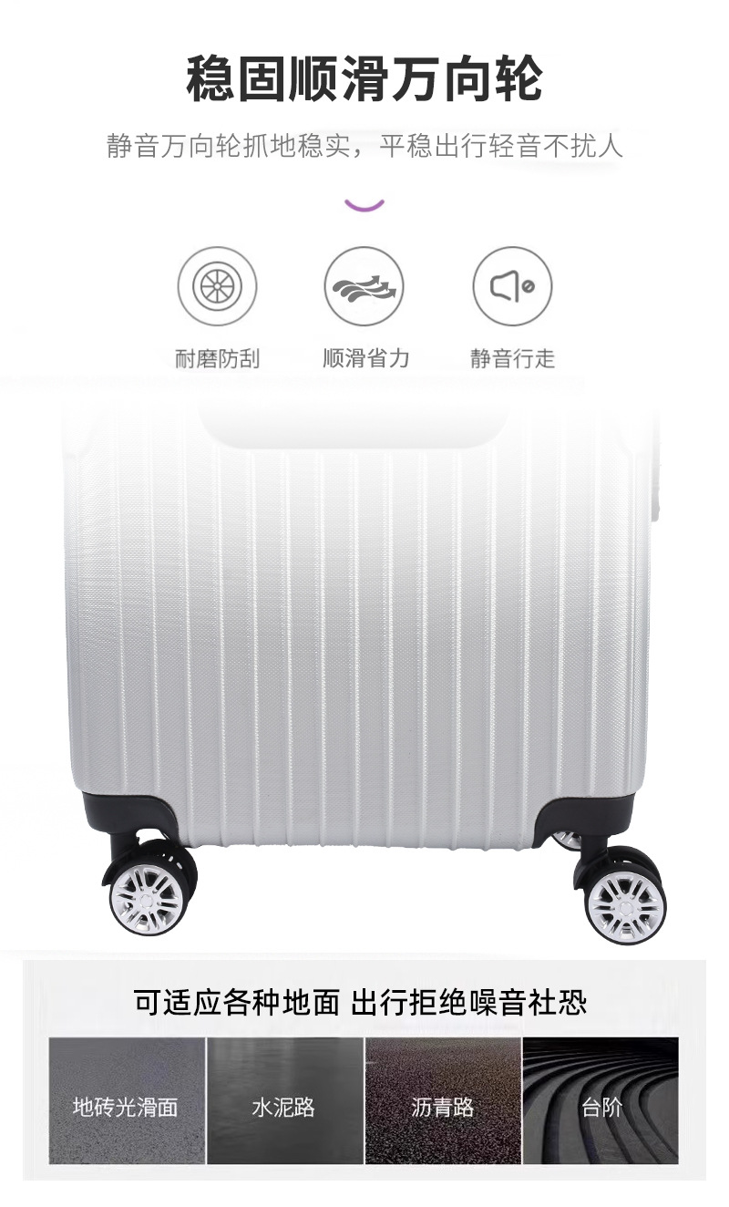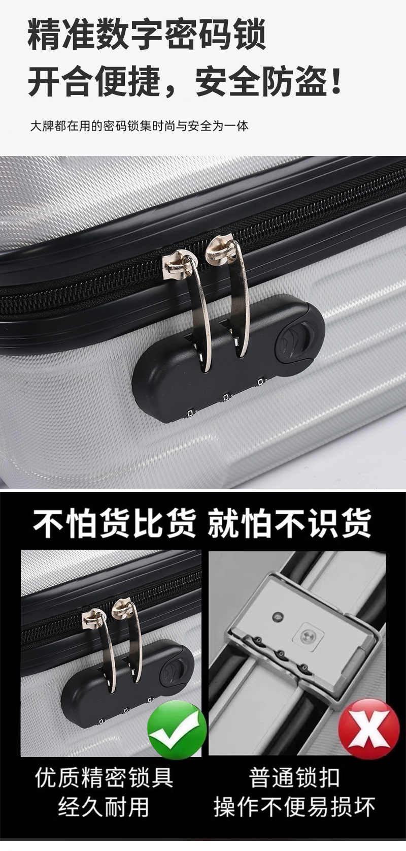 남성과 여성을위한 18 인치 작은 알루미늄 프레임 탑승 가방 대용량 트롤리 케이스 유니버설 휠 암호 상자 가방