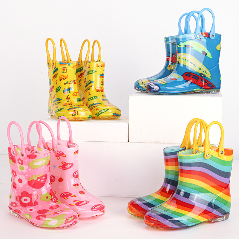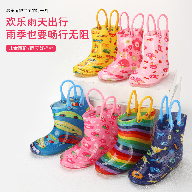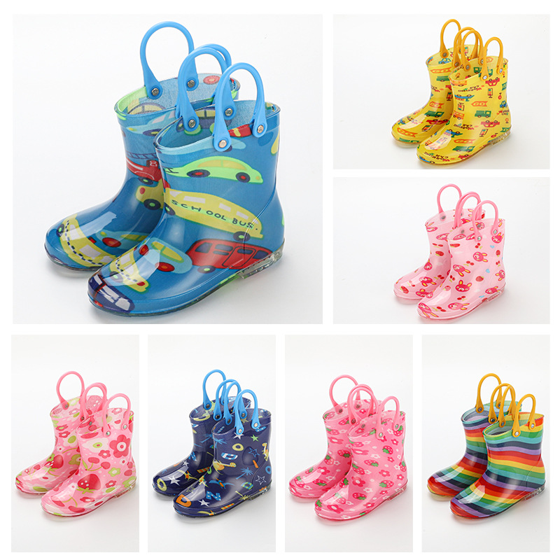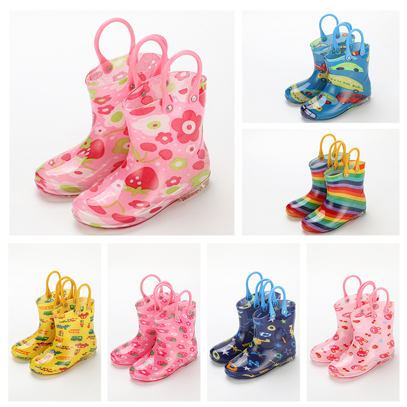 크로스 미러 수출 재고 어린이 휴대용 창조적 인 귀여운 꽃 천 어린이 장화 아기 장화 고무 신발스토어 가기