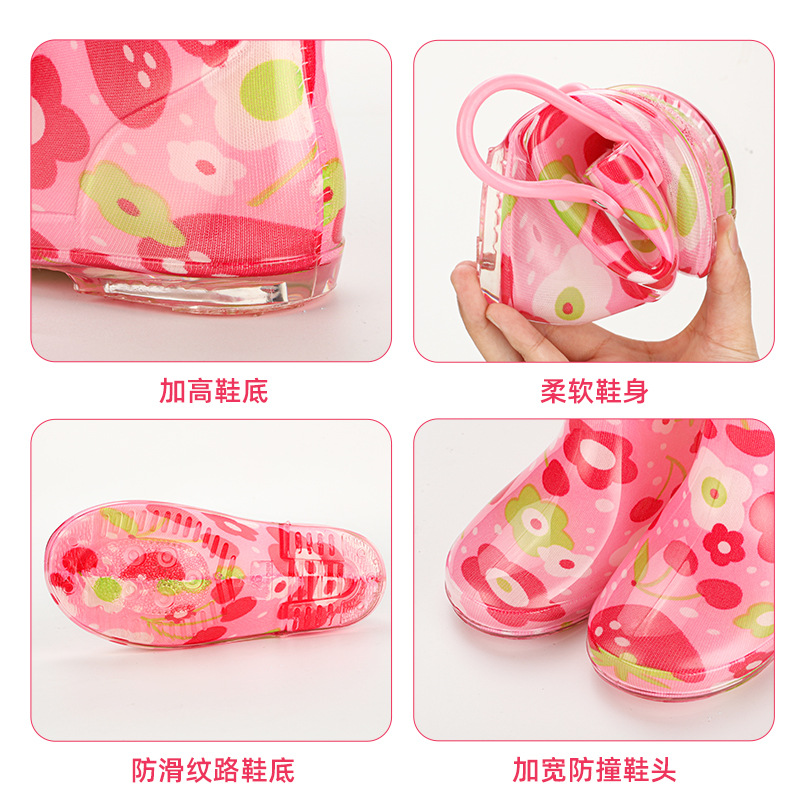 크로스 미러 수출 재고 어린이 휴대용 창조적 인 귀여운 꽃 천 어린이 장화 아기 장화 고무 신발