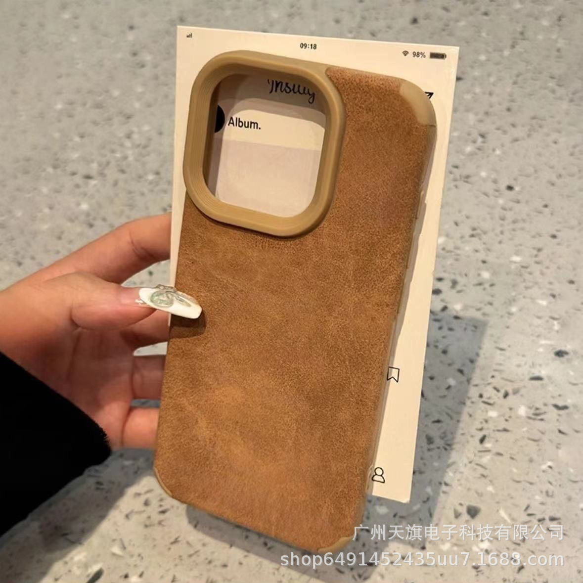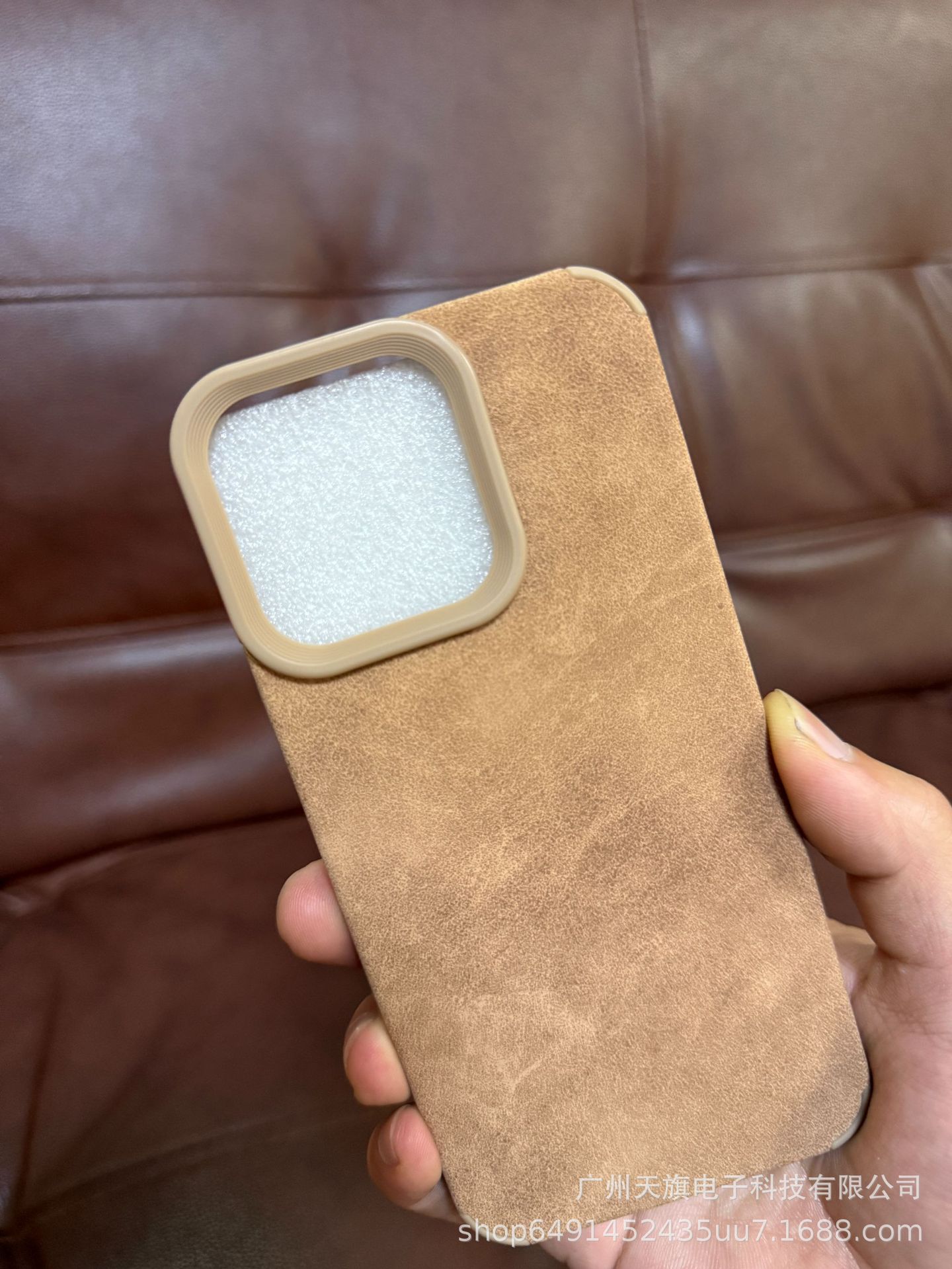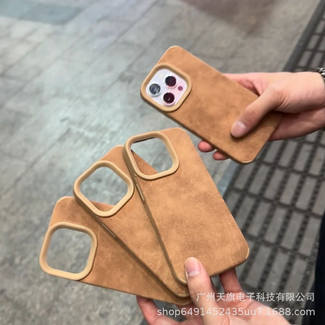 인기 있는 스웨이드 가죽 브라운 가죽 케이스, 애플 17 프로맥스용, 애플 17 양가죽스토어 가기