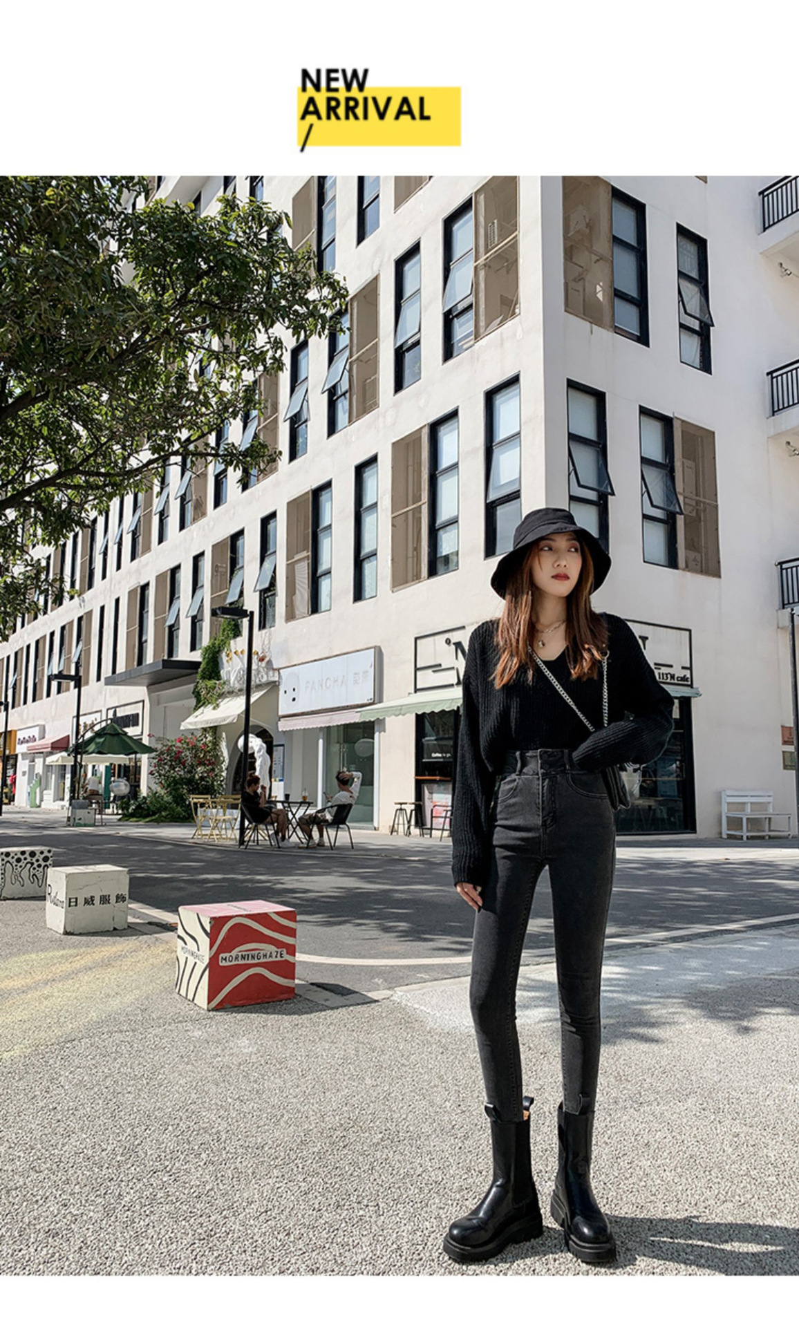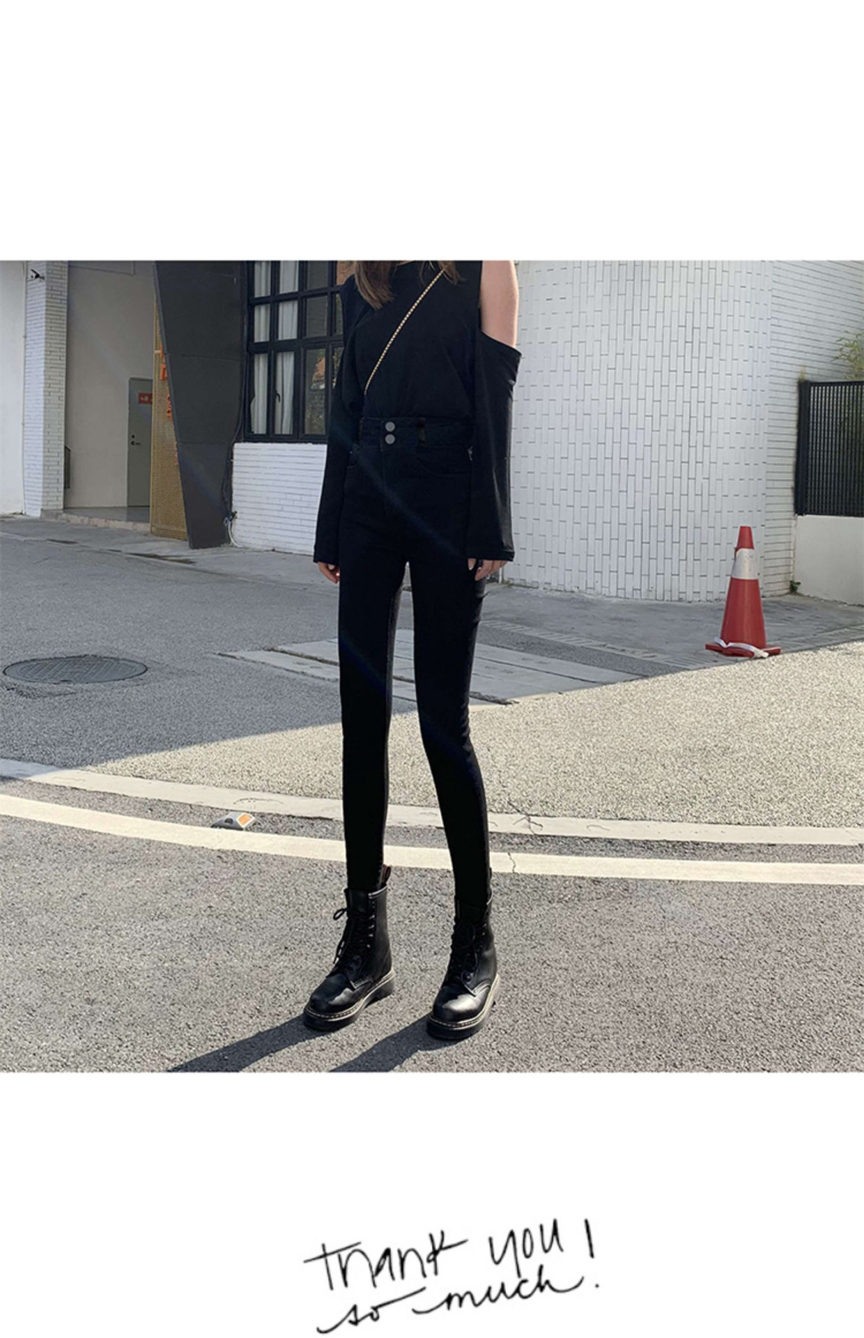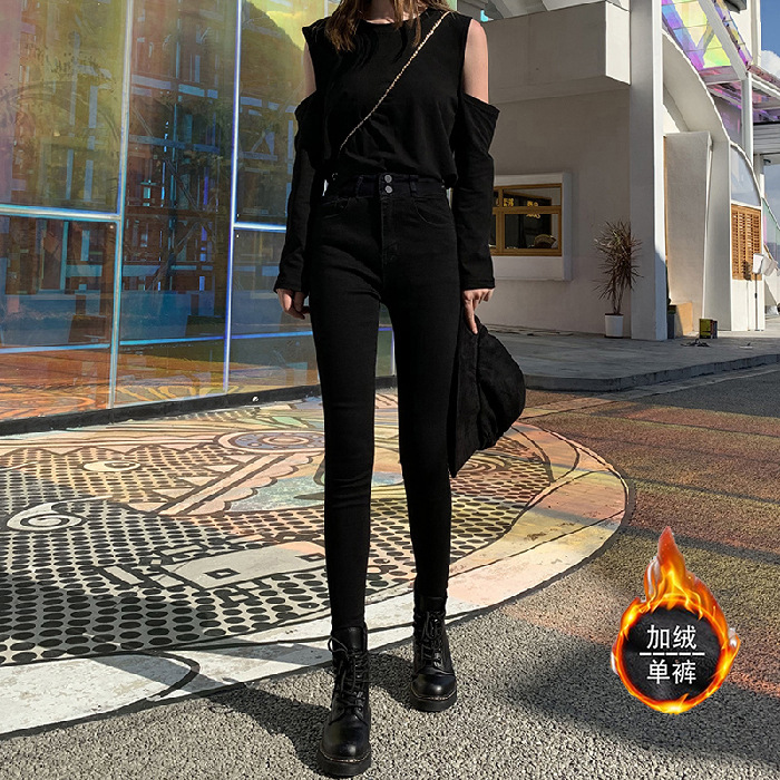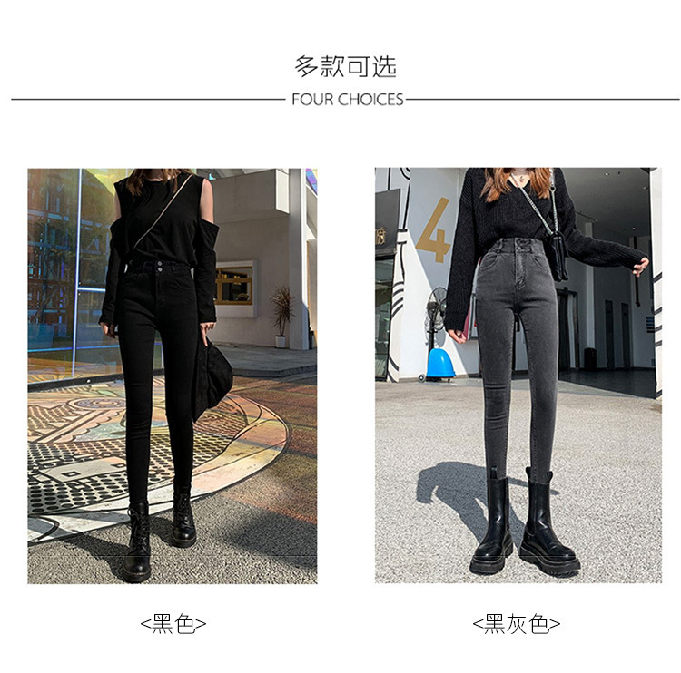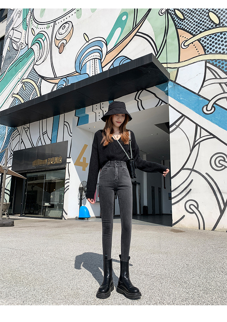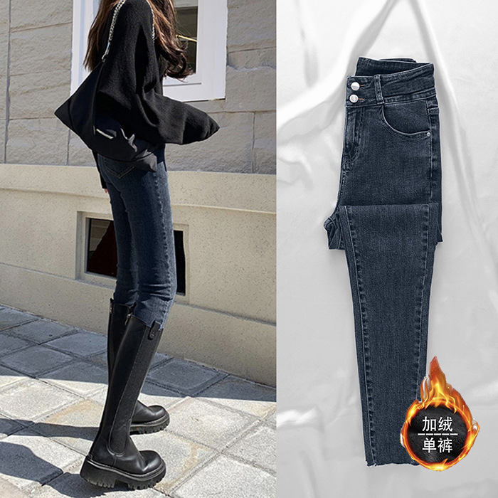 여성용 하이웨이스트 청바지 2026년 봄 신상 슬림핏 연회색 슬림핏 플리스 안감 펜슬 팬츠스토어 가기