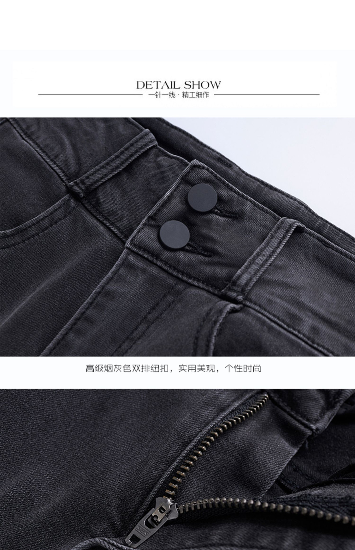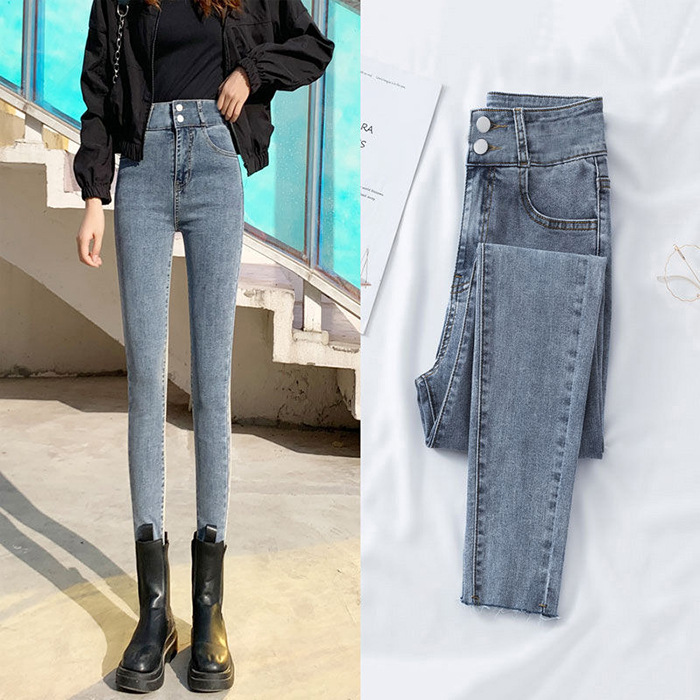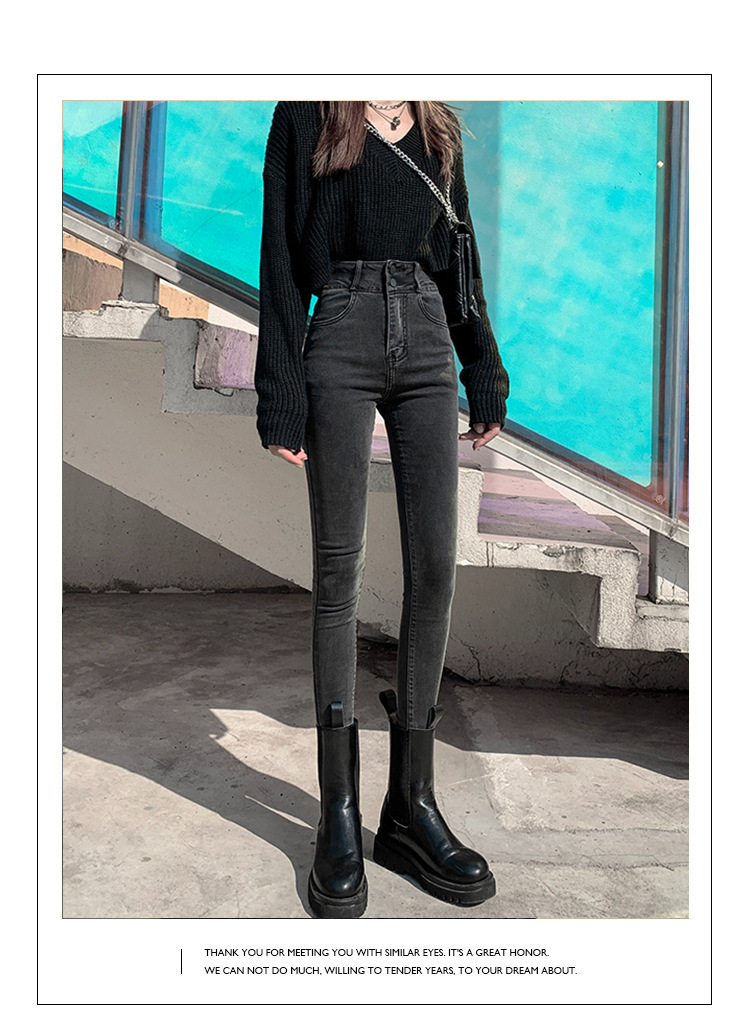 여성용 하이웨이스트 청바지 2026년 봄 신상 슬림핏 연회색 슬림핏 플리스 안감 펜슬 팬츠