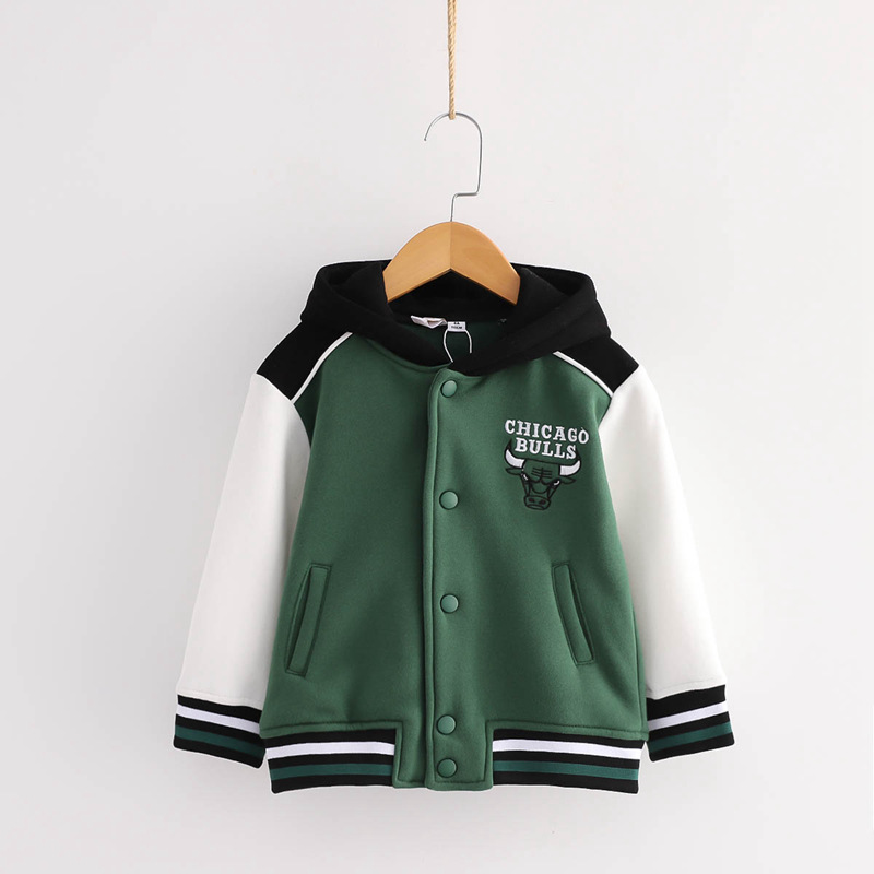 만화 편지 수 놓은 소년 후드 야구 재킷 2024 가을 새로운 스타일 0622-07