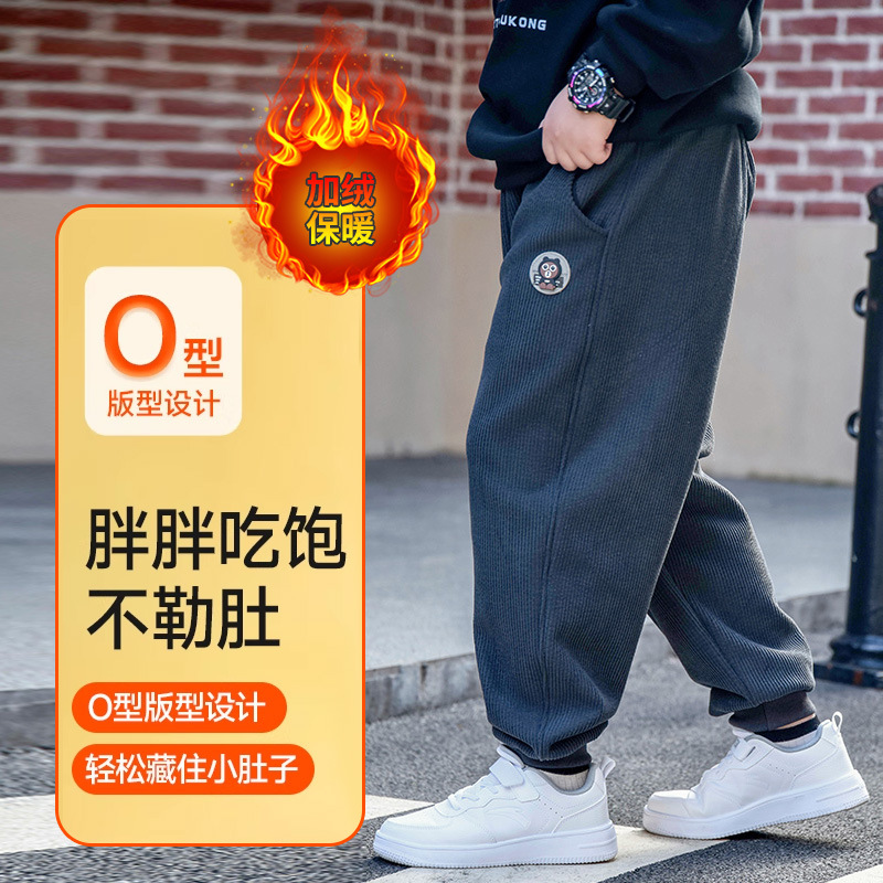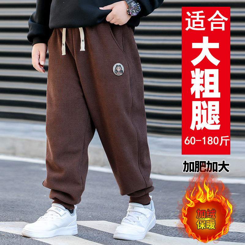소년 기모 바지 한 조각 양털 스포츠 바지 어린이 두꺼운 운동복 대형 소년 플러스 사이즈 겨울 패션 브랜드스토어 가기