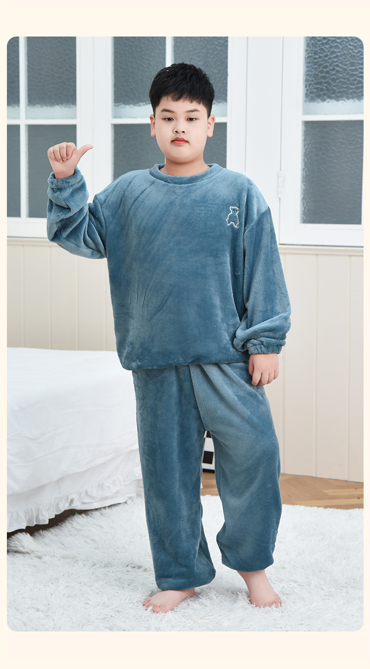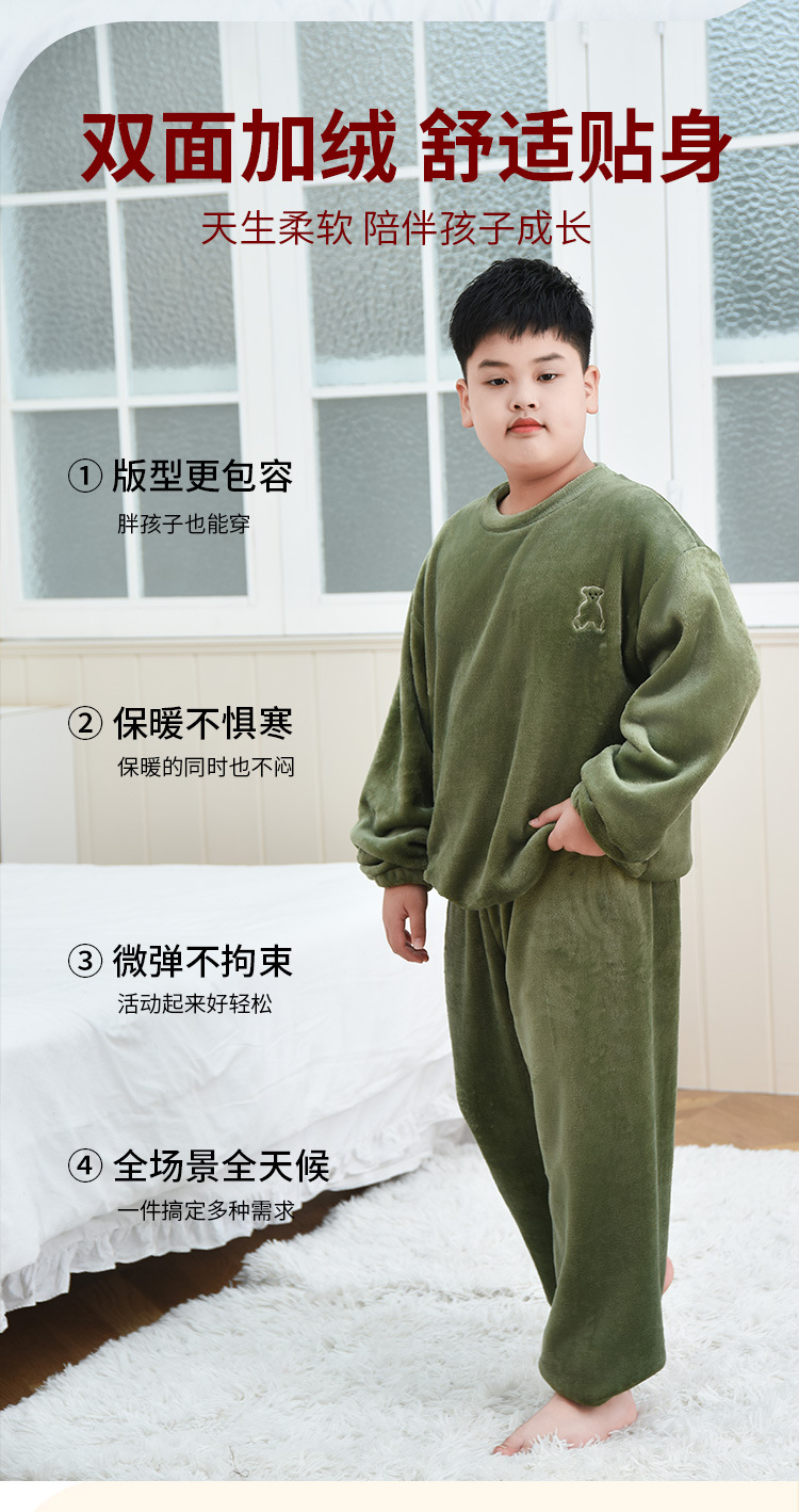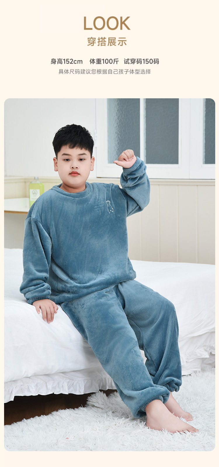 통통한 소년 잠옷 가을과 겨울 새로운 산호 양털 기모 두꺼운 플란넬 소년의 따뜻한 집 옷스토어 가기