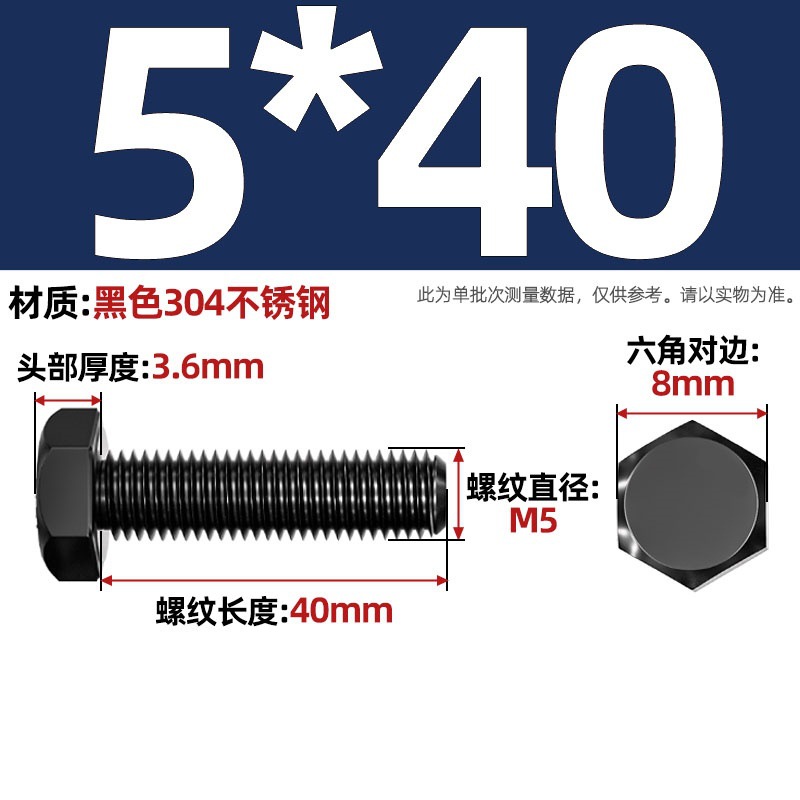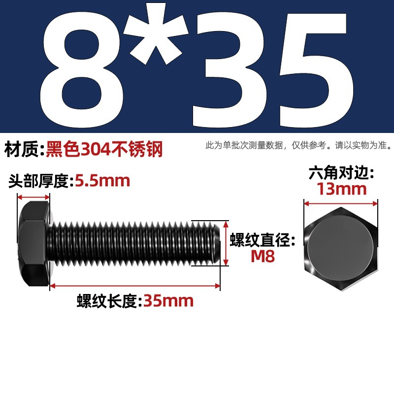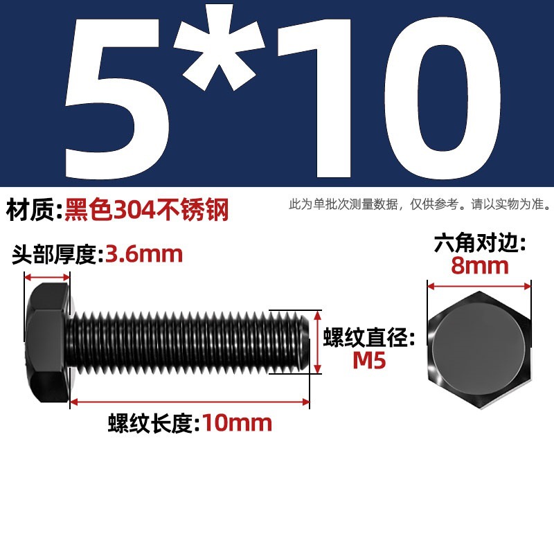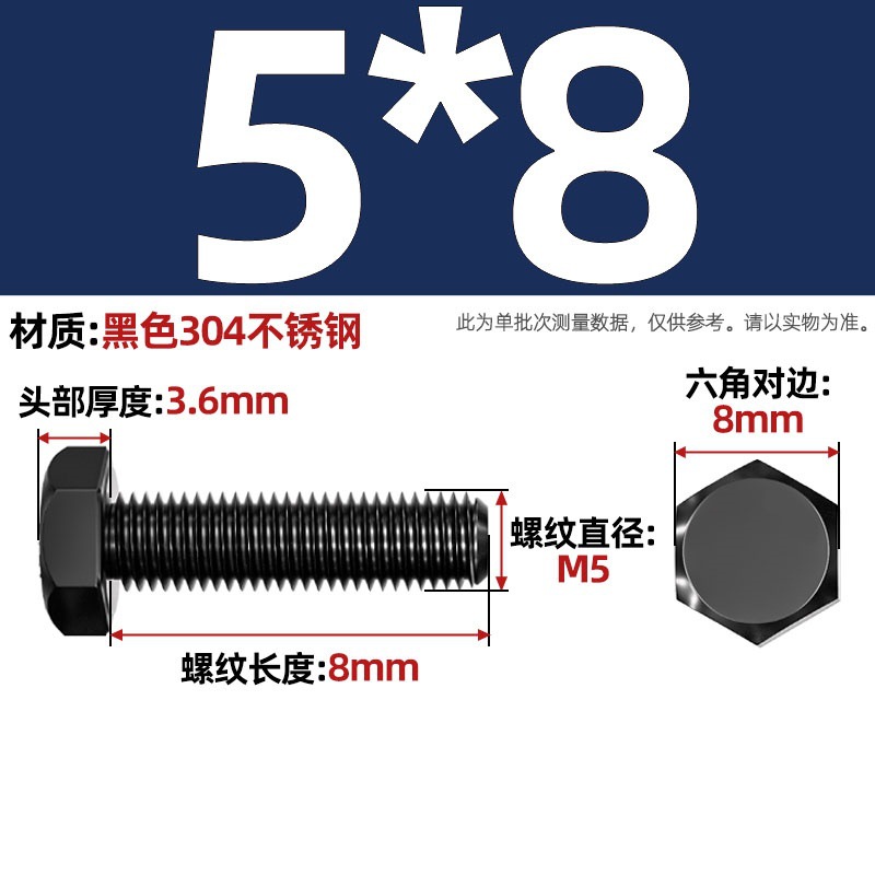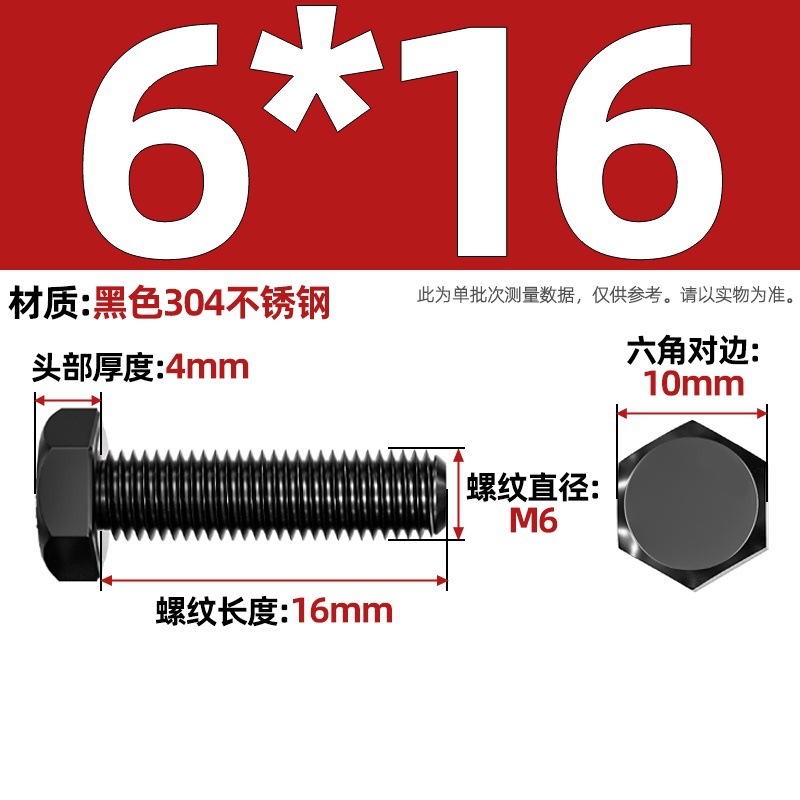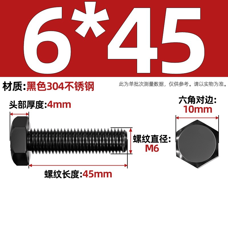 GB 블랙 304 스테인레스 스틸 외부 육각 나사 블랙 아연 도금 블랙 볼트 M3M4M5M6M8M10M12mm