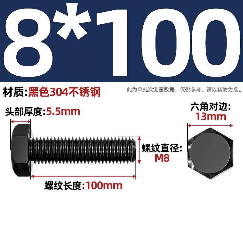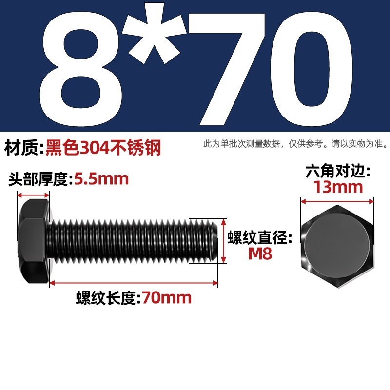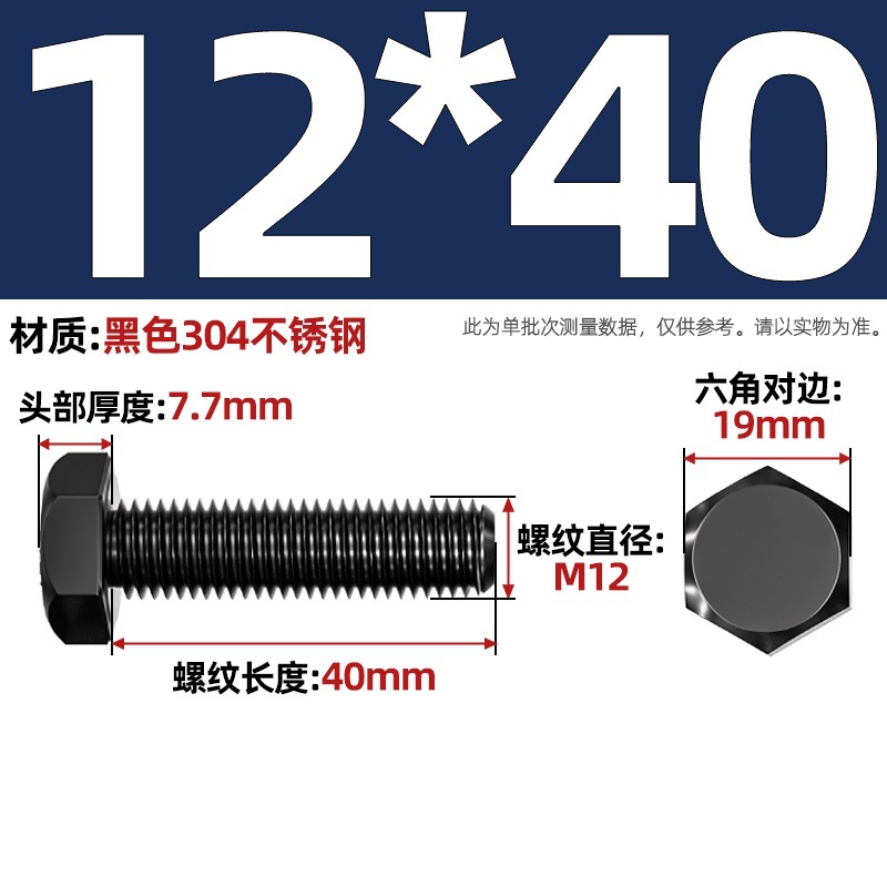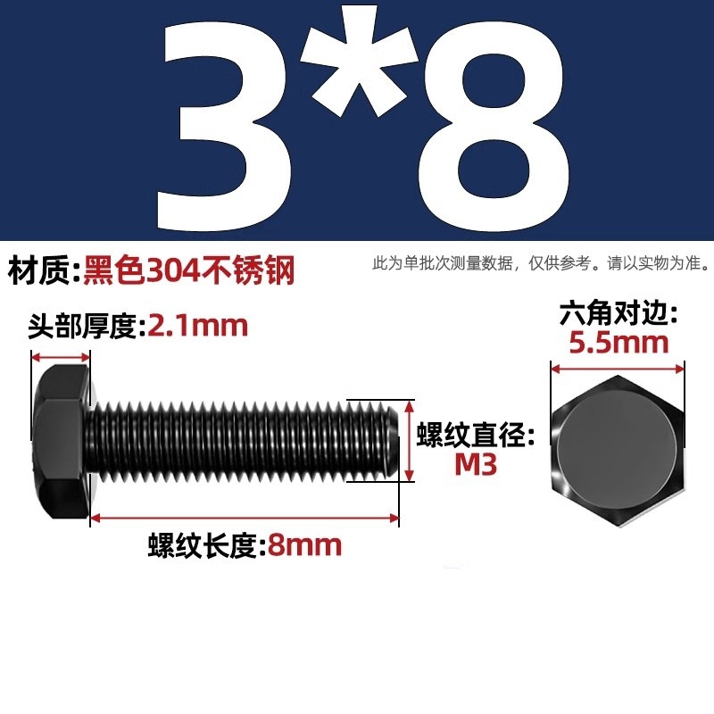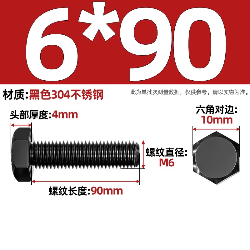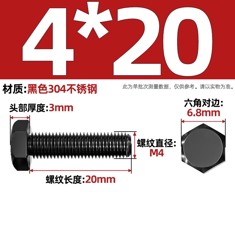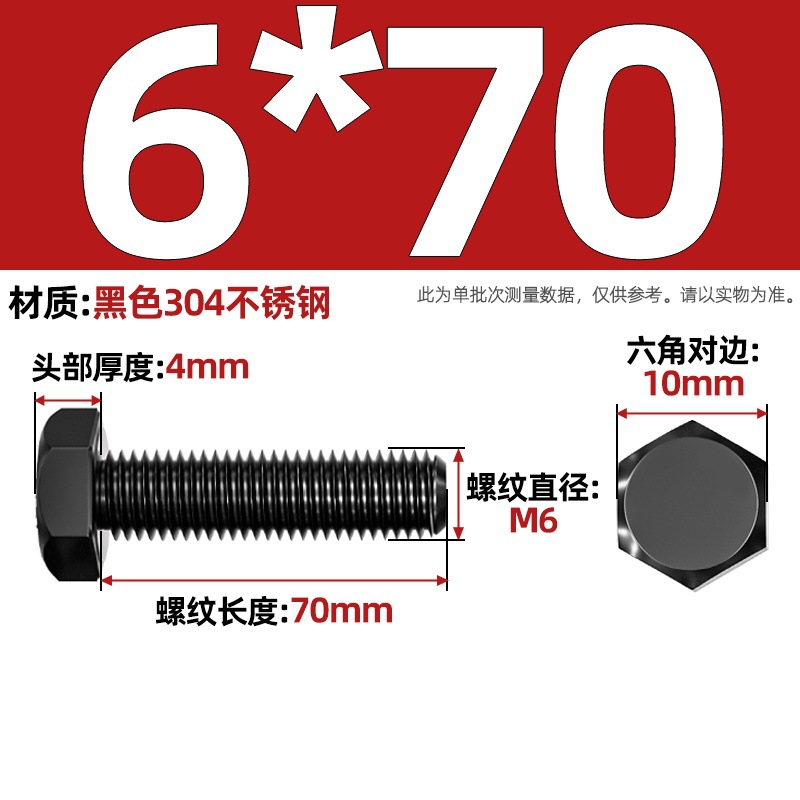 GB 블랙 304 스테인레스 스틸 외부 육각 나사 블랙 아연 도금 블랙 볼트 M3M4M5M6M8M10M12mm