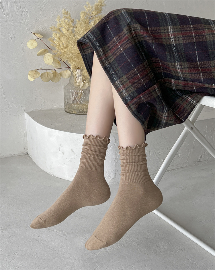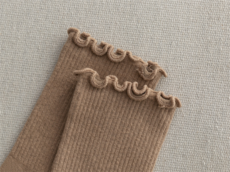 봄과 가을 면화 여성용 양말 다크 브라운 시리즈 수직 줄무늬 느슨한 중간 길이 양말 일본 JK 우드 이어 레이스 양말스토어 가기