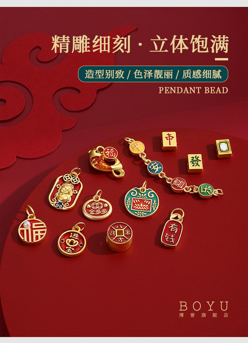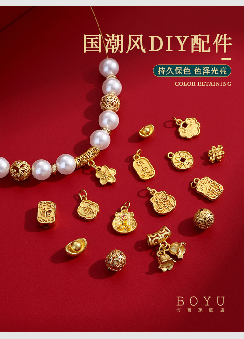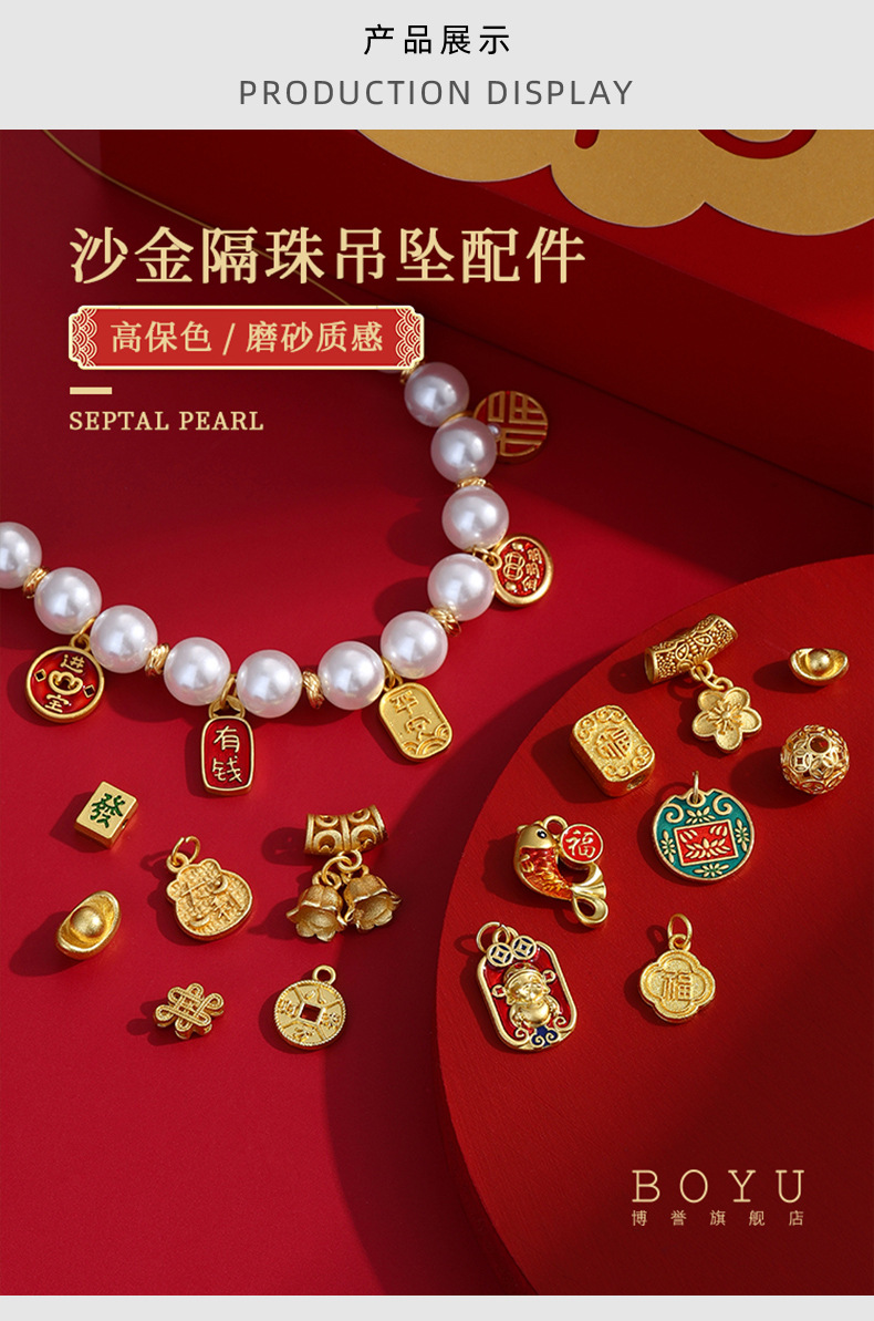 중국 스타일 전국 패션 신년 고대 방법 모래 골드 컬러 보존 비즈 DIY 목걸이 팔찌 구슬 펜던트 싱글 펜던트