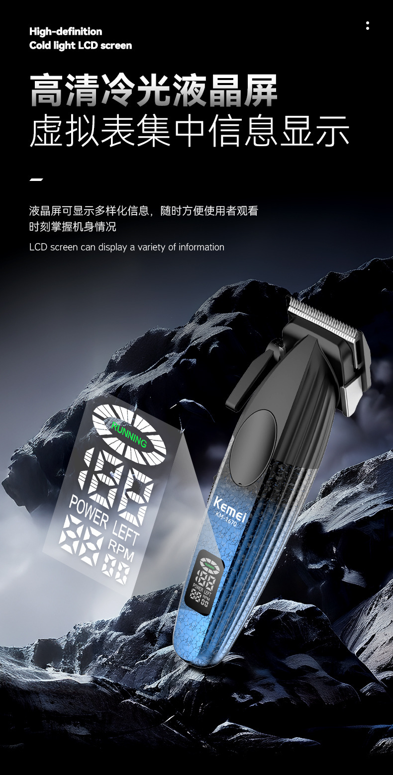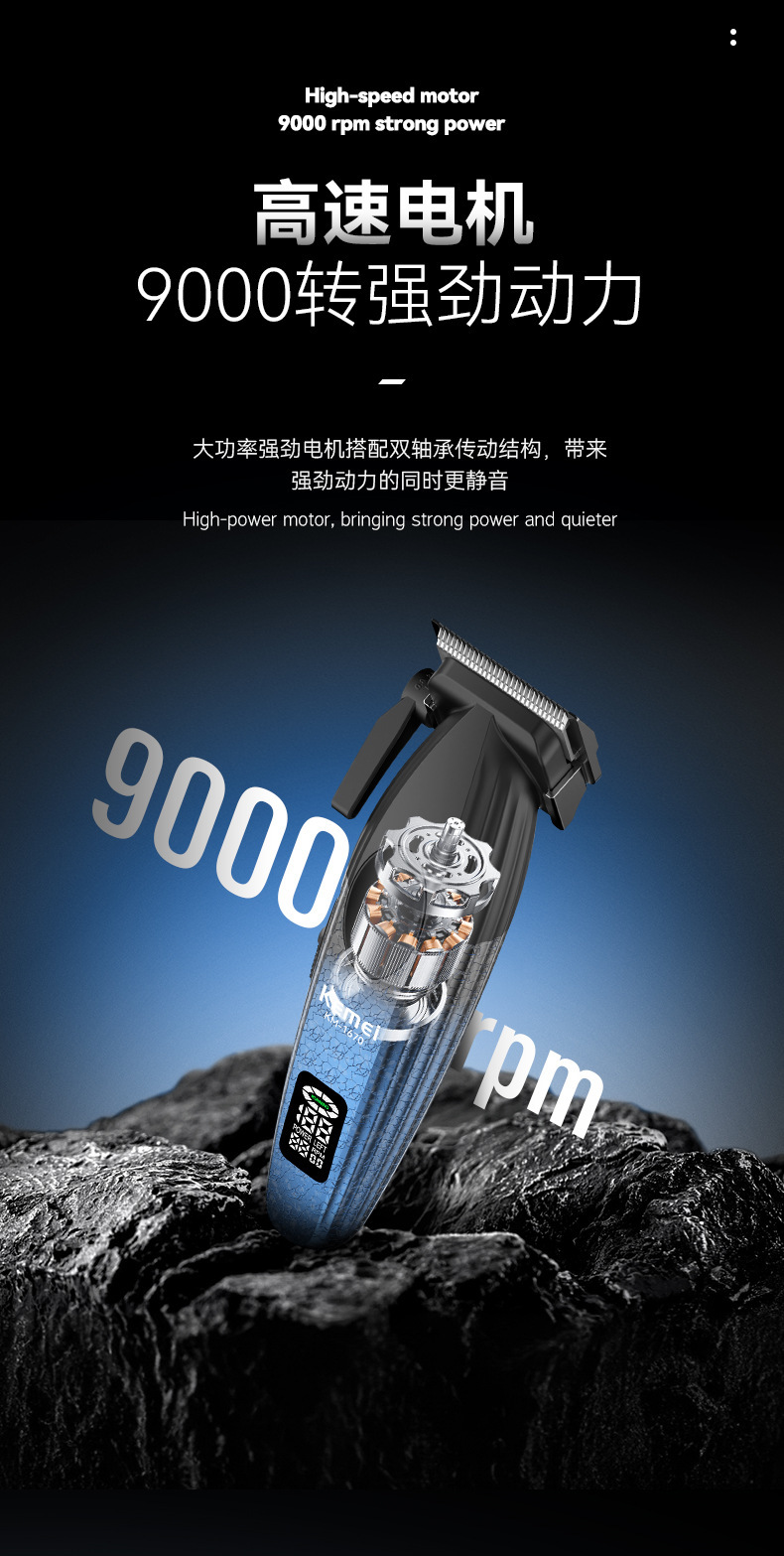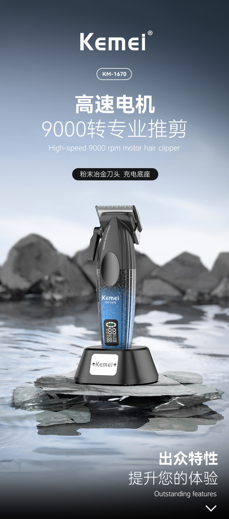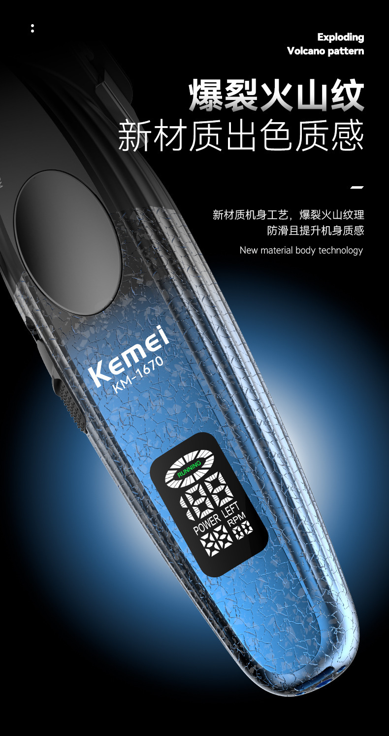KM-1670 Kemei 헤어 클리퍼 새로운 고속 모터 9,000 턴 전문 헤어 클리퍼 지능형 디지털 디스플레이 전기 클리퍼