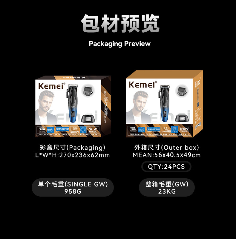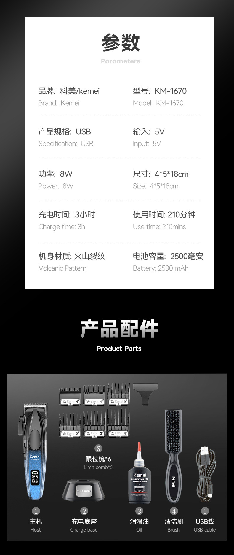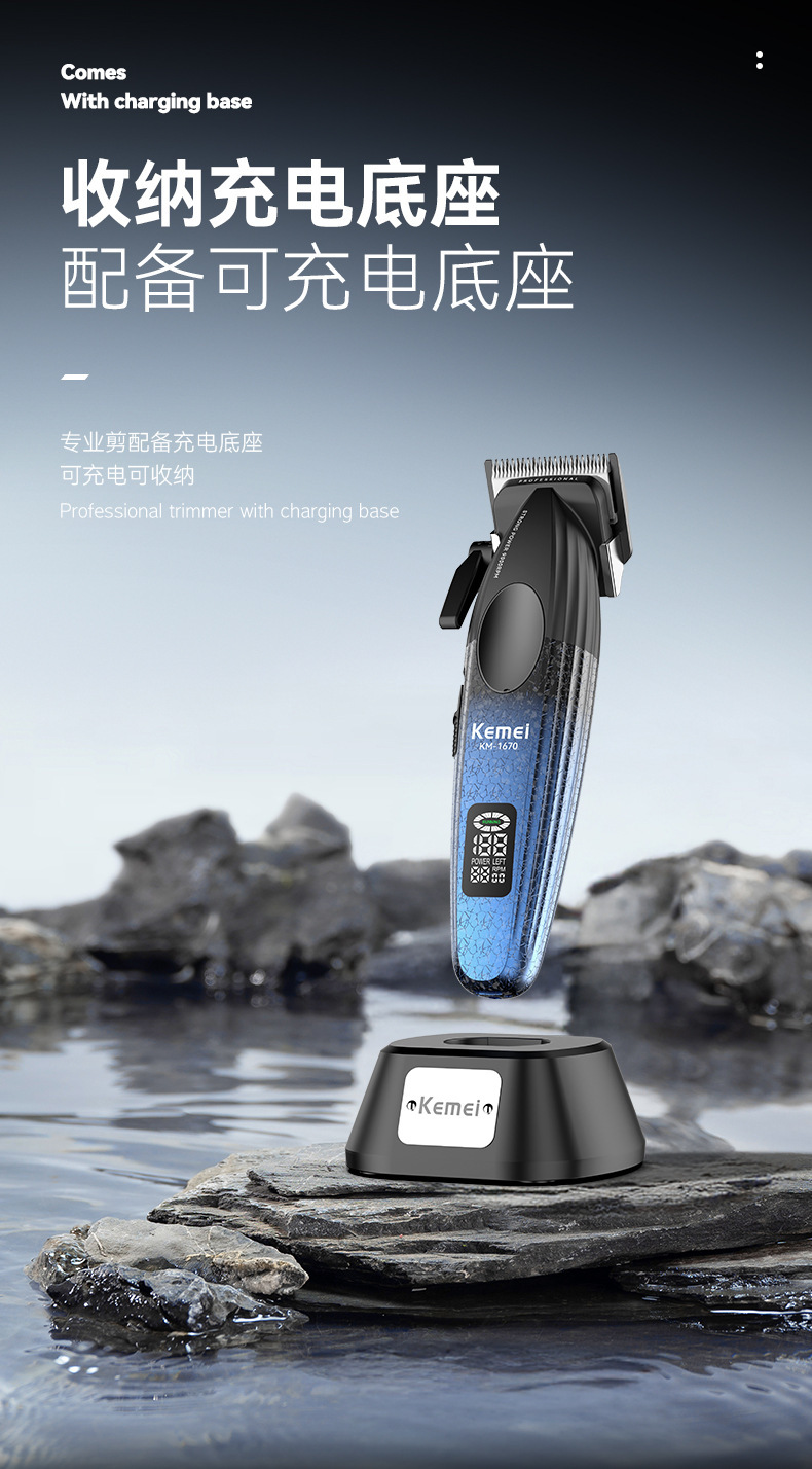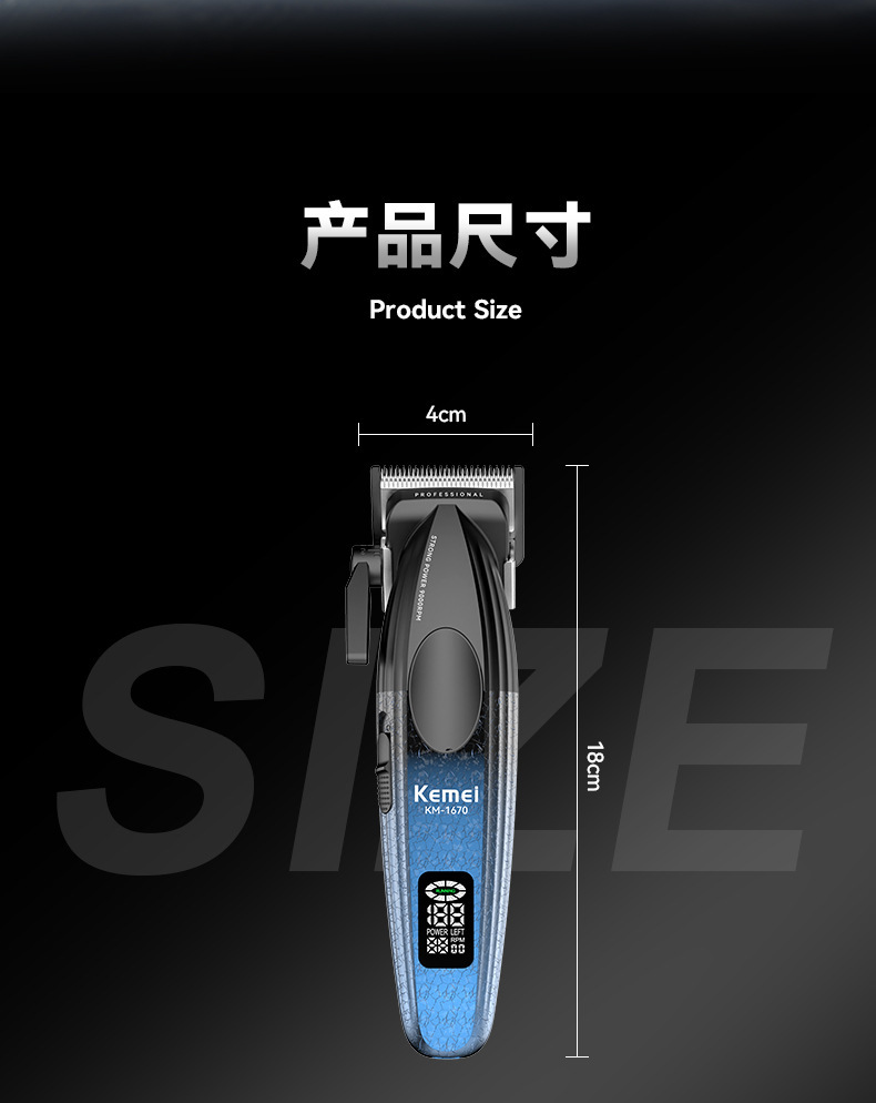 KM-1670 Kemei 헤어 클리퍼 새로운 고속 모터 9,000 턴 전문 헤어 클리퍼 지능형 디지털 디스플레이 전기 클리퍼
