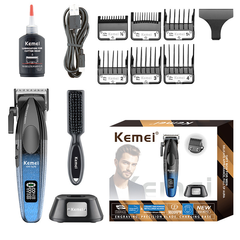 KM-1670 Kemei 헤어 클리퍼 새로운 고속 모터 9,000 턴 전문 헤어 클리퍼 지능형 디지털 디스플레이 전기 클리퍼스토어 가기