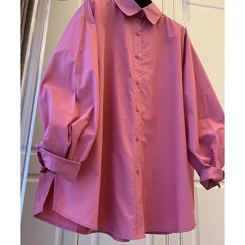 한국 동대문 스타일 단색 긴팔 셔츠 여성용 2025 가을 겨울 루즈핏 캐주얼 빅사이즈 레이어드 이너 셔츠스토어 가기