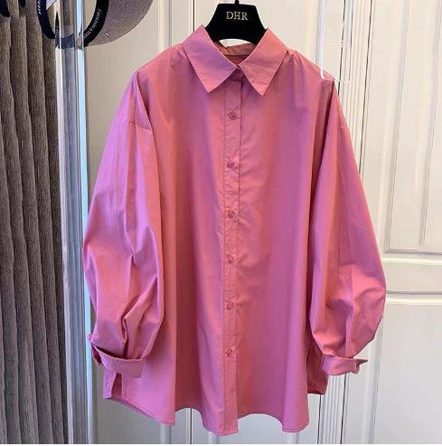 한국 동대문 스타일 단색 긴팔 셔츠 여성용 2025 가을 겨울 루즈핏 캐주얼 빅사이즈 레이어드 이너 셔츠