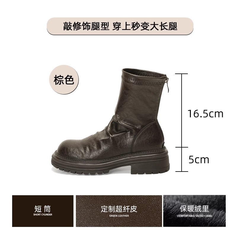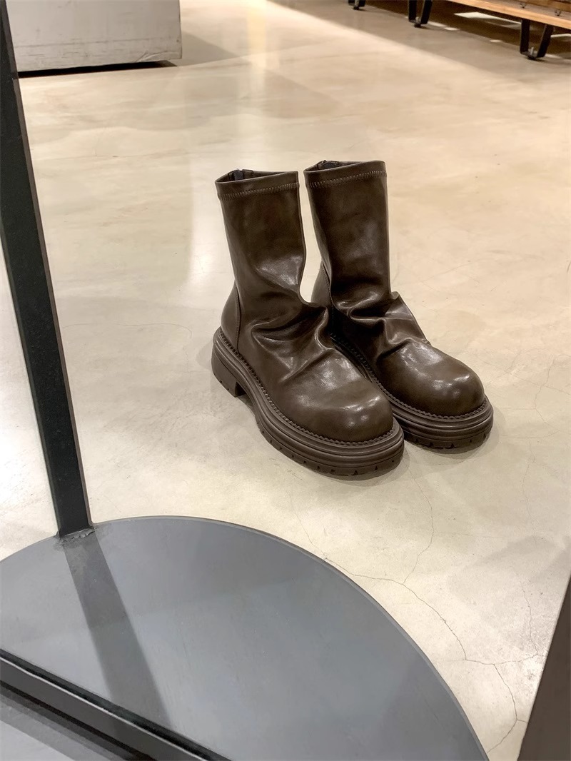마틴 부츠 여성 2024 가을 및 겨울 새로운 패션 파일 부츠 주름 모든 경기 두꺼운 바닥 발 쇼 작은 후면 지퍼 짧은 부츠스토어 가기