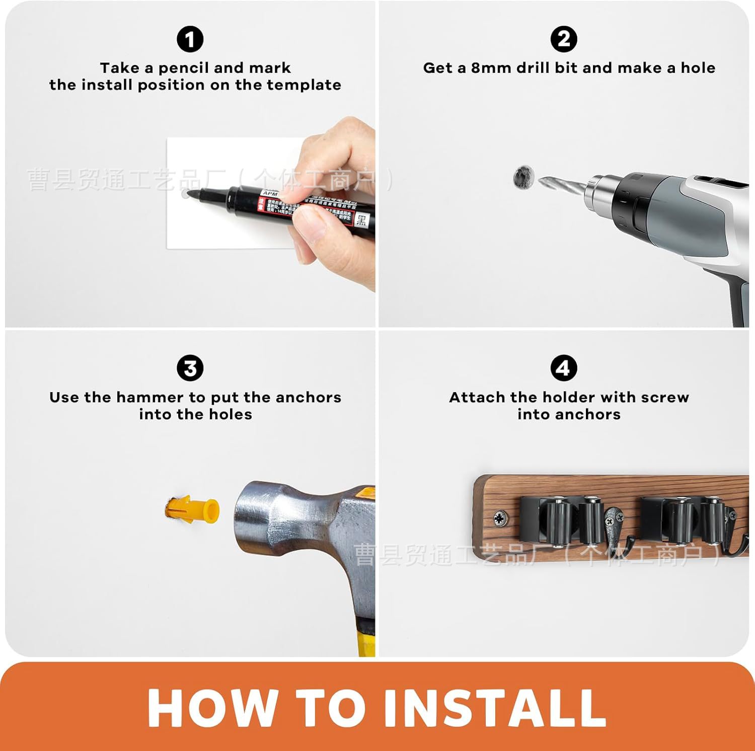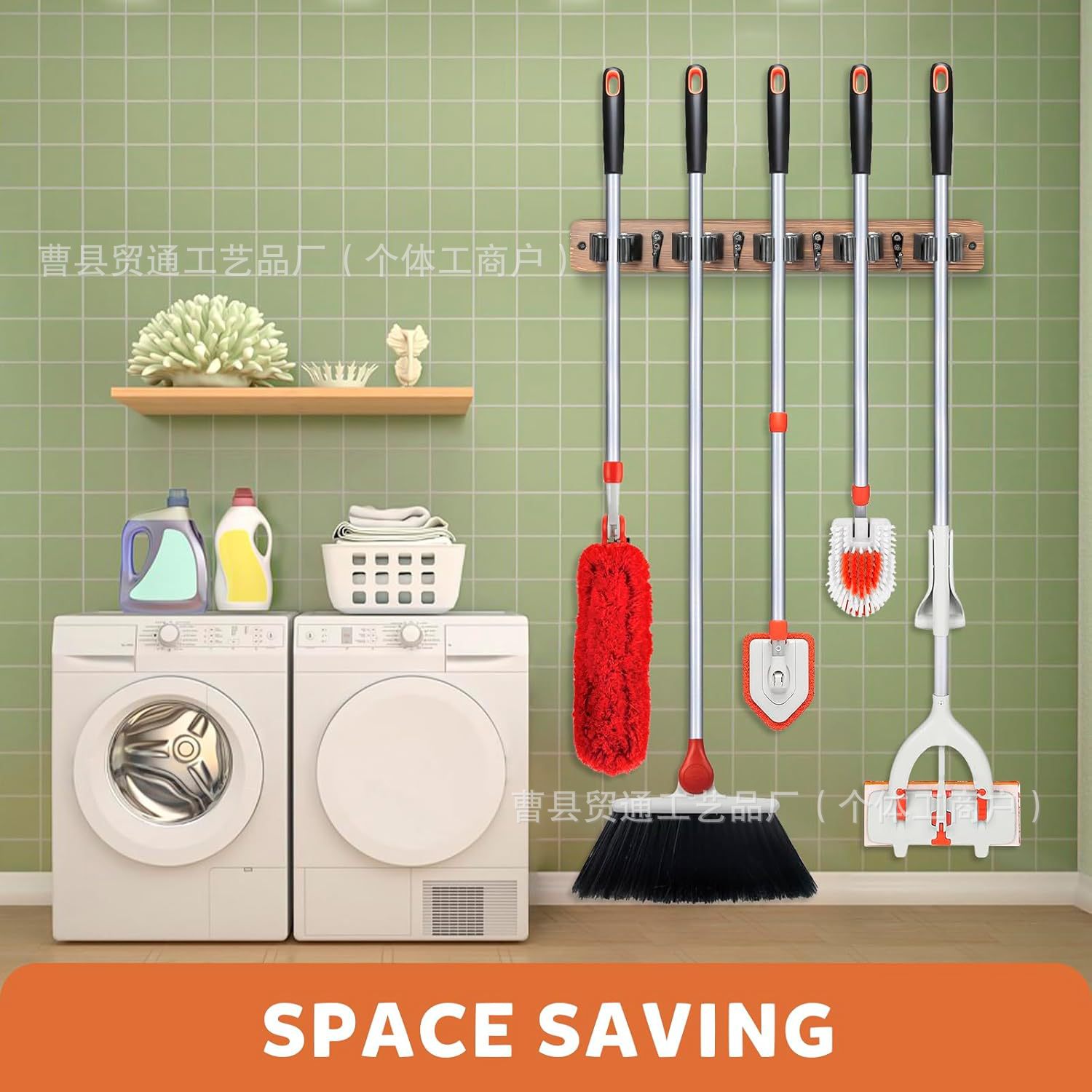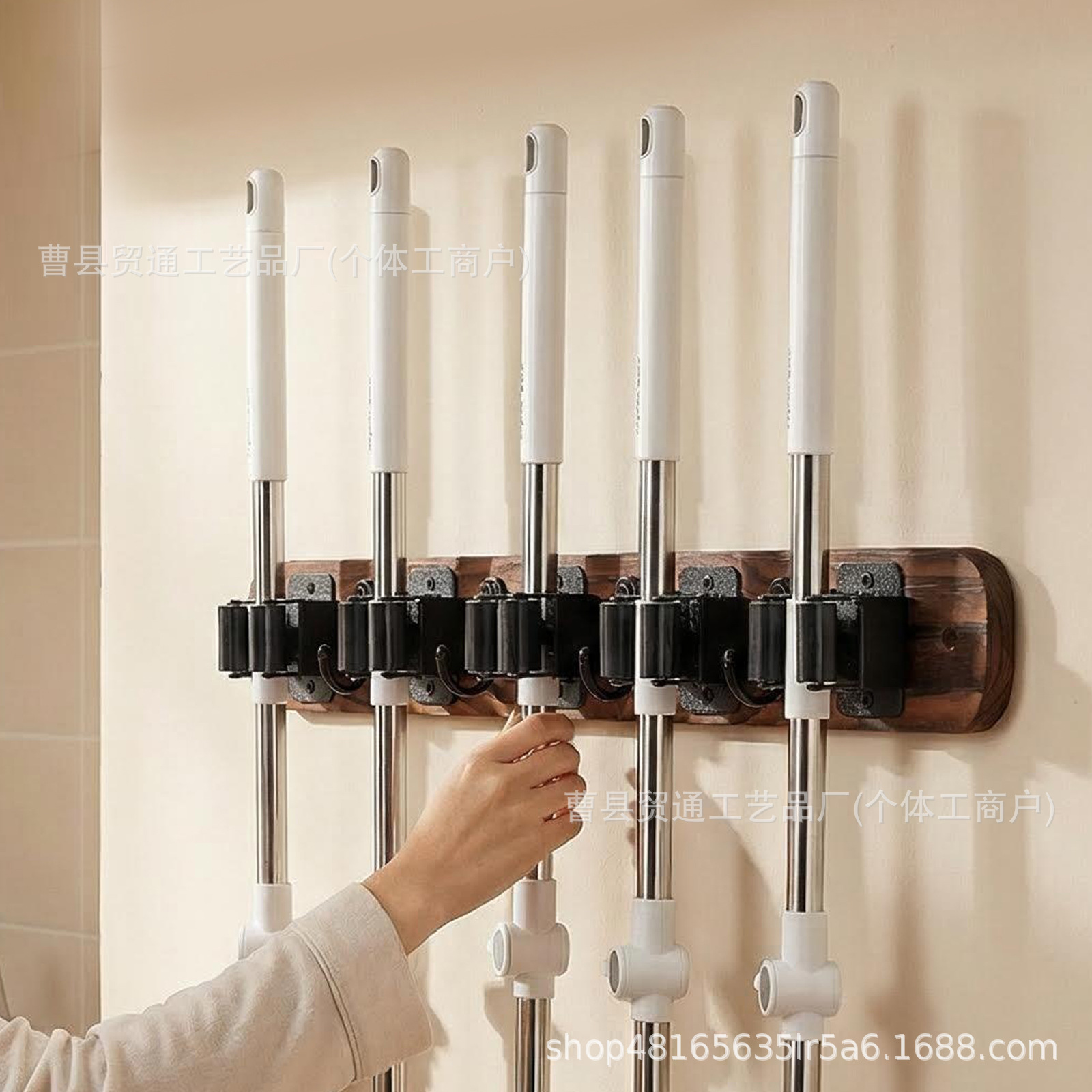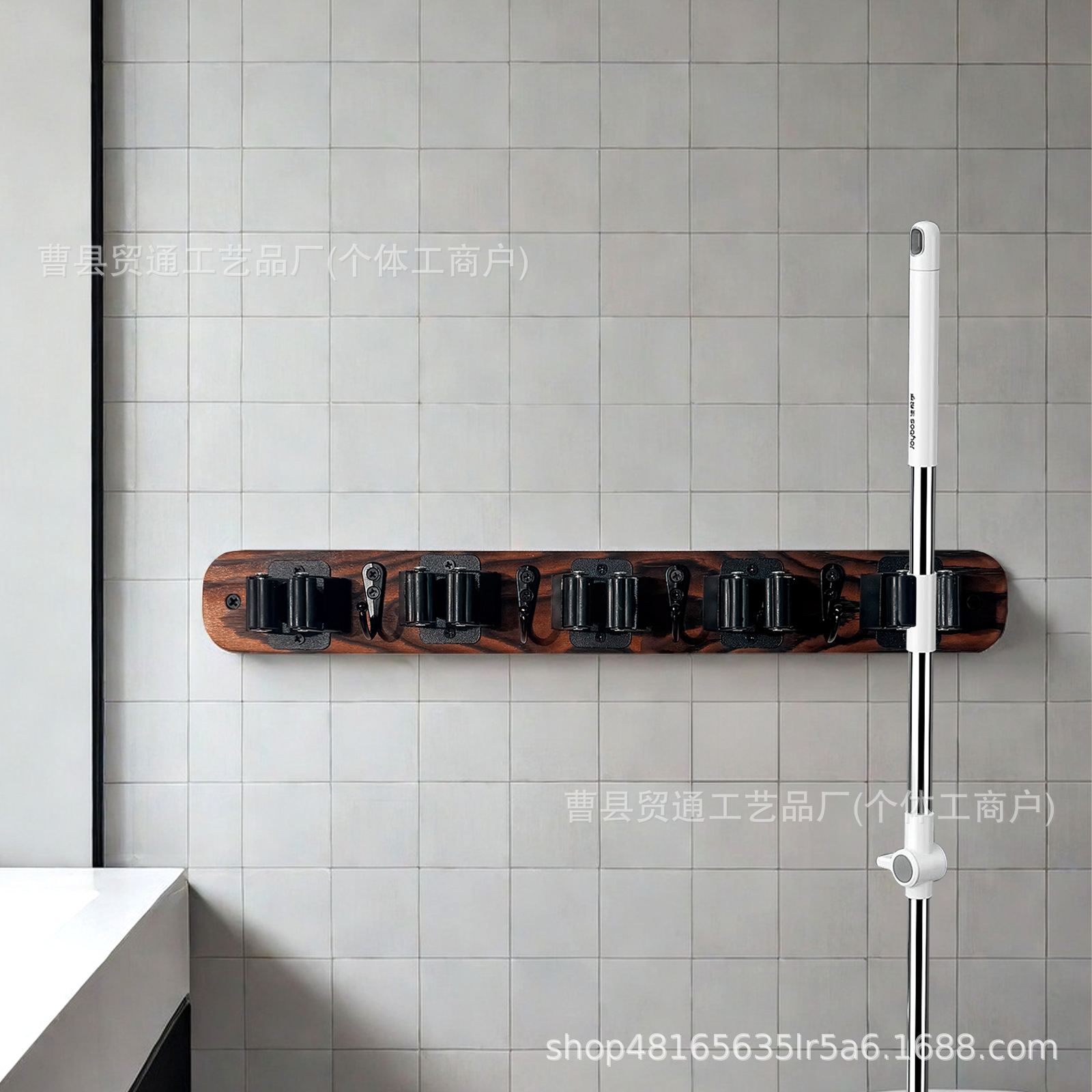 아마존 벽에 장착 된 나무 빗자루 랙 후크 빗자루 스토리지 랙 세탁 스토리지 홈 마무리 걸레 랙