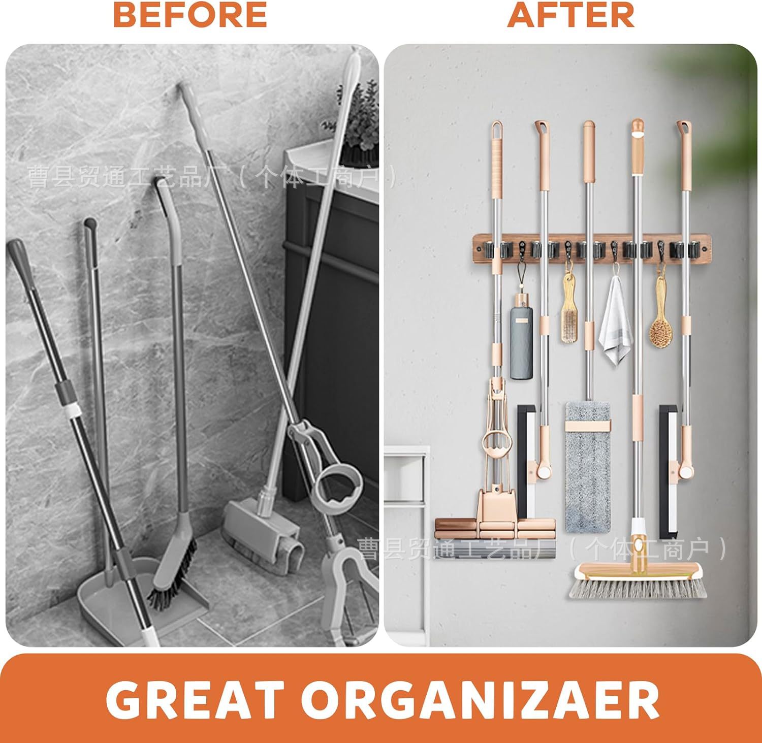 아마존 벽에 장착 된 나무 빗자루 랙 후크 빗자루 스토리지 랙 세탁 스토리지 홈 마무리 걸레 랙스토어 가기