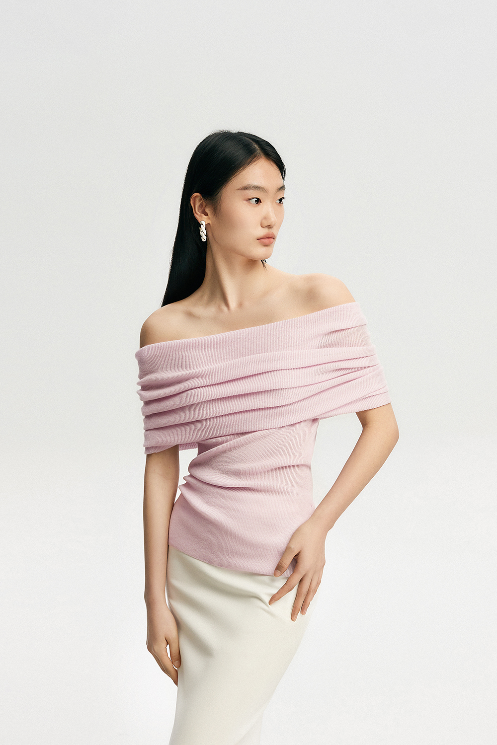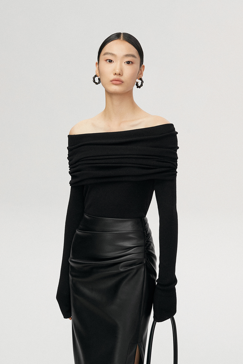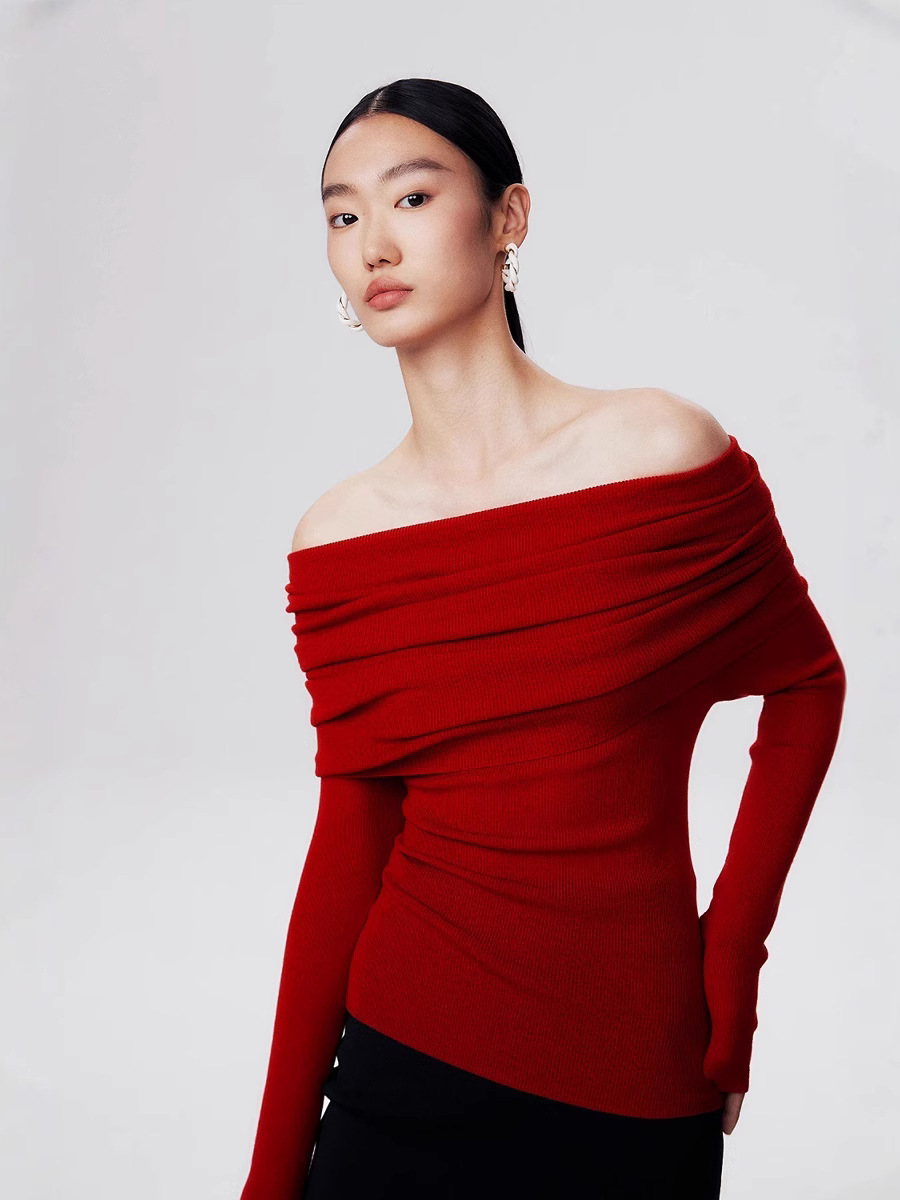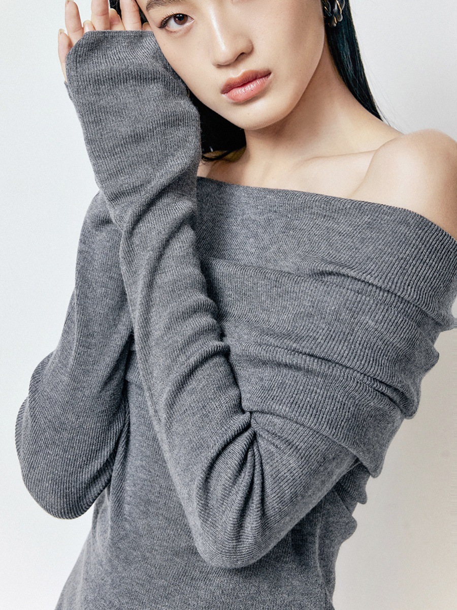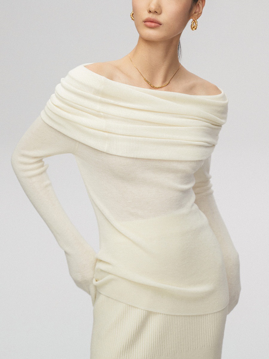 微透小性感一字肩针织衫,包容性非常好,完全不挑身材
