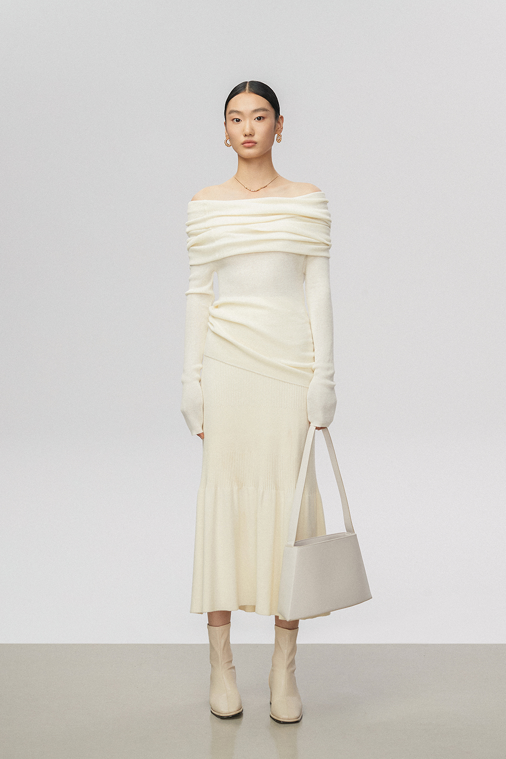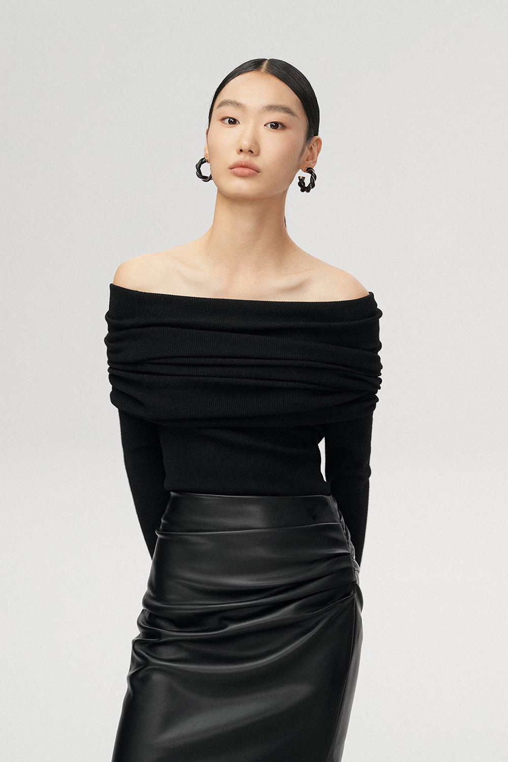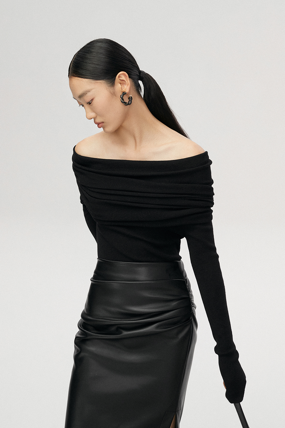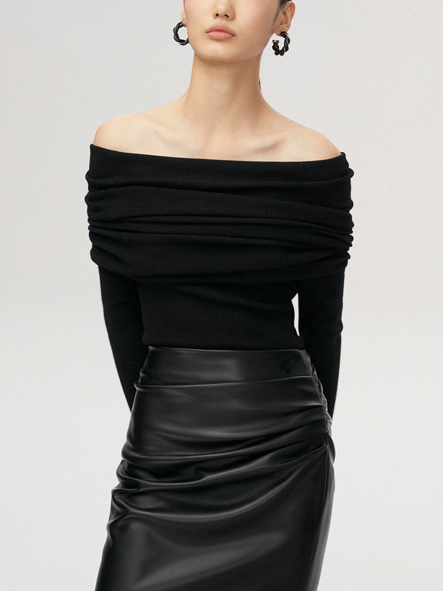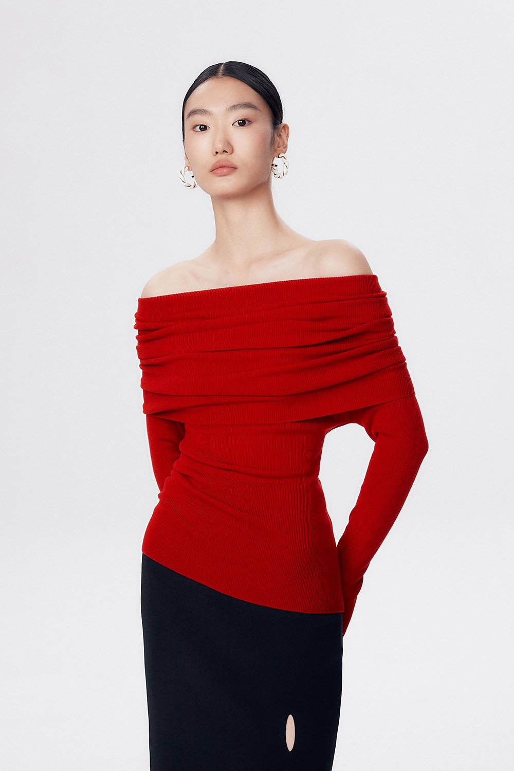 微透小性感一字肩针织衫,包容性非常好,完全不挑身材