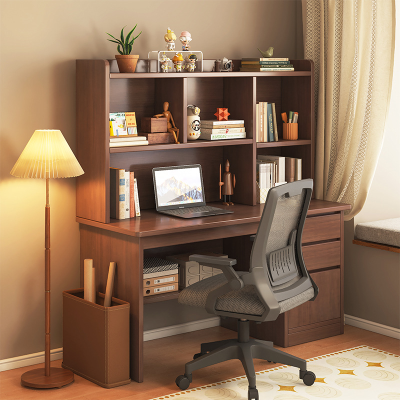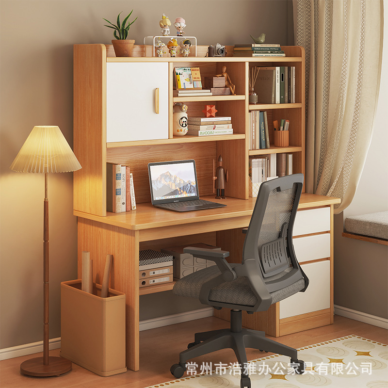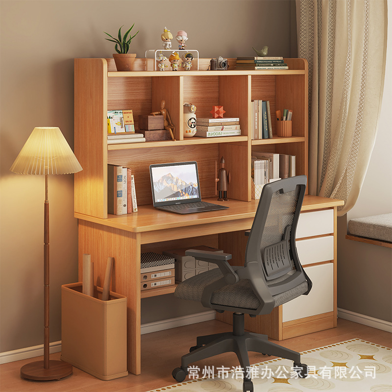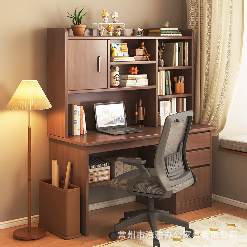 책꽂이 침실 테이블과 의자 조합 학생 필기 테이블이있는 단단한 나무 컴퓨터 책상 홈 스터디 데스크
