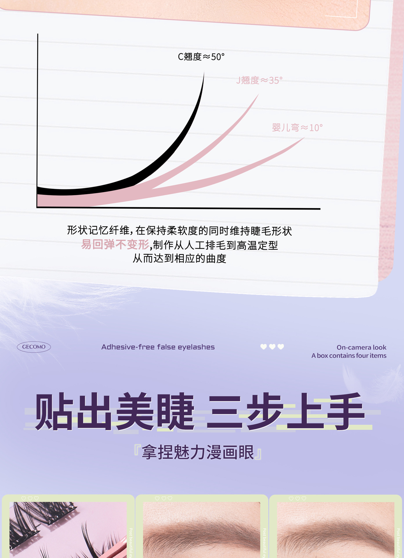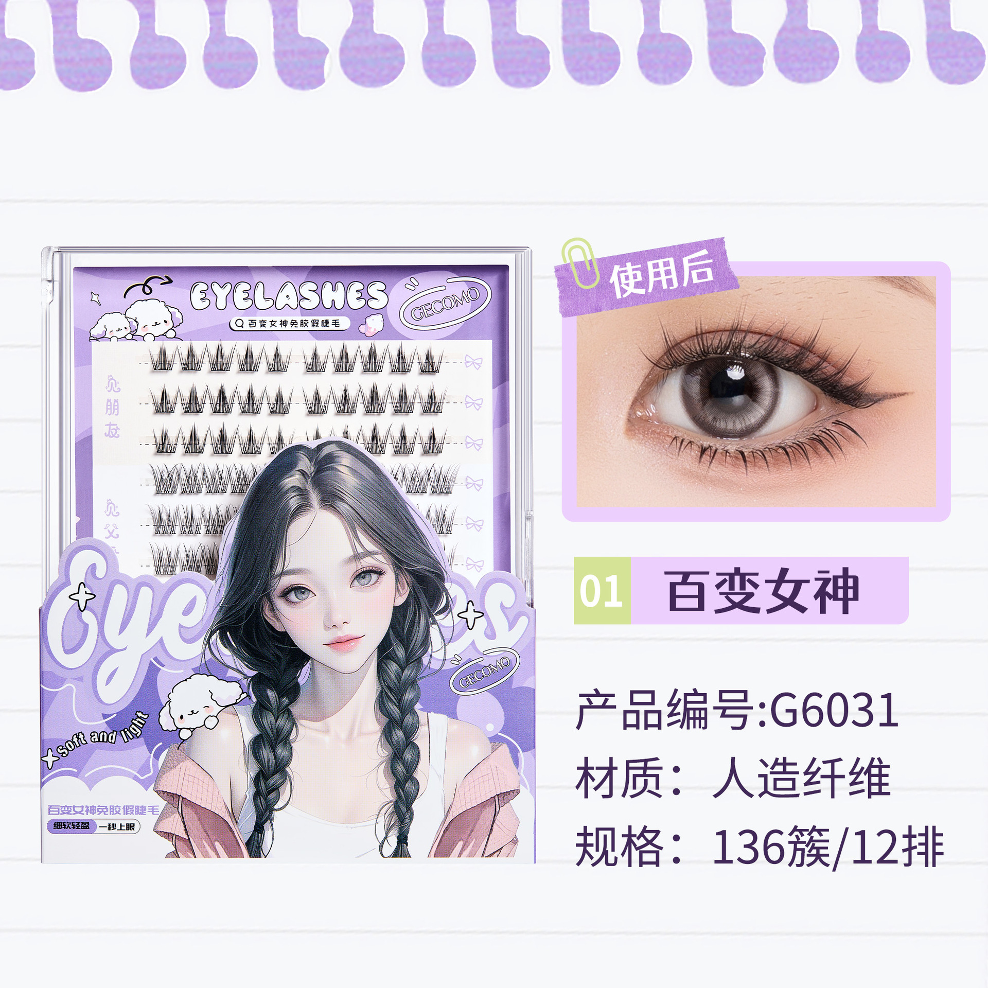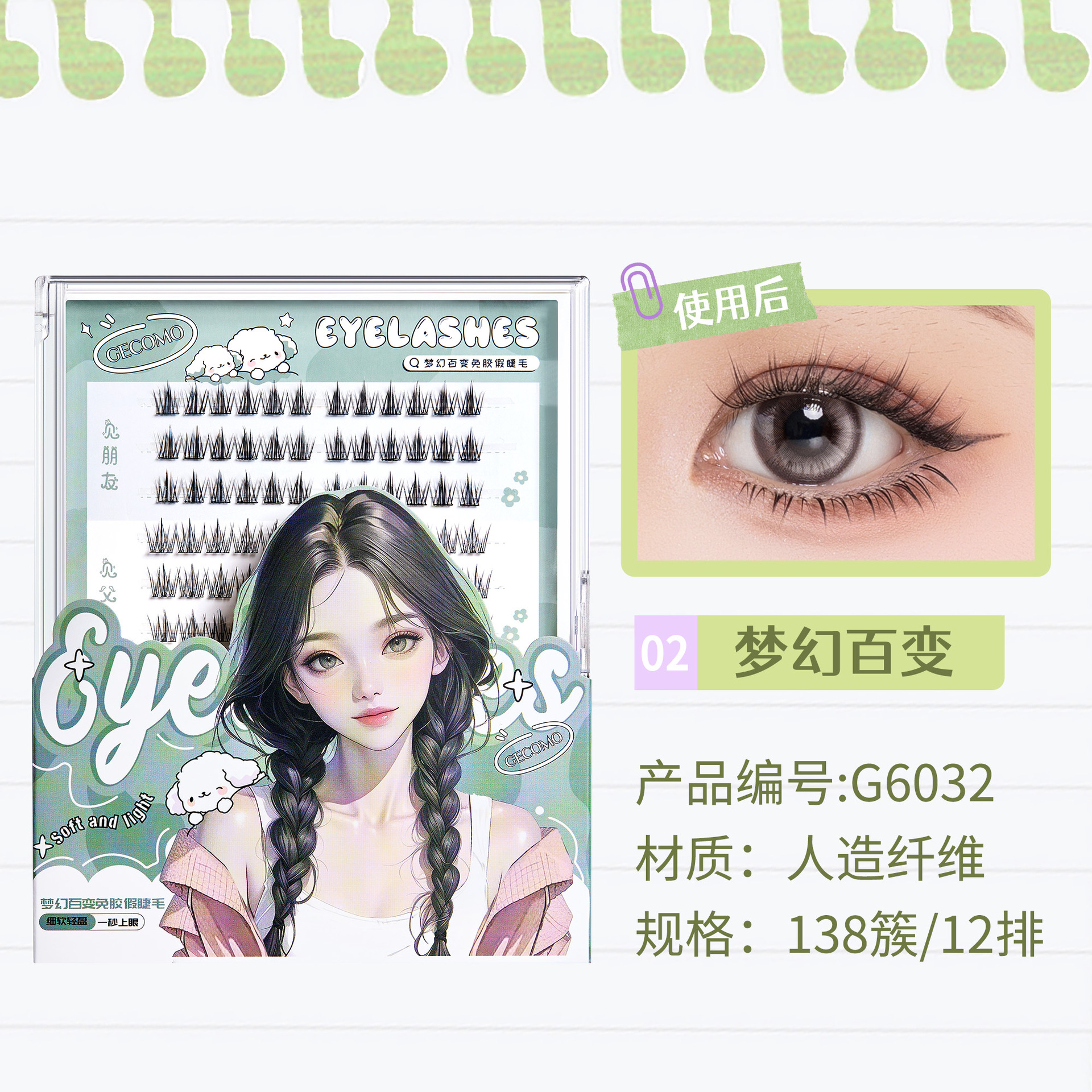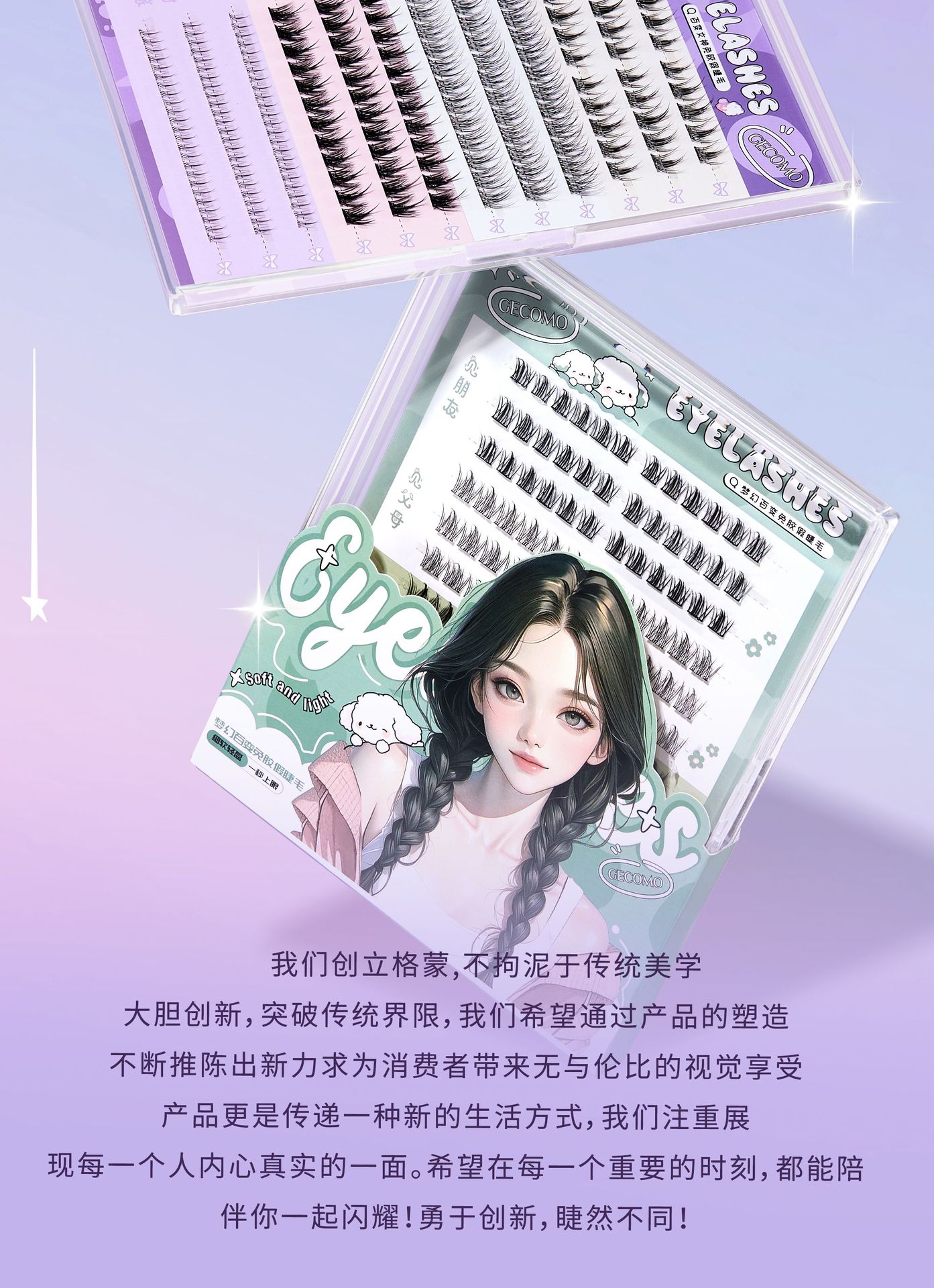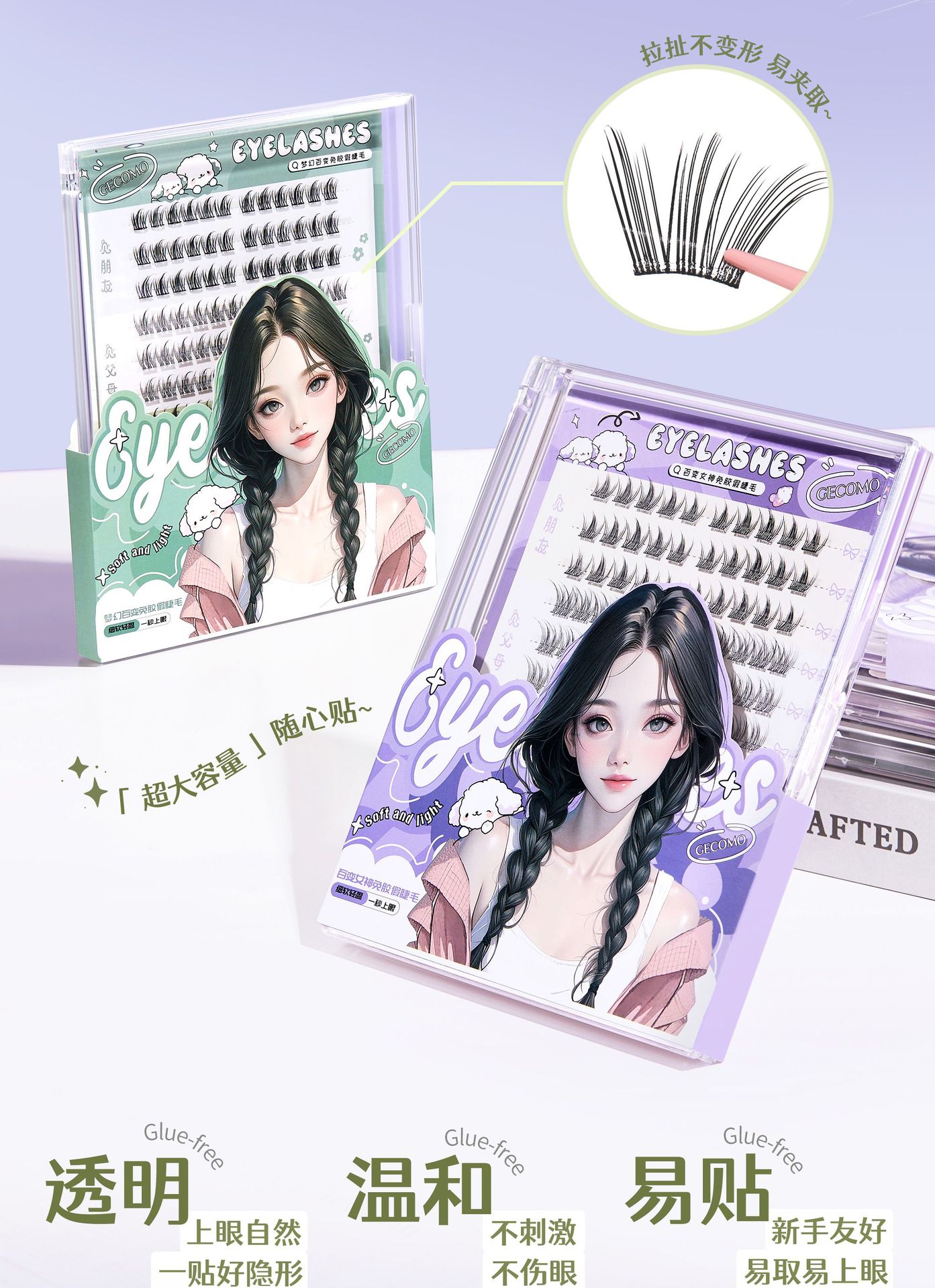 GECOMO 혼합 팩 대용량 젤없는 속눈썹 책 거짓 속눈썹 136 클러스터 만화 눈 순수한 욕망 세분화 된 속눈썹스토어 가기