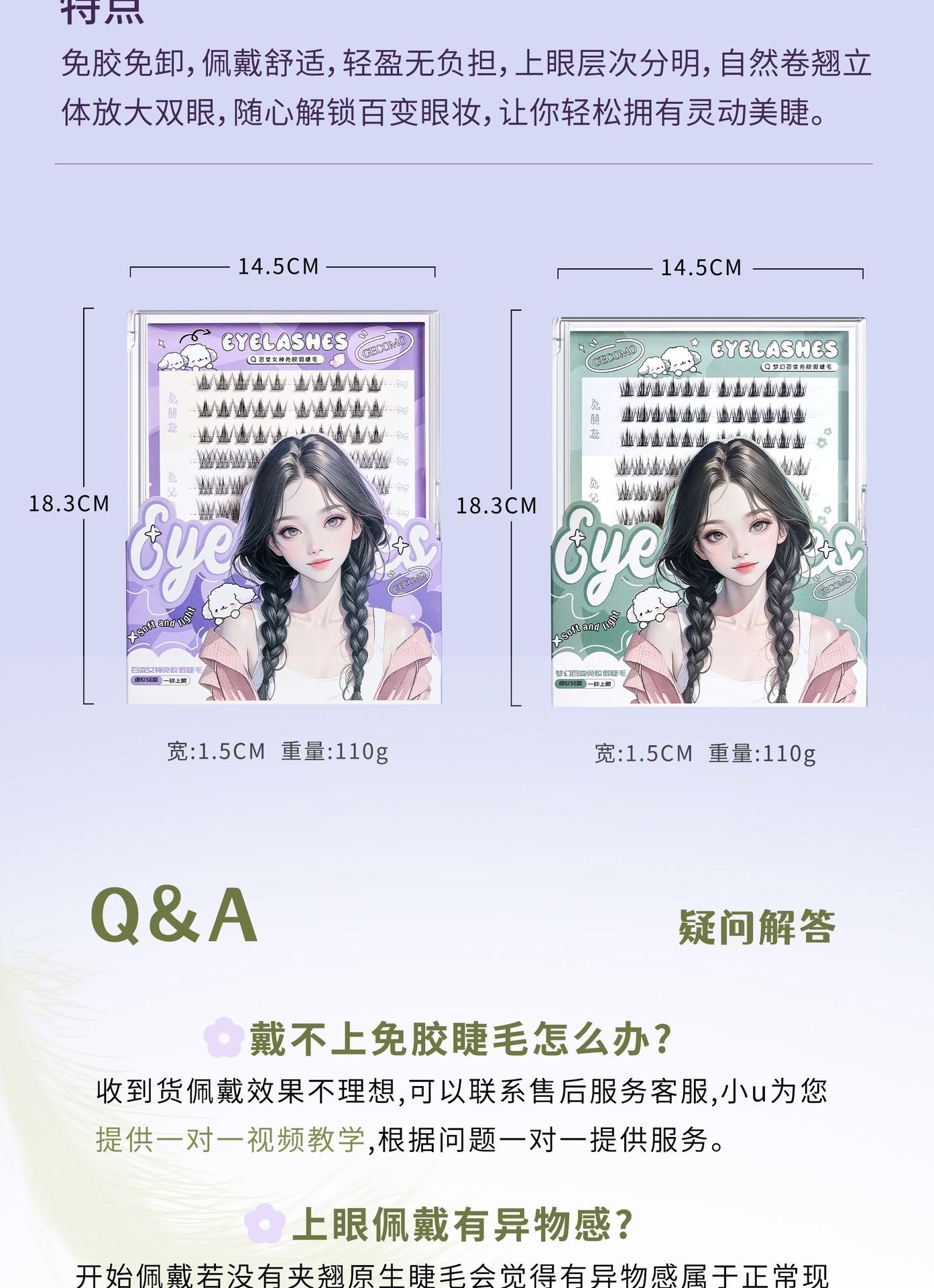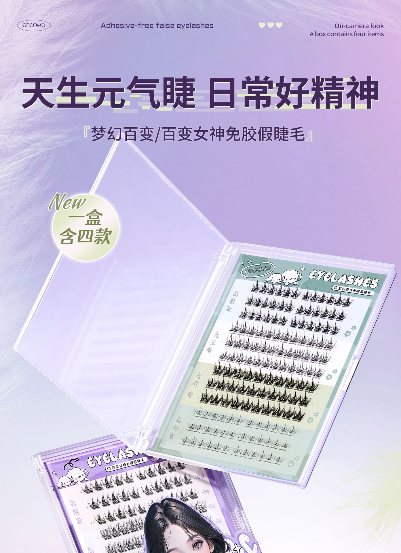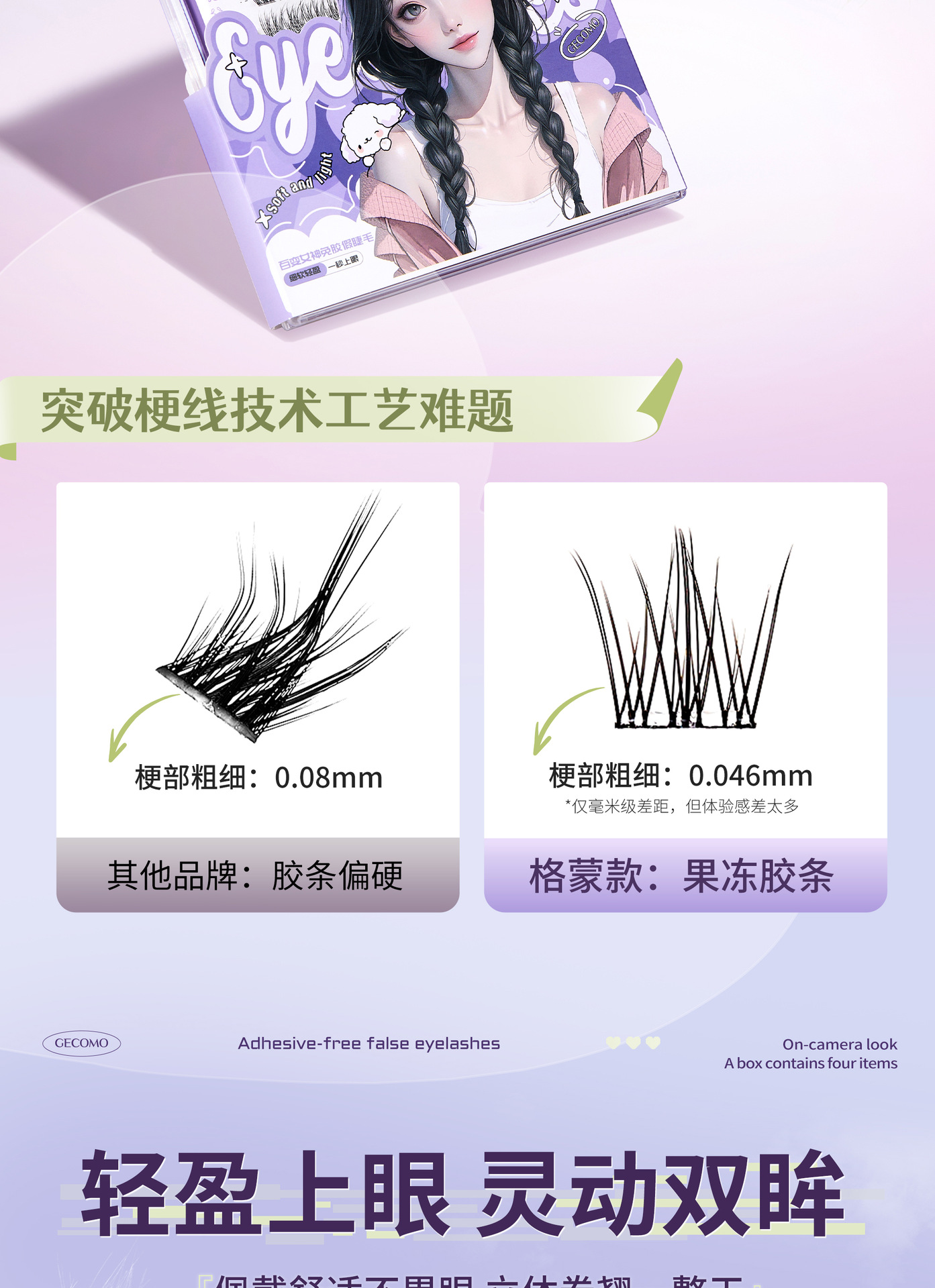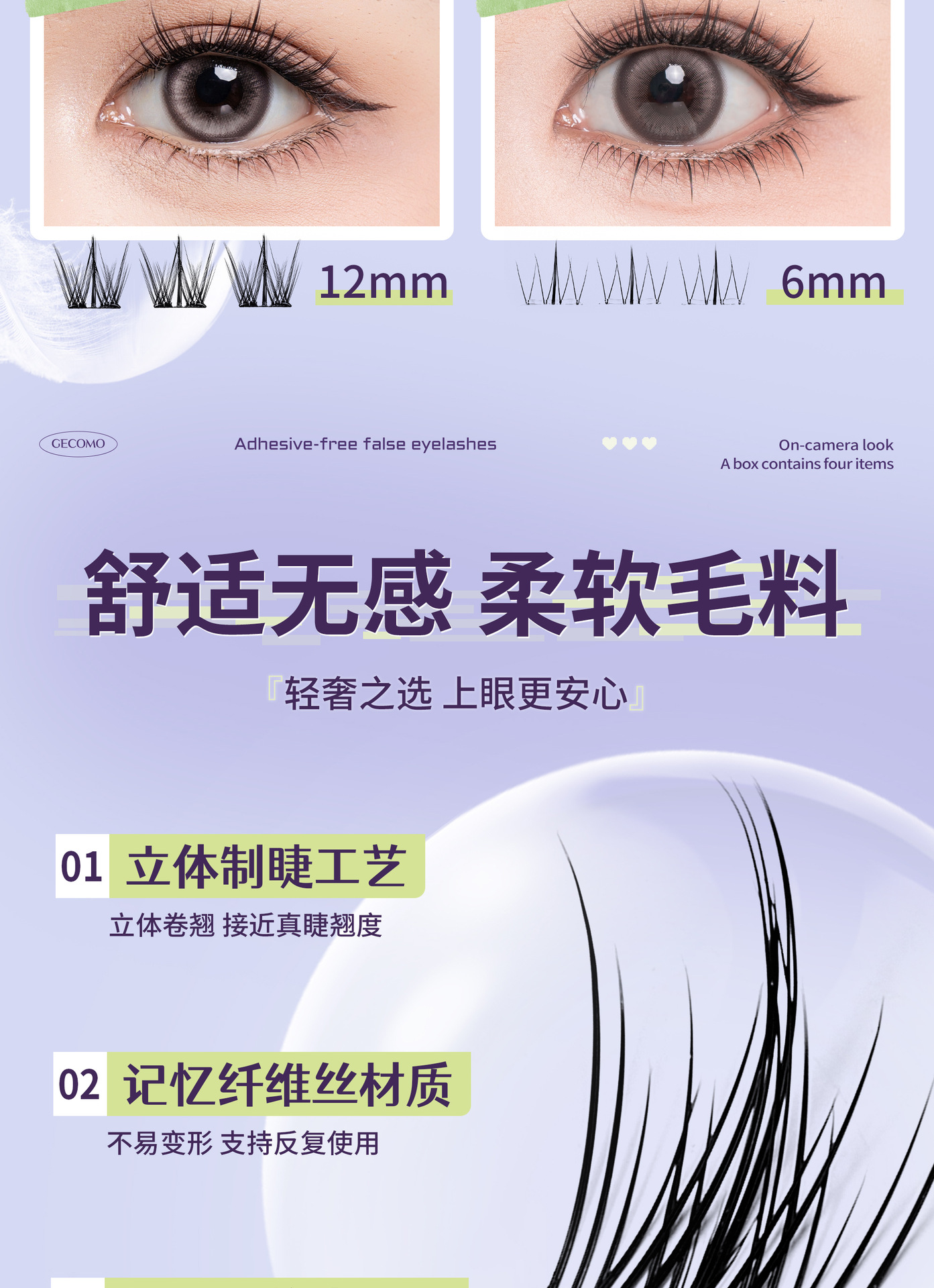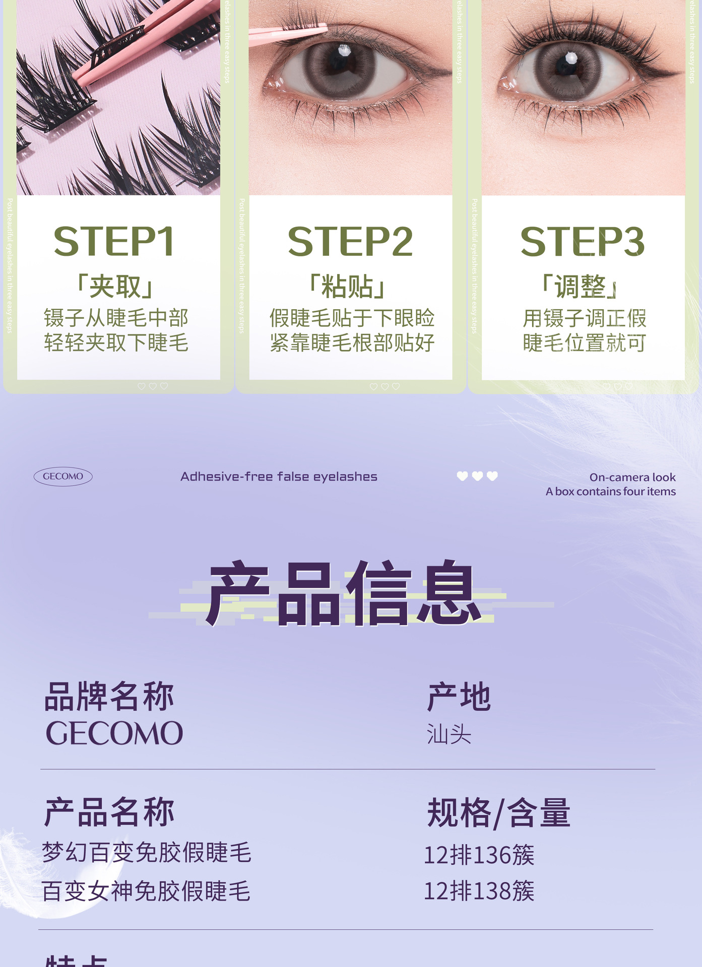 GECOMO 혼합 팩 대용량 젤없는 속눈썹 책 거짓 속눈썹 136 클러스터 만화 눈 순수한 욕망 세분화 된 속눈썹스토어 가기