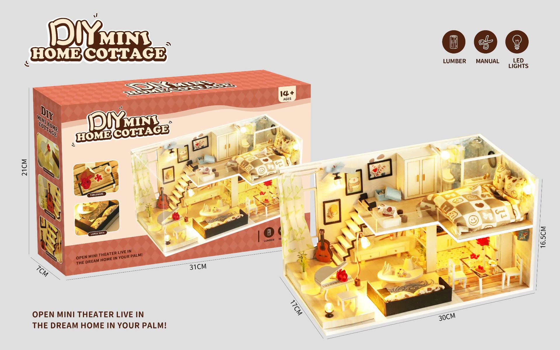 국경 간 새로운 DIY 오두막 수제 나무 조립 모델 창조적 인 교육 장난감 소녀 생일 선물