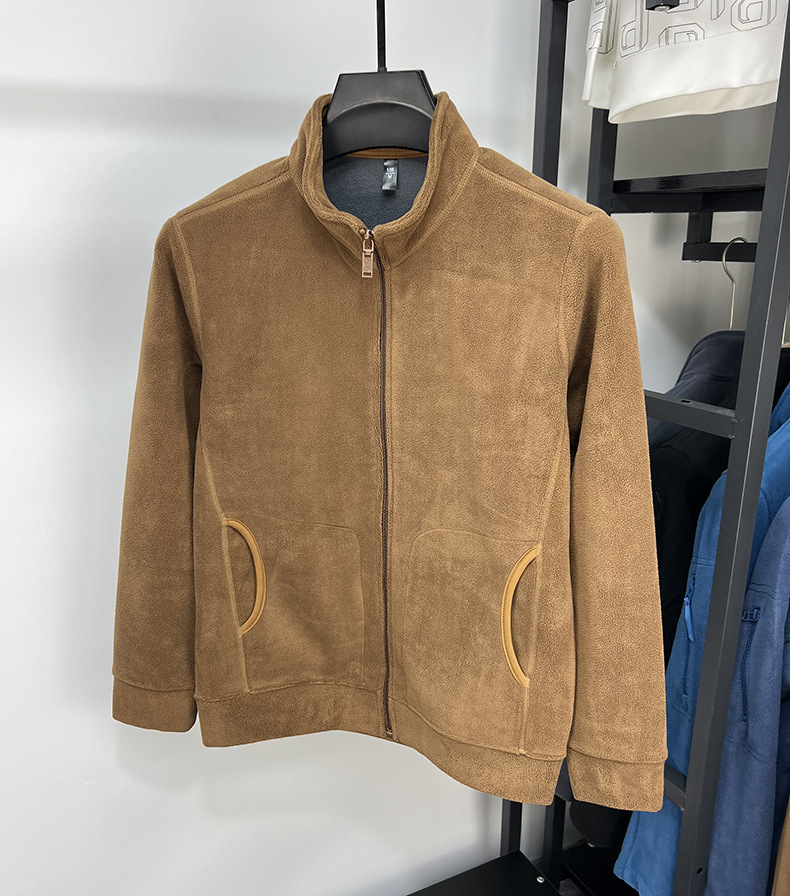 아오 곡물 양털 스웨터 남자 수직 칼라 지퍼 카디건 재킷 가을과 겨울 남자 두꺼운 따뜻한 폴라 양털 솔리드 컬러 재킷
