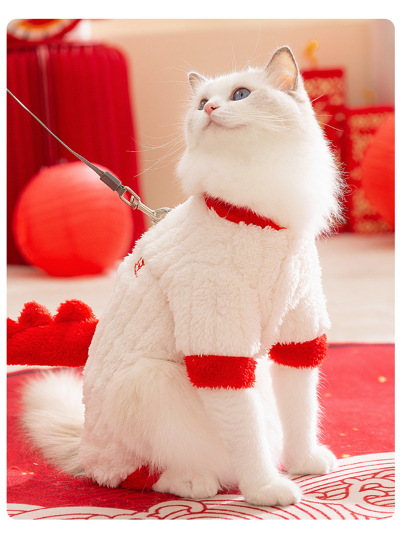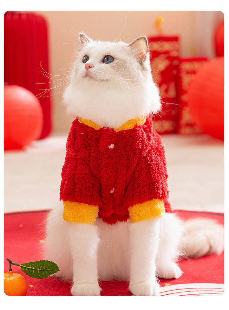 가을과 겨울 고양이 옷 공 Xi Fa Cai 긴 꼬리 새해 네 다리 벨벳 옷 파란 고양이 고양이 머리없는 고양이 애완 동물 의류스토어 가기