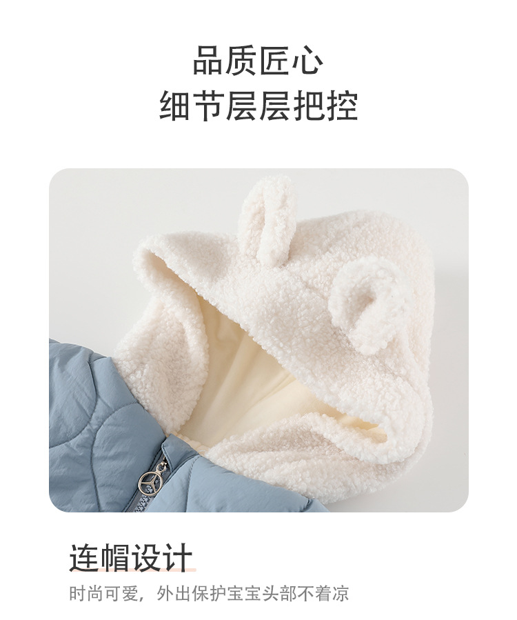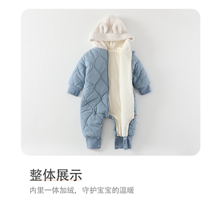 아기용 다운 코튼 점프수트 180g 코튼 방풍 후드 지퍼형 크롤링복 따뜻한 야외용스토어 가기