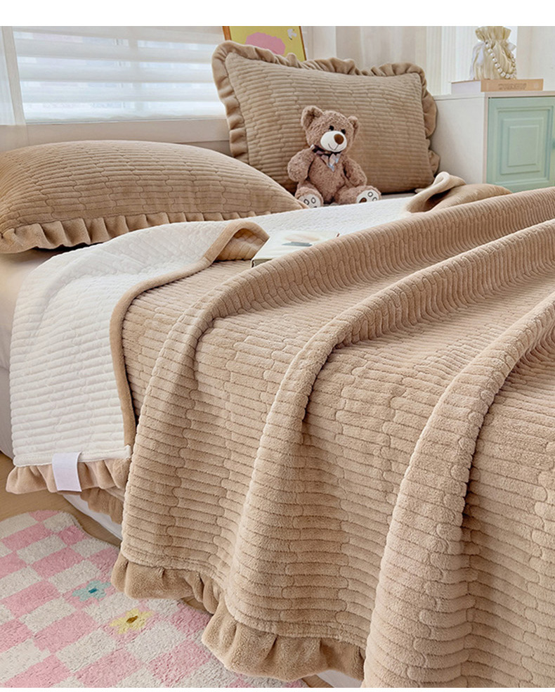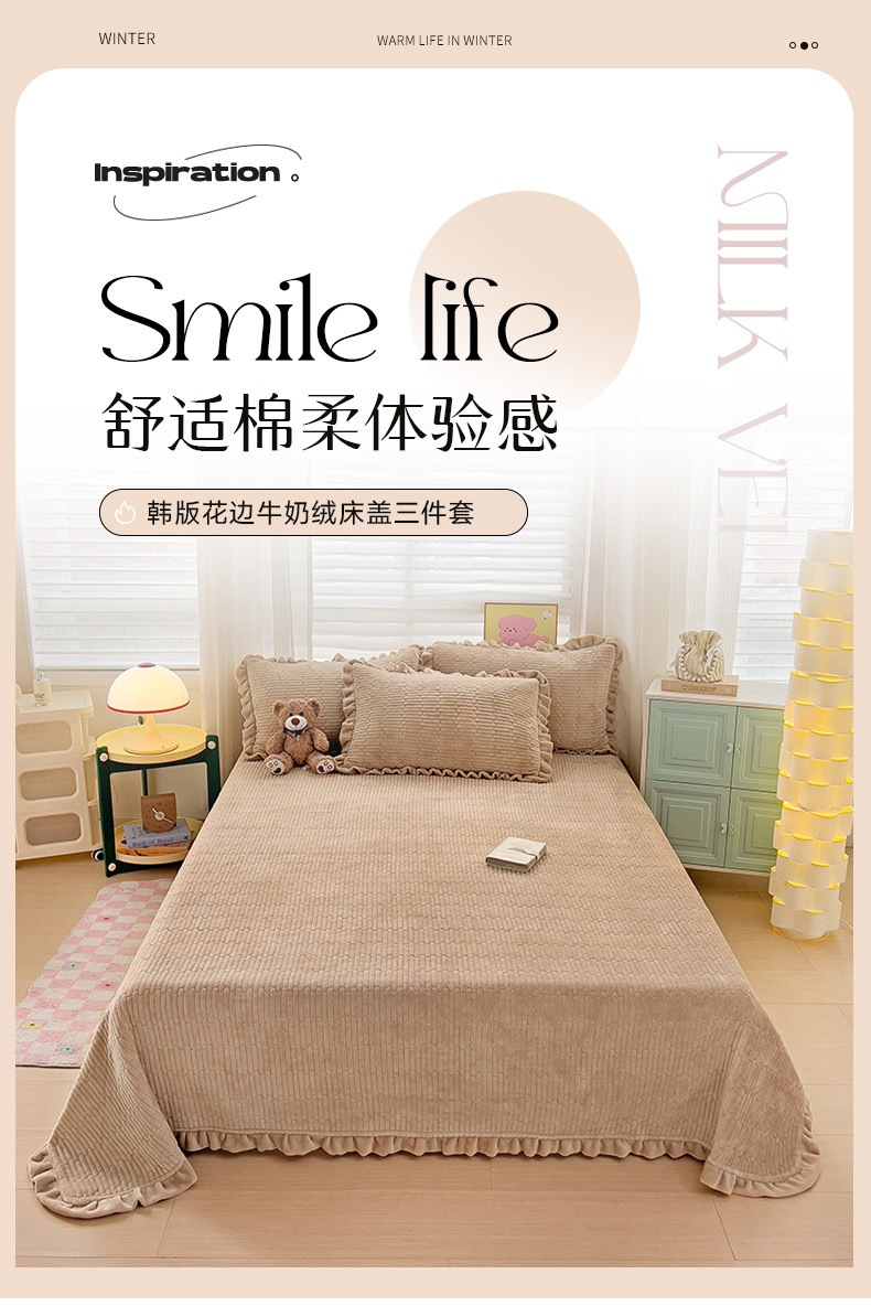 2024 새로운 우유 벨벳 아기 벨벳 한국 레이스 침대 커버 3 개 세트
