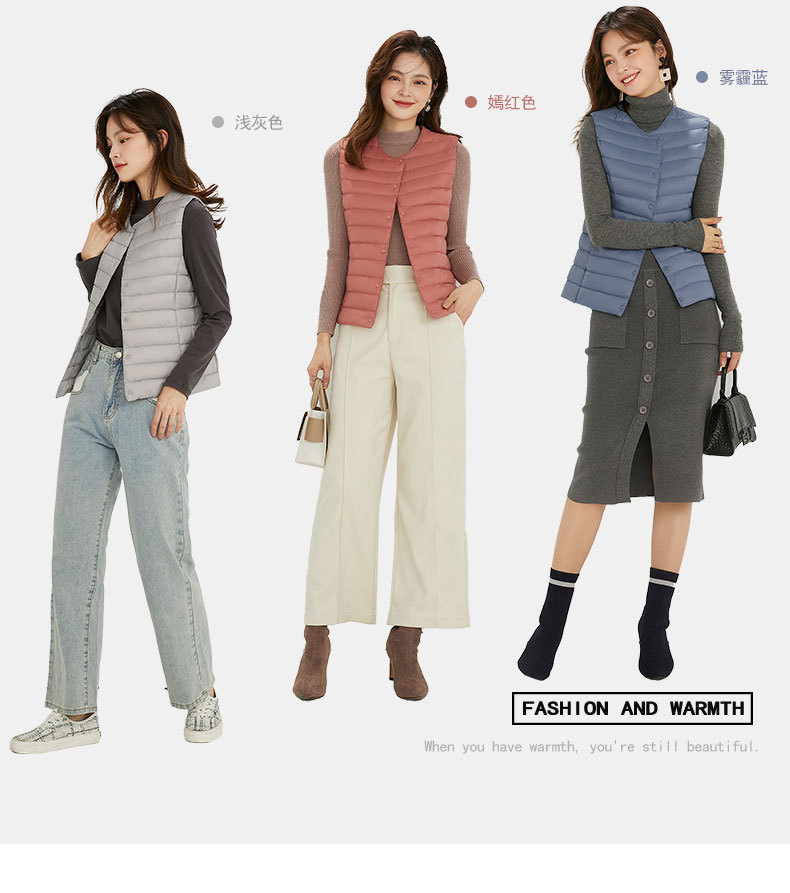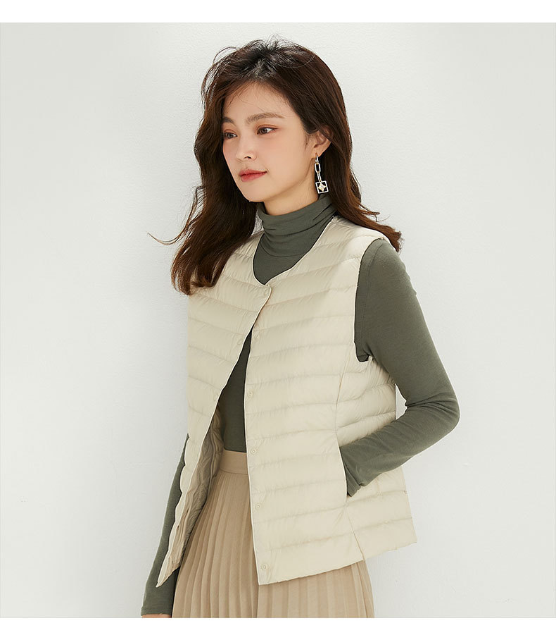 많은 재고 라이트 다운 재킷 조끼 여성용 따뜻한 슬림 핏 라이트 화이트 덕 다운 조끼 내부 웨이스트 코트스토어 가기