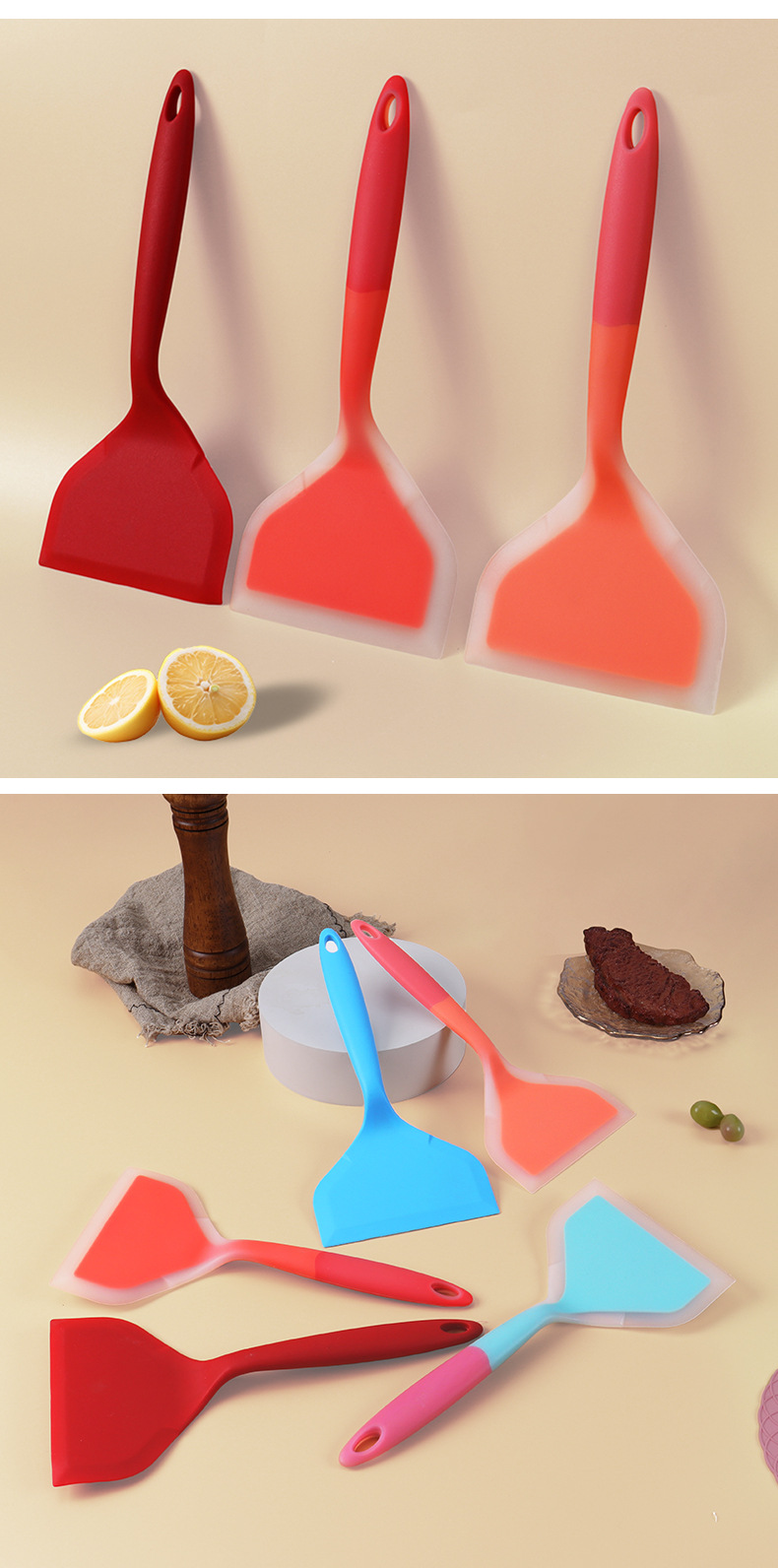 공장 도매 반 투과성 실리콘 삽 Yuzi 불타는 삽 넓은 입 튀김 삽 가정용 요리 볶음 팬 삽 주방 도구