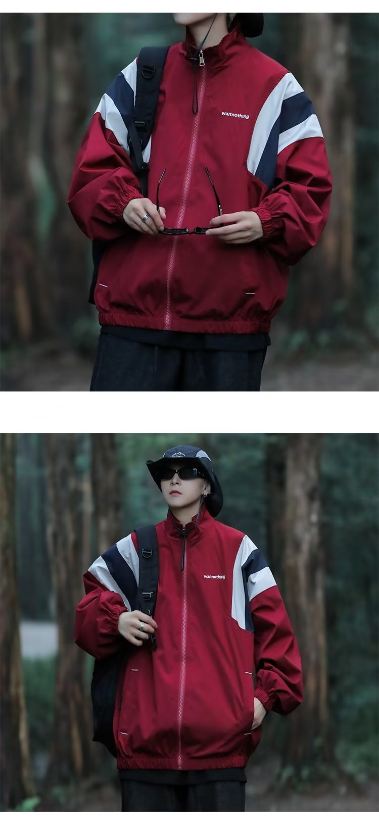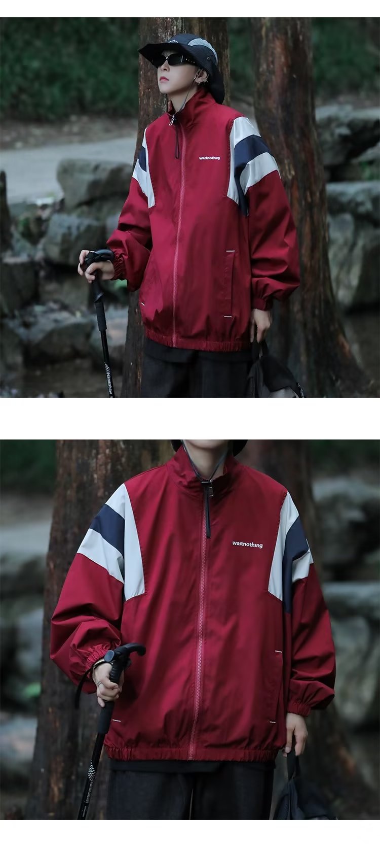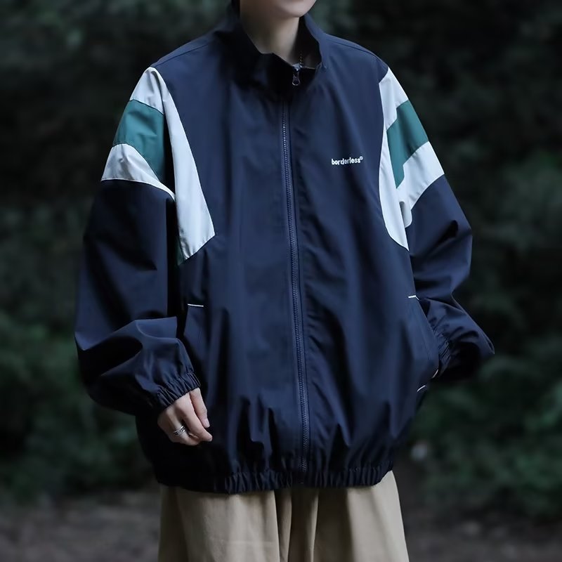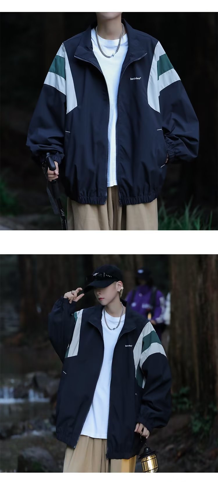 일본식 컬러 블록 재킷 남성 패션 브랜드 가을과 겨울 복고풍 느슨한 스포츠 산 야외 옷깃 캐주얼 자켓