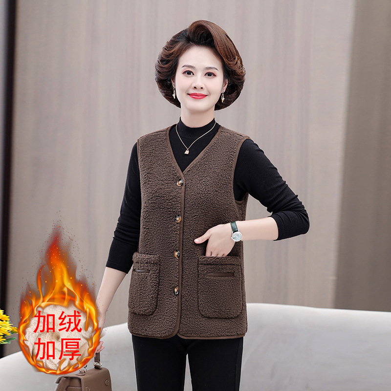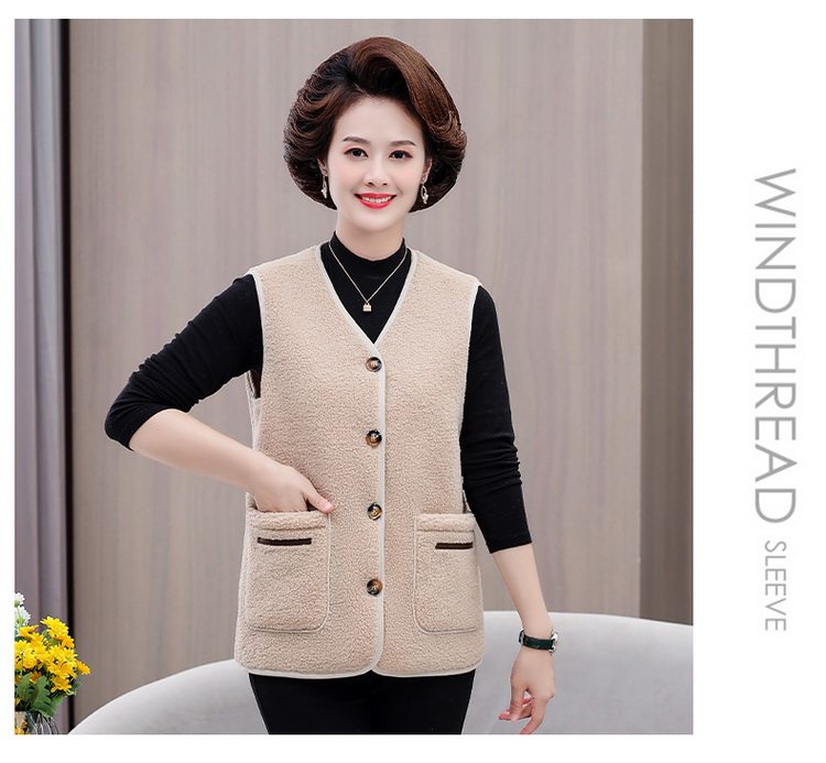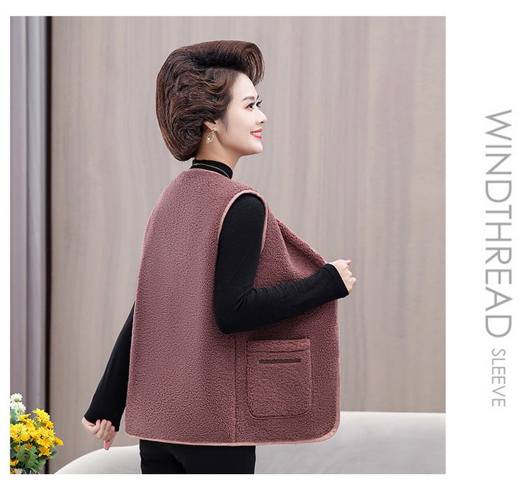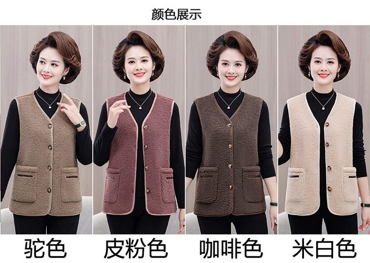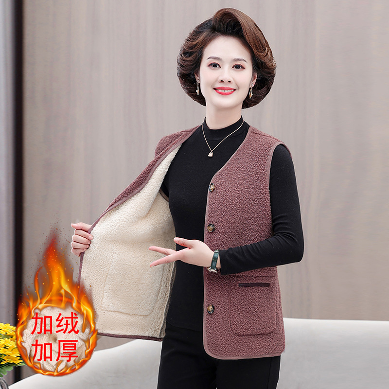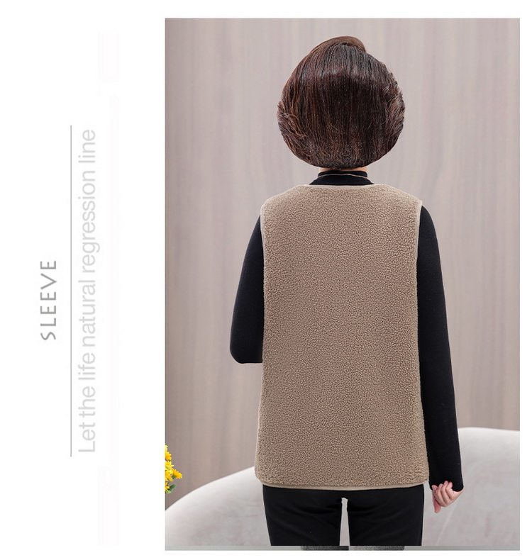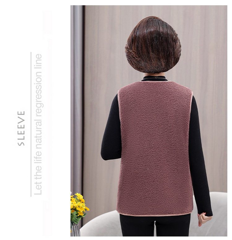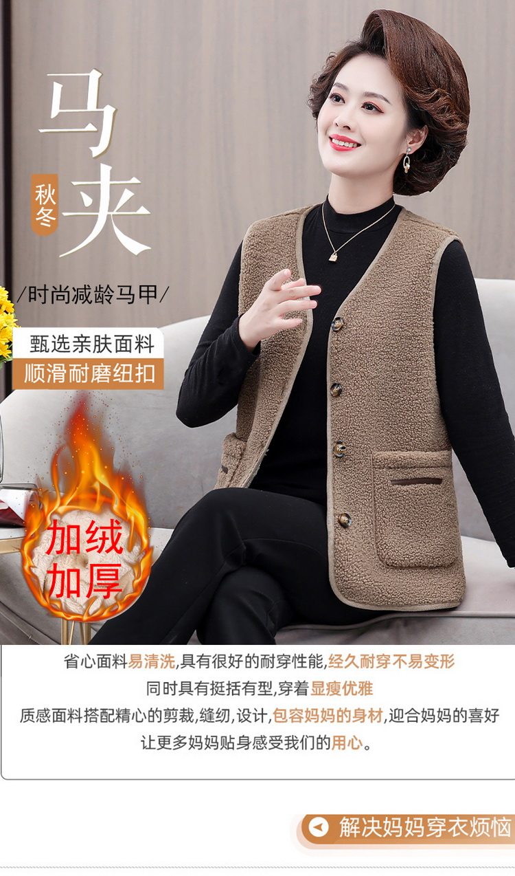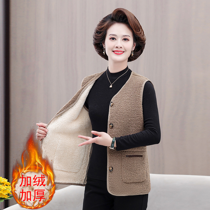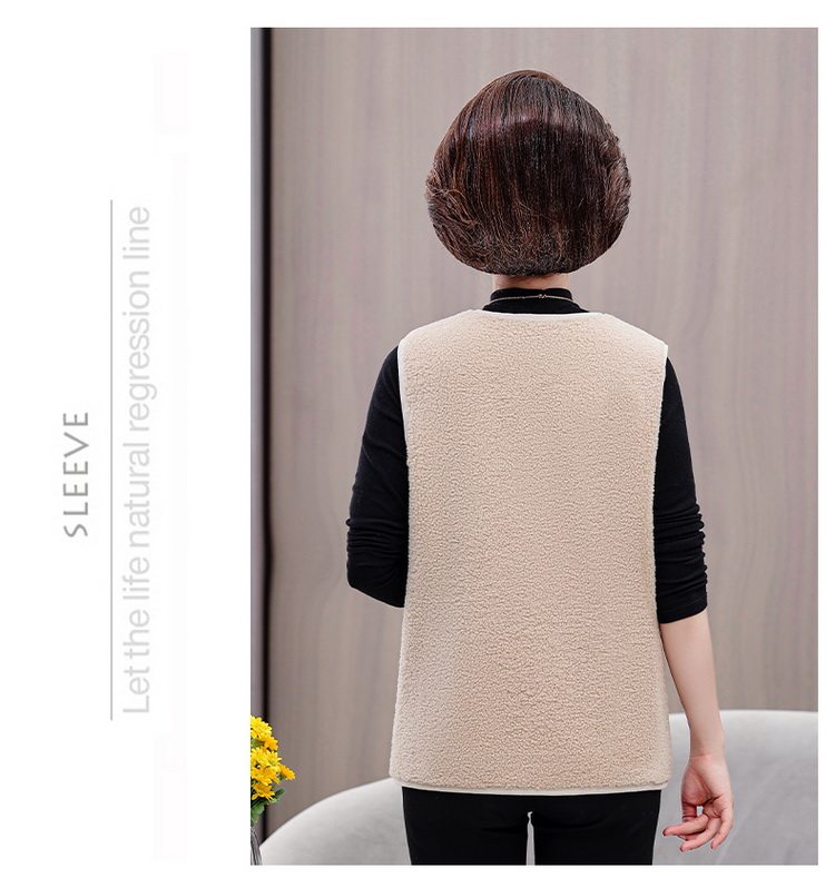 중년 및 노인 여성의 가을과 겨울 곡물 벨벳 양모 패션 조끼 새로운 어머니 기모 두껍게 양복 조끼