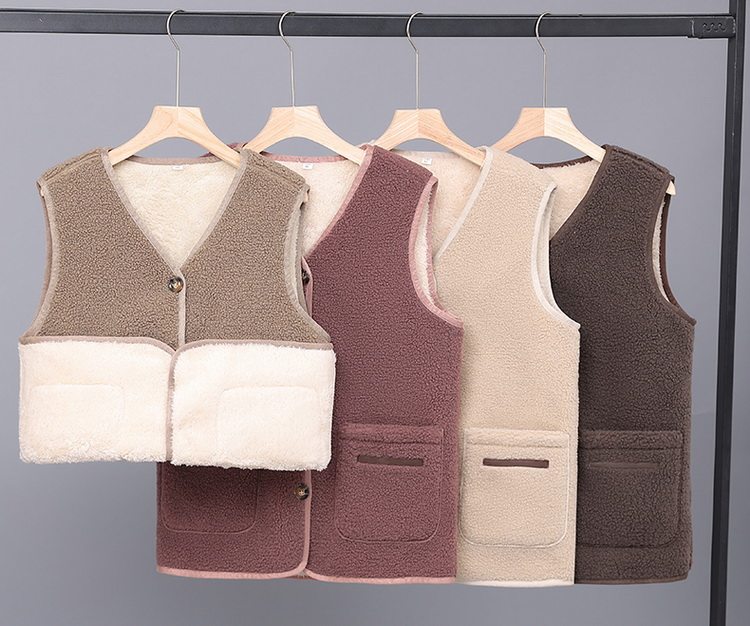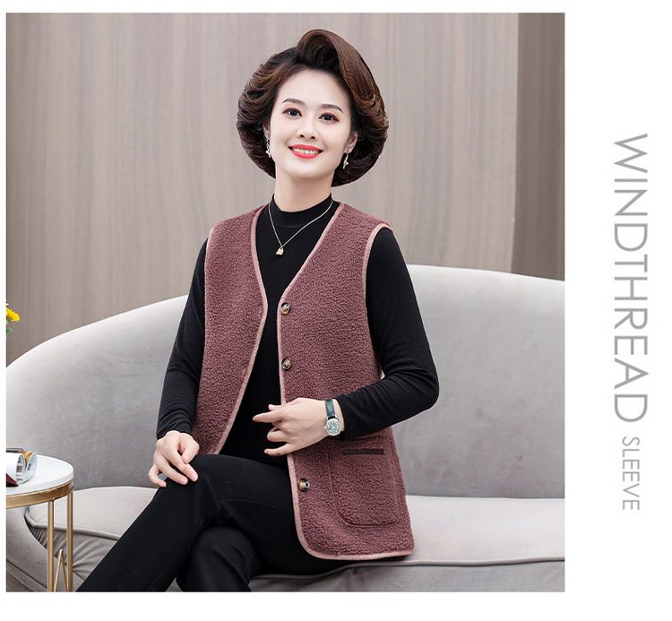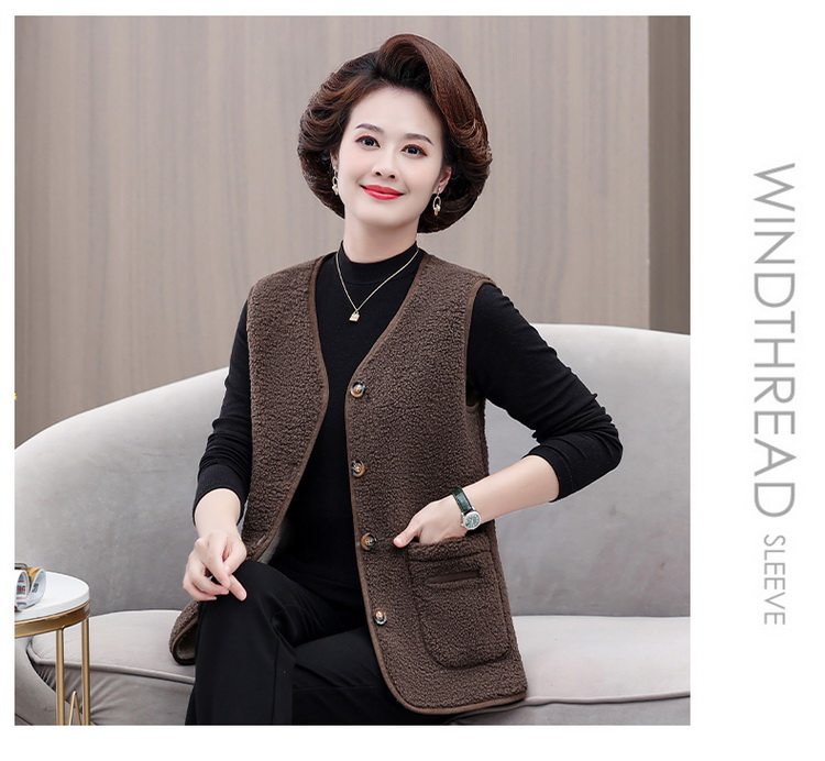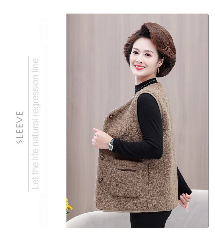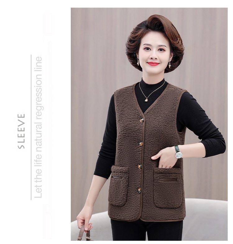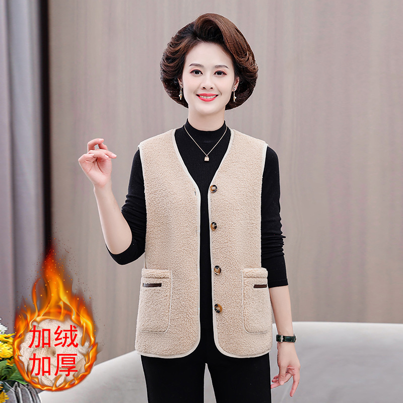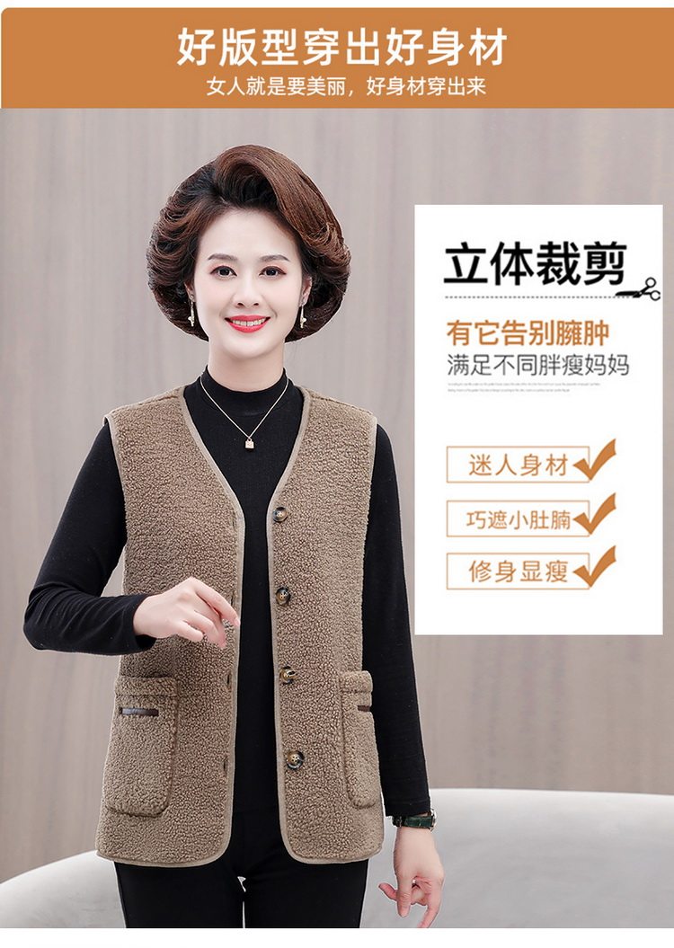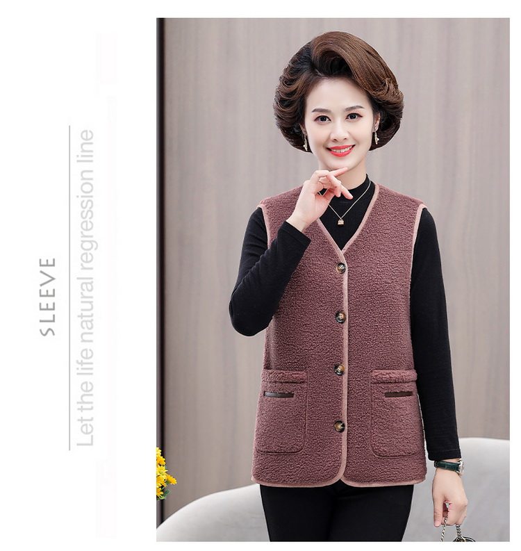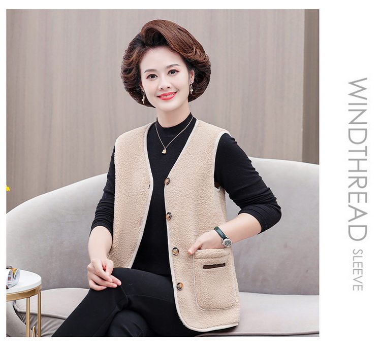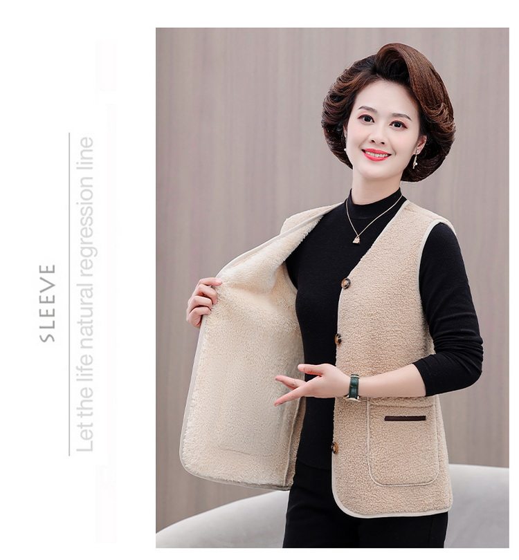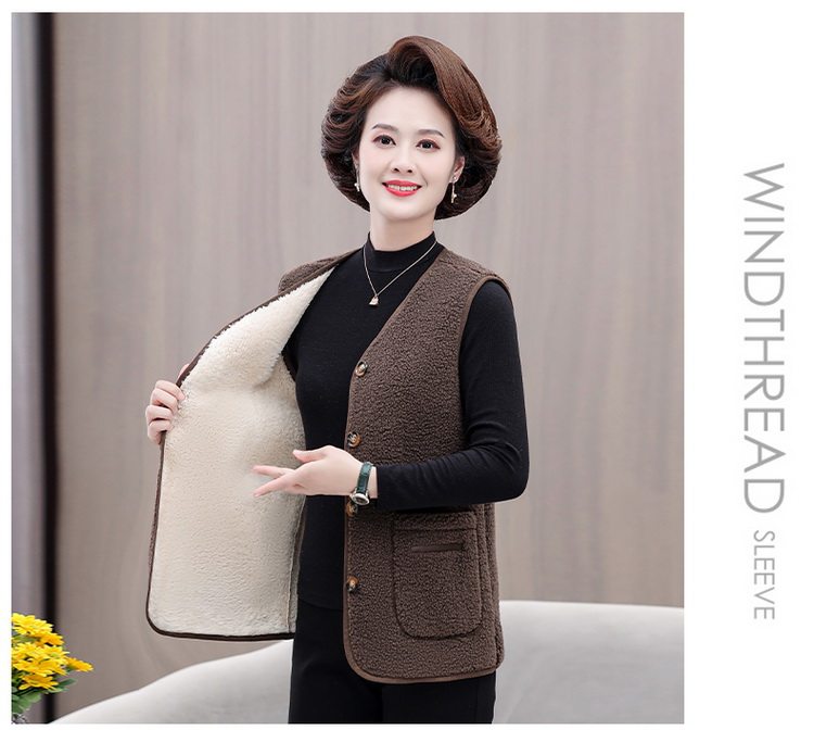 중년 및 노인 여성의 가을과 겨울 곡물 벨벳 양모 패션 조끼 새로운 어머니 기모 두껍게 양복 조끼