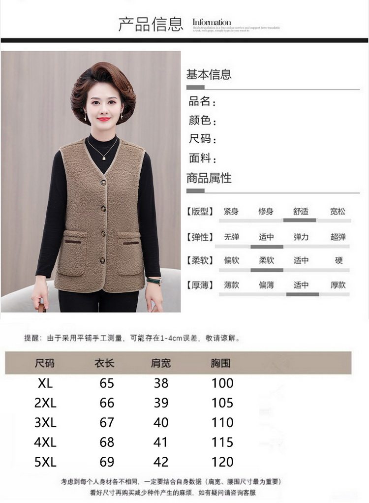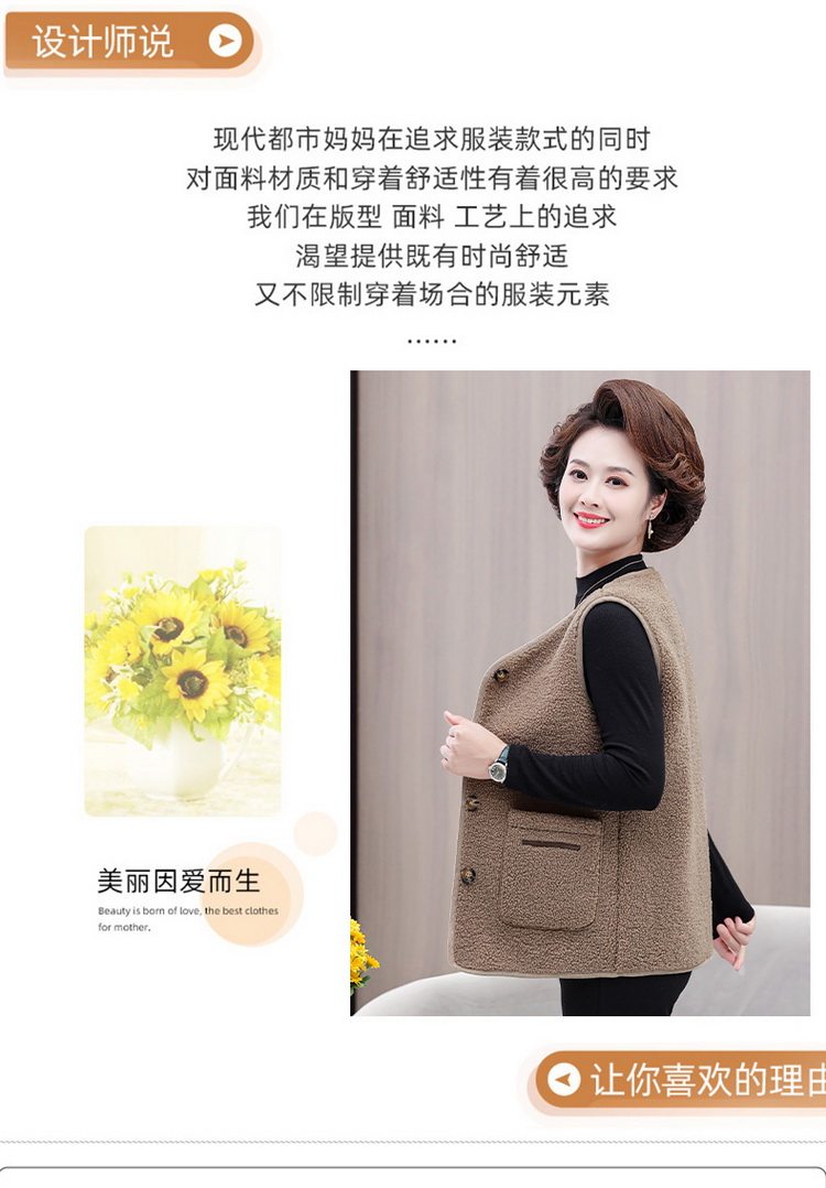 중년 및 노인 여성의 가을과 겨울 곡물 벨벳 양모 패션 조끼 새로운 어머니 기모 두껍게 양복 조끼스토어 가기
