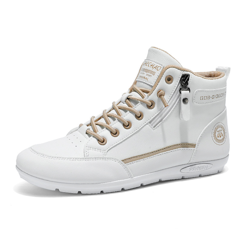 남성용 신발 가을 트렌디 한 올 매치 스포츠 운동화 슬립 온 남성용 캐주얼 가죽 신발 방수 미끄럼 방지 부드러운 밑창 흰색 신발