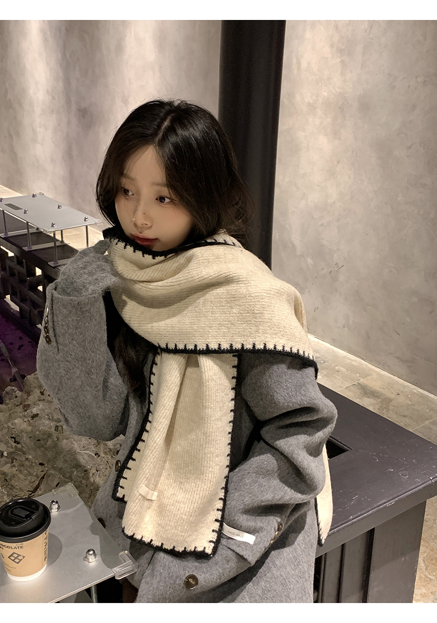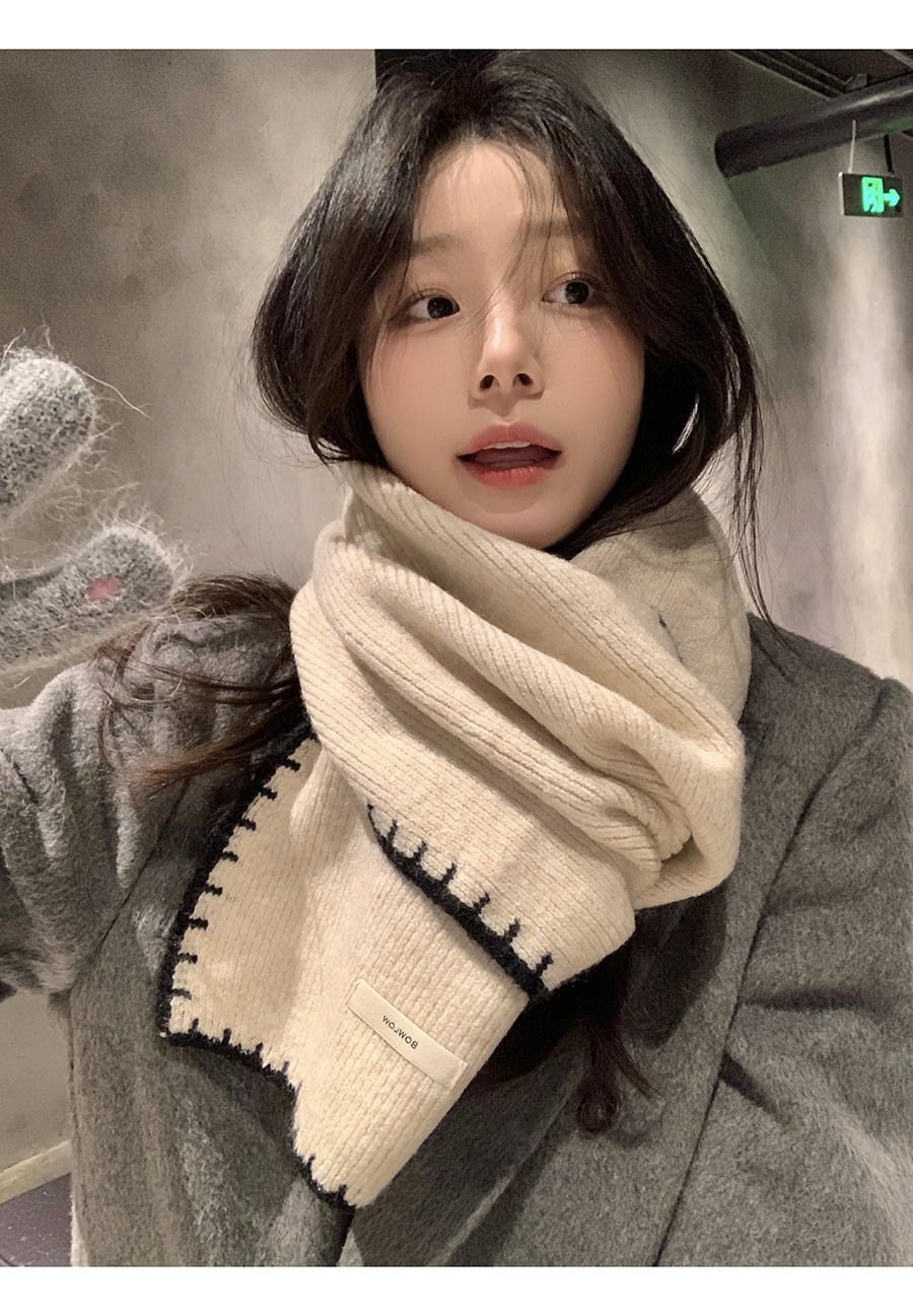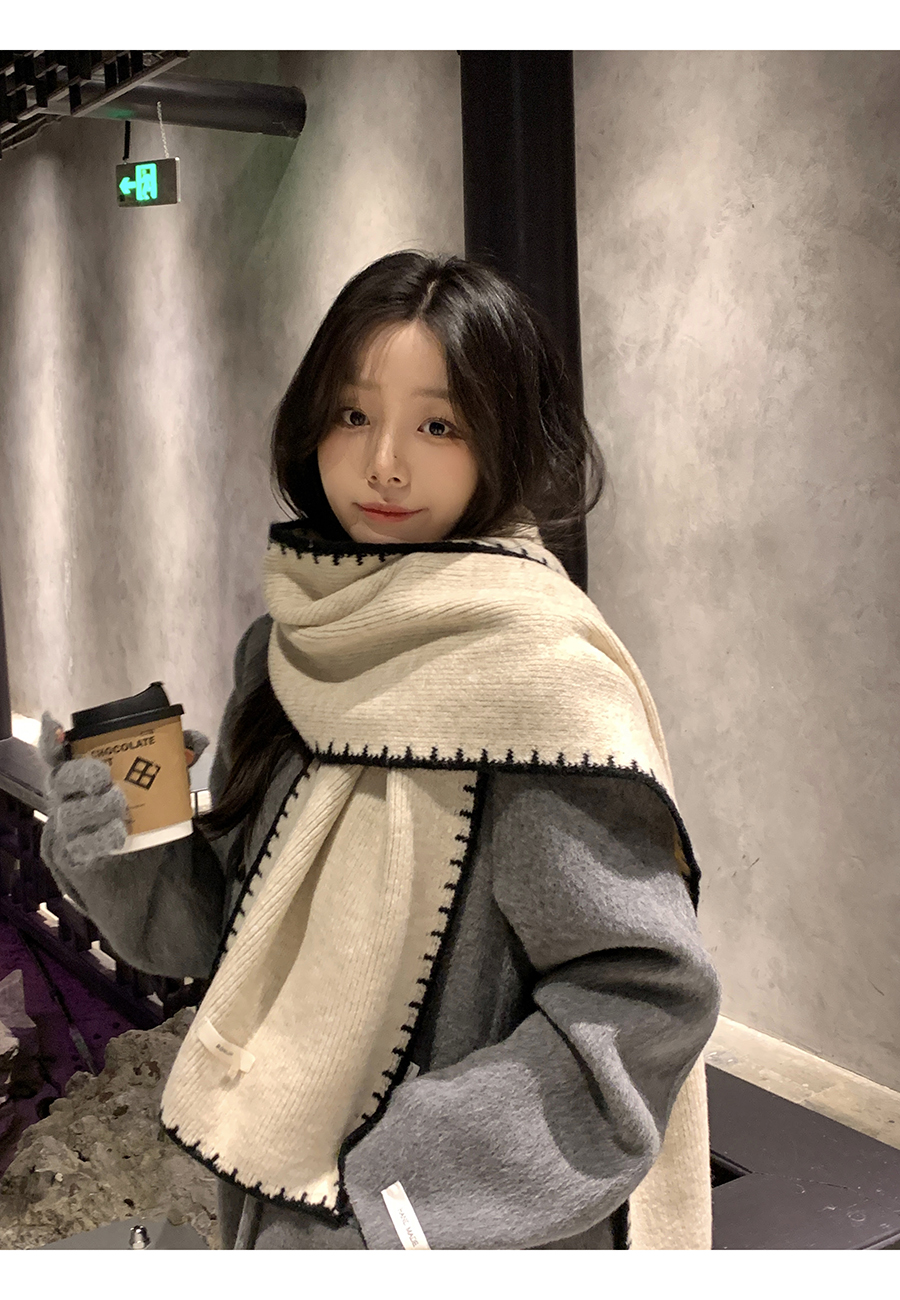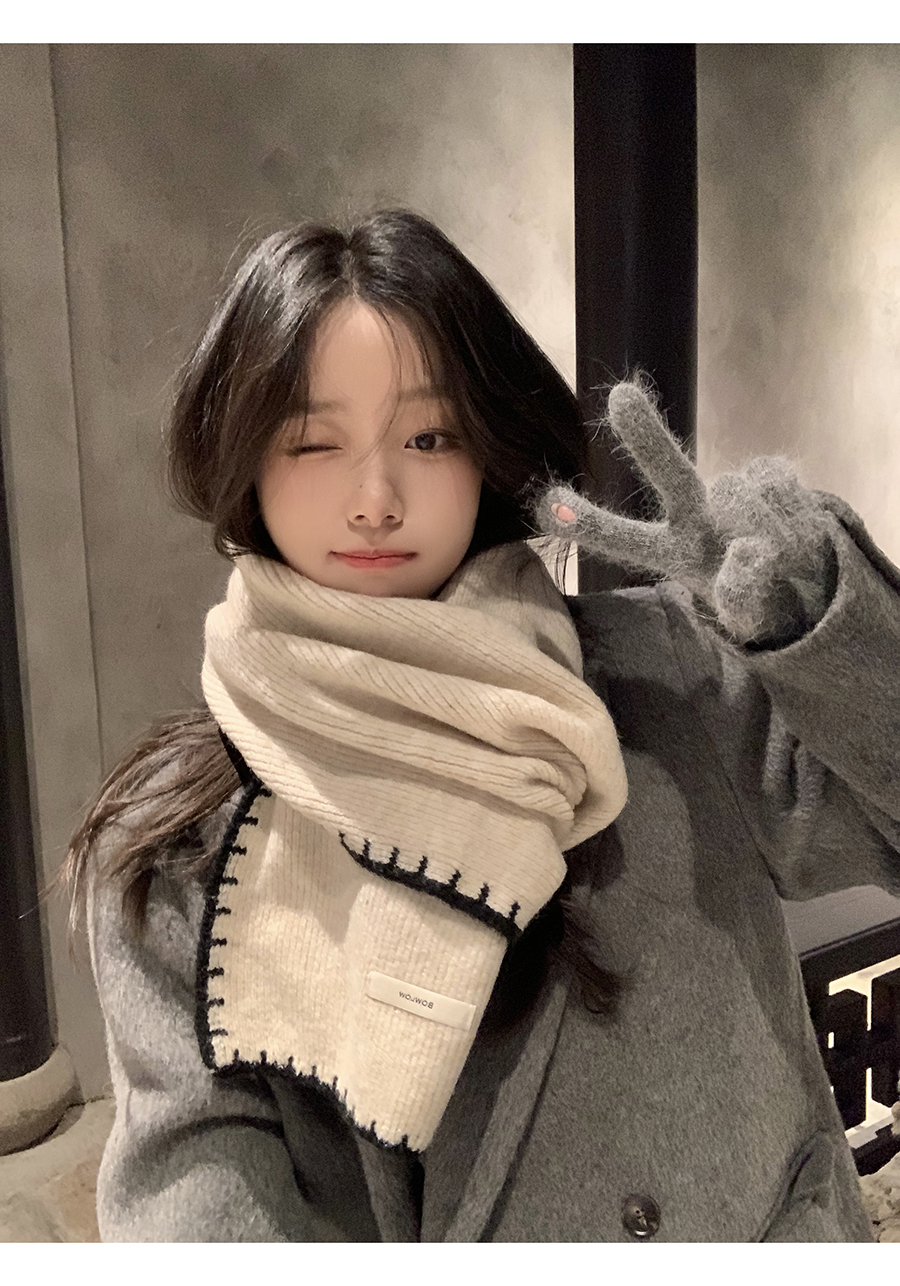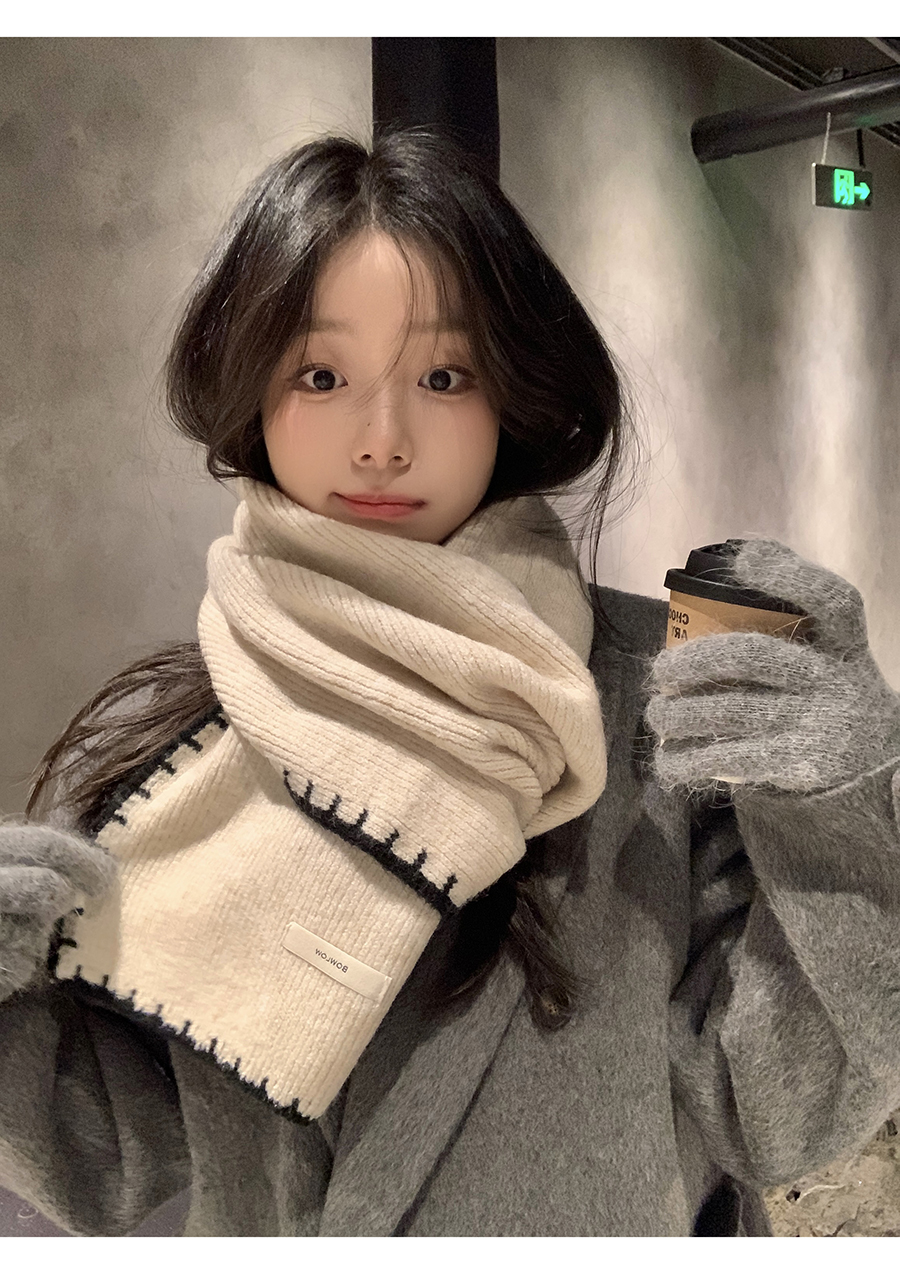 일본식 분위기 간단한 솔리드 컬러 니트 스카프 여성의 2024 새로운 겨울 따뜻한 방풍 올 매치 스카프스토어 가기