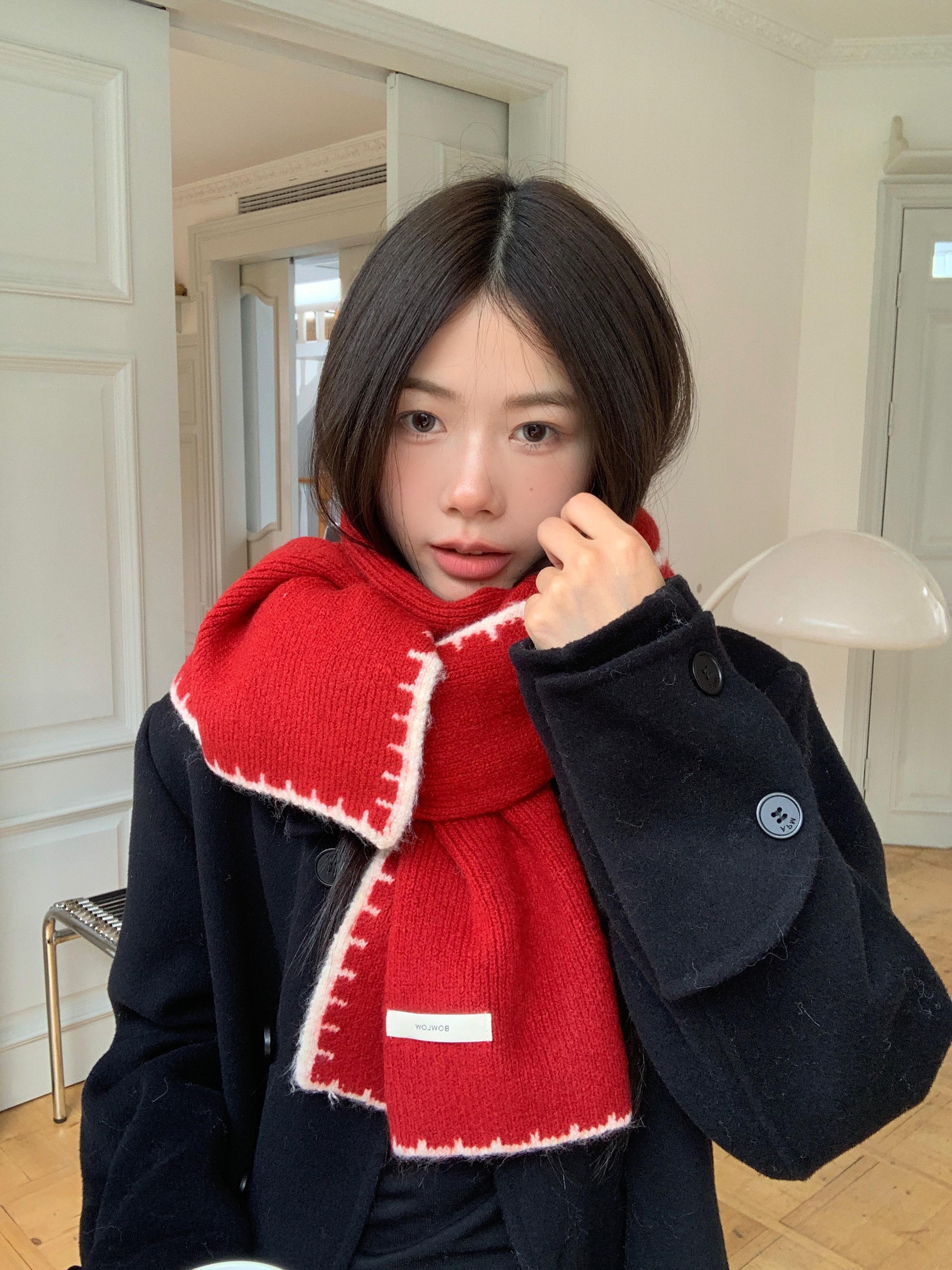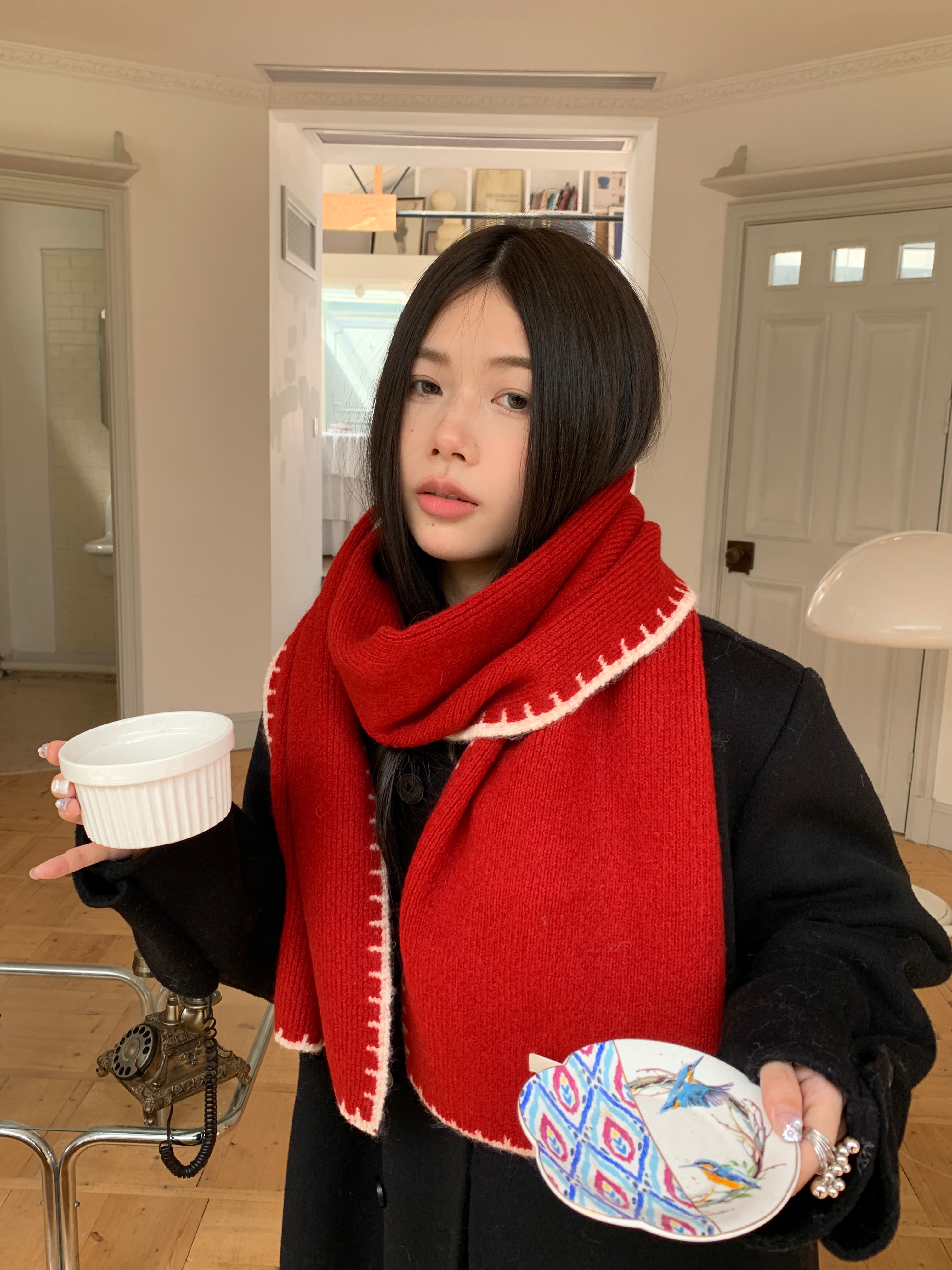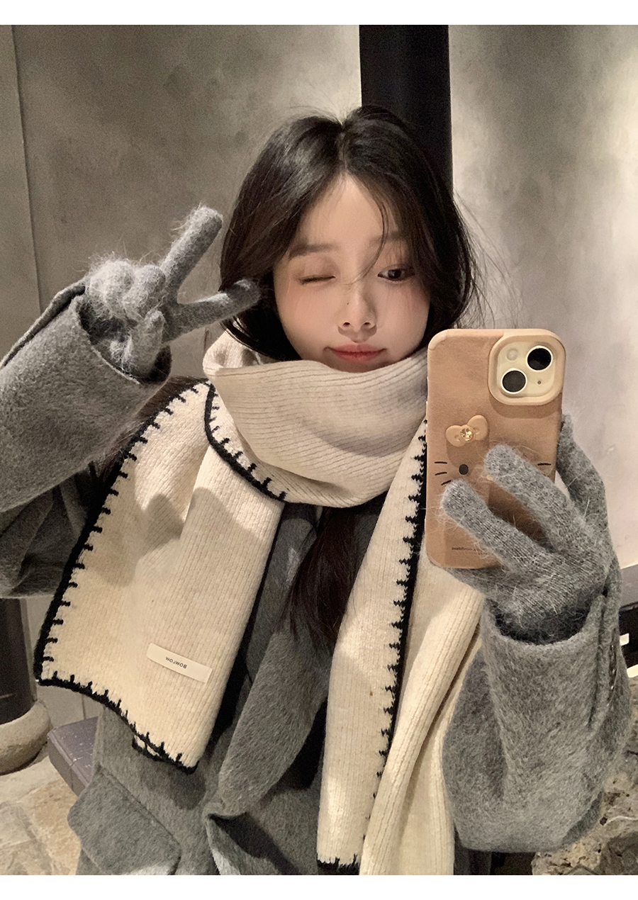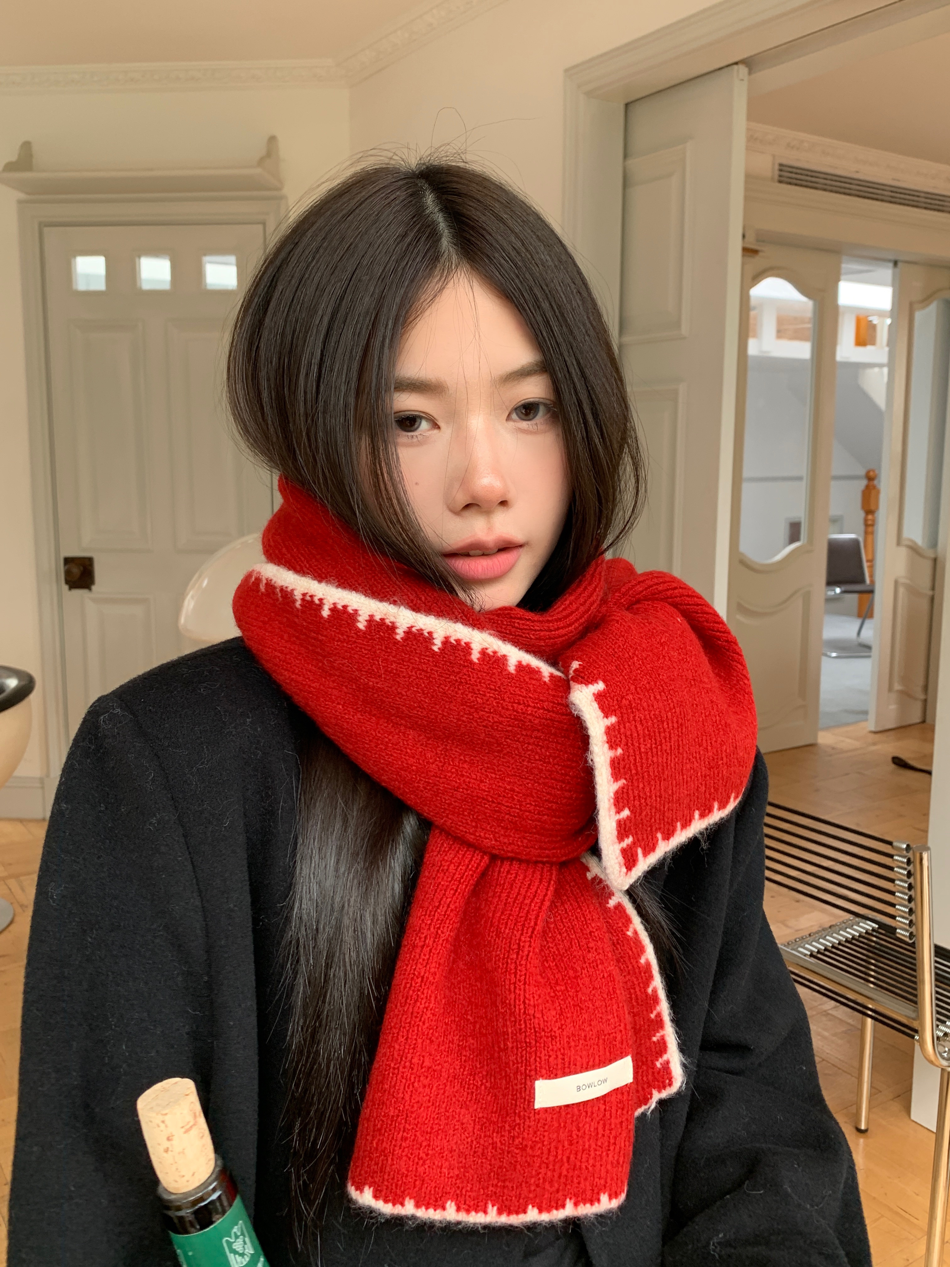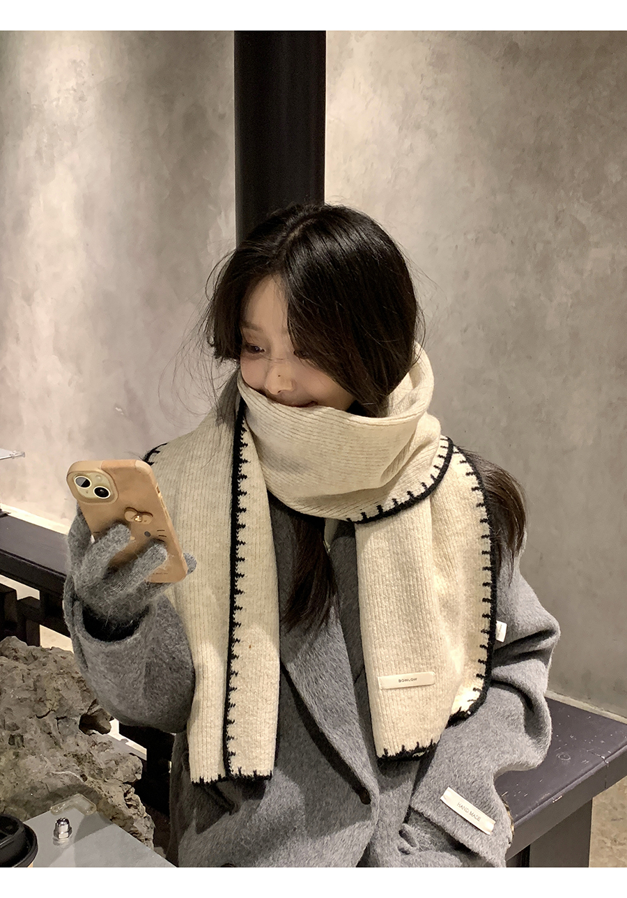 일본식 분위기 간단한 솔리드 컬러 니트 스카프 여성의 2024 새로운 겨울 따뜻한 방풍 올 매치 스카프스토어 가기