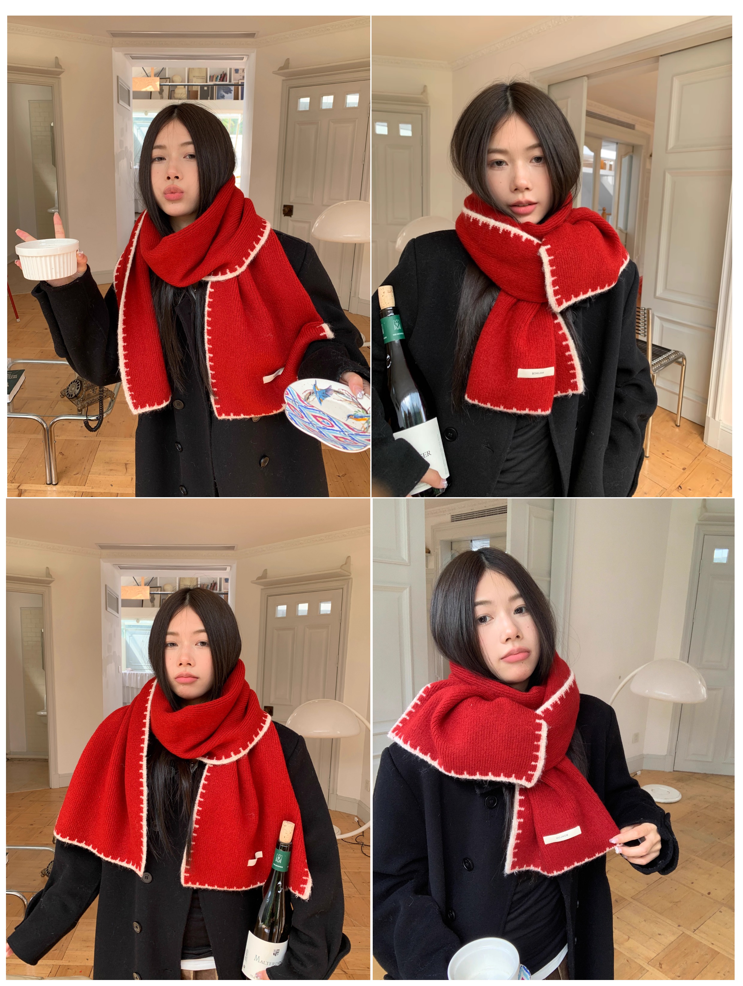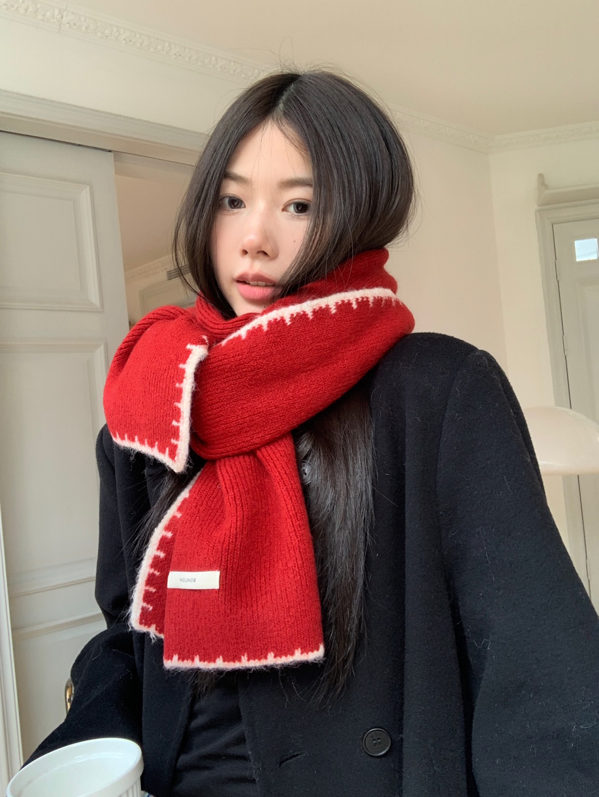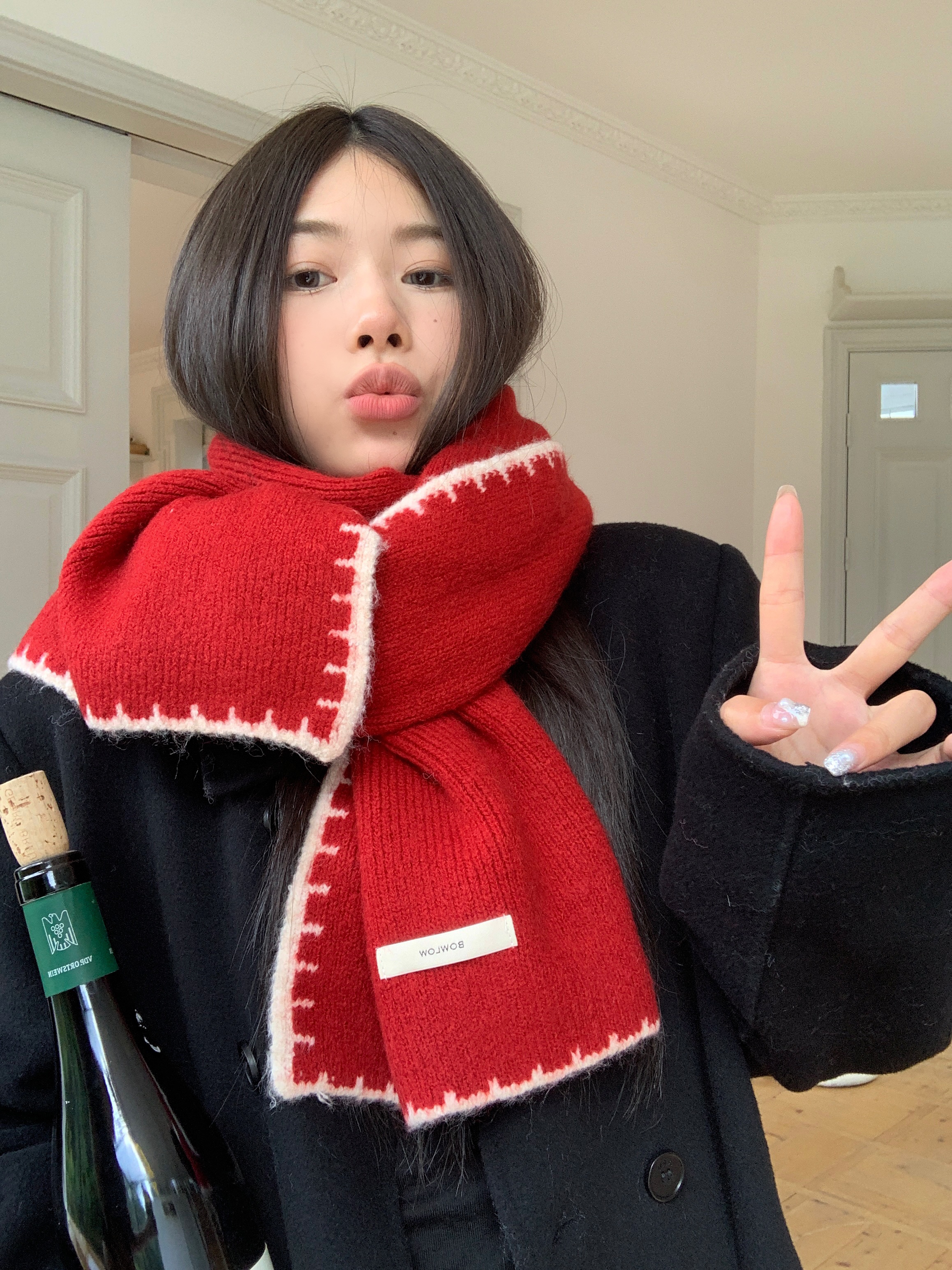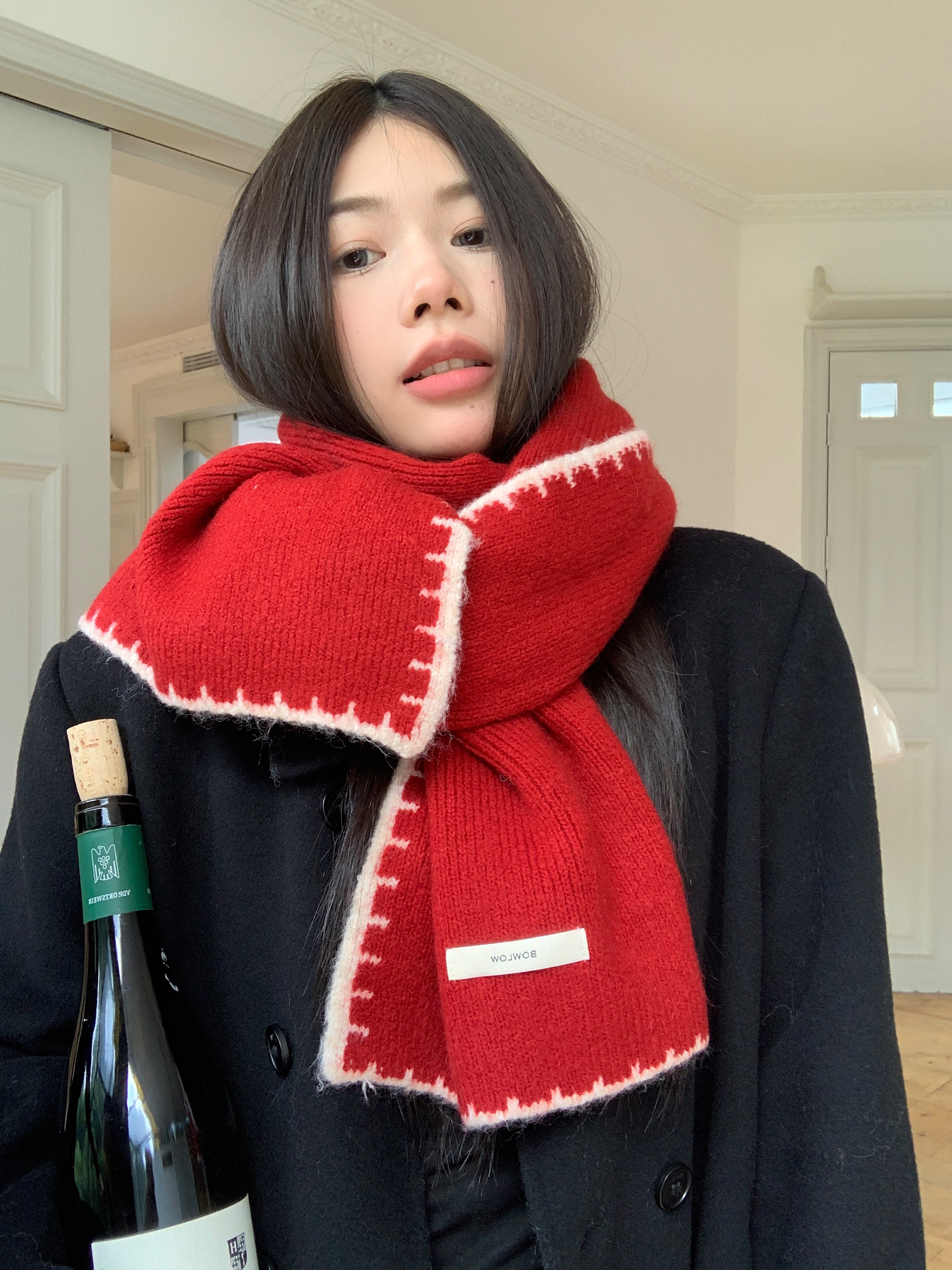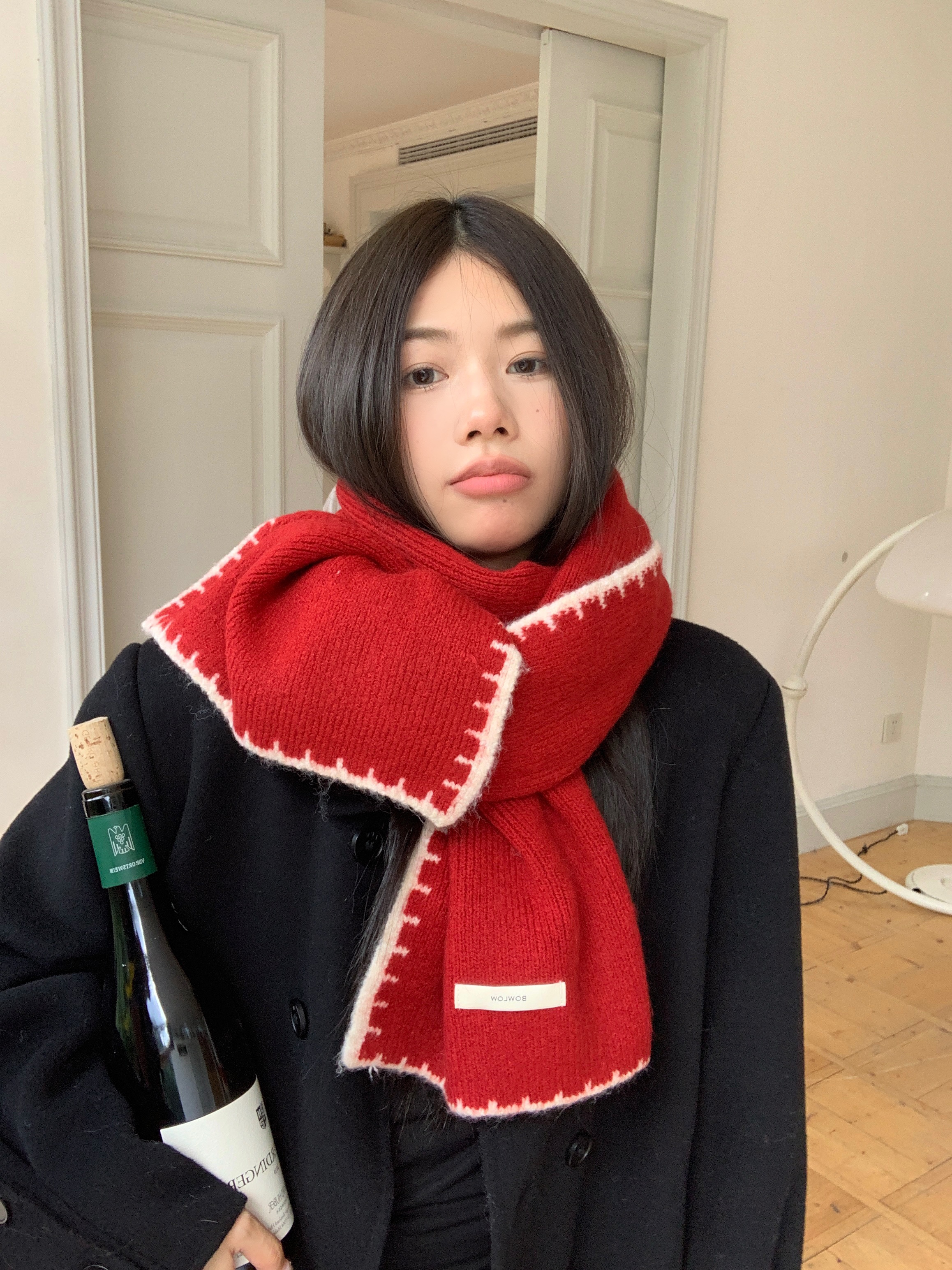 일본식 분위기 간단한 솔리드 컬러 니트 스카프 여성의 2024 새로운 겨울 따뜻한 방풍 올 매치 스카프스토어 가기