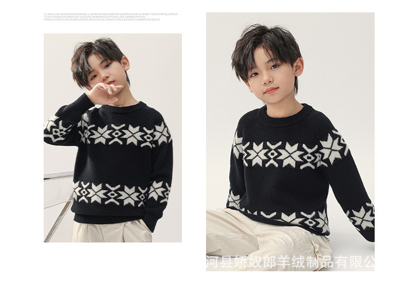 새로운 어린이 서양식 소녀의 긴 소매 두꺼운 외형 니트 스웨터 크리스마스 크루 넥 미들 큰 아이들 풀오버스토어 가기