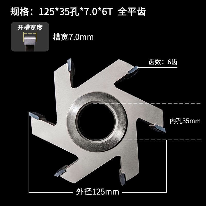 • 외경 125*구멍 35*슬롯 폭 7mm*6 치아-전체 플랫 치아